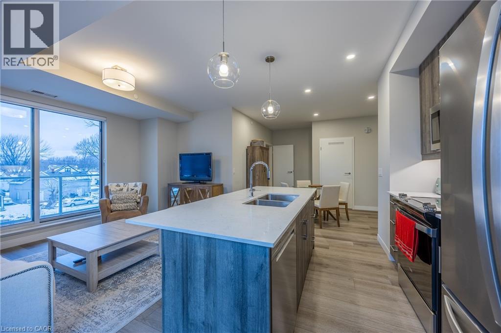 Welcome to 118 West Street, Unit 201 — a bright and beautifully appointed condo offering an easy, low-maintenance lifestyle in the heart of Port Colborne. Located in the sought-after South Port Condos, directly across from the Welland Canal at the mouth of Lake Erie, this two-bedroom, two-bathroom suite is ideal for first-time buyers, downsizers, or anyone looking to enjoy walkable living near the water. This 977 sq. ft. second-floor residence is filled with natural light and thoughtfully designed for comfort and efficiency. The open-concept layout features stainless-steel appliances, in-suite laundry, and a well-planned living and dining area that maximizes space while remaining functional and inviting. Step out onto your private balcony — a perfect spot for morning coffee or fresh air after a day exploring the community. The suite includes two parking spaces and a storage locker, adding everyday convenience. Residents also enjoy access to excellent building amenities, including an exercise room, a party room with a community BBQ area, and a welcoming access to the café located on the main floor — a favourite place to relax and watch cruise ships pass by along the canal. Just steps to scenic walking trails, summer events like Canal Days, and the shops and restaurants of charming downtown Port Colborne, this location truly shines. With easy access to Welland (20 minutes), St. Catharines (30 minutes), and the Peace Bridge (40 minutes), this condo offers carefree living in a vibrant waterfront community. Book your showing today. (id:4555)