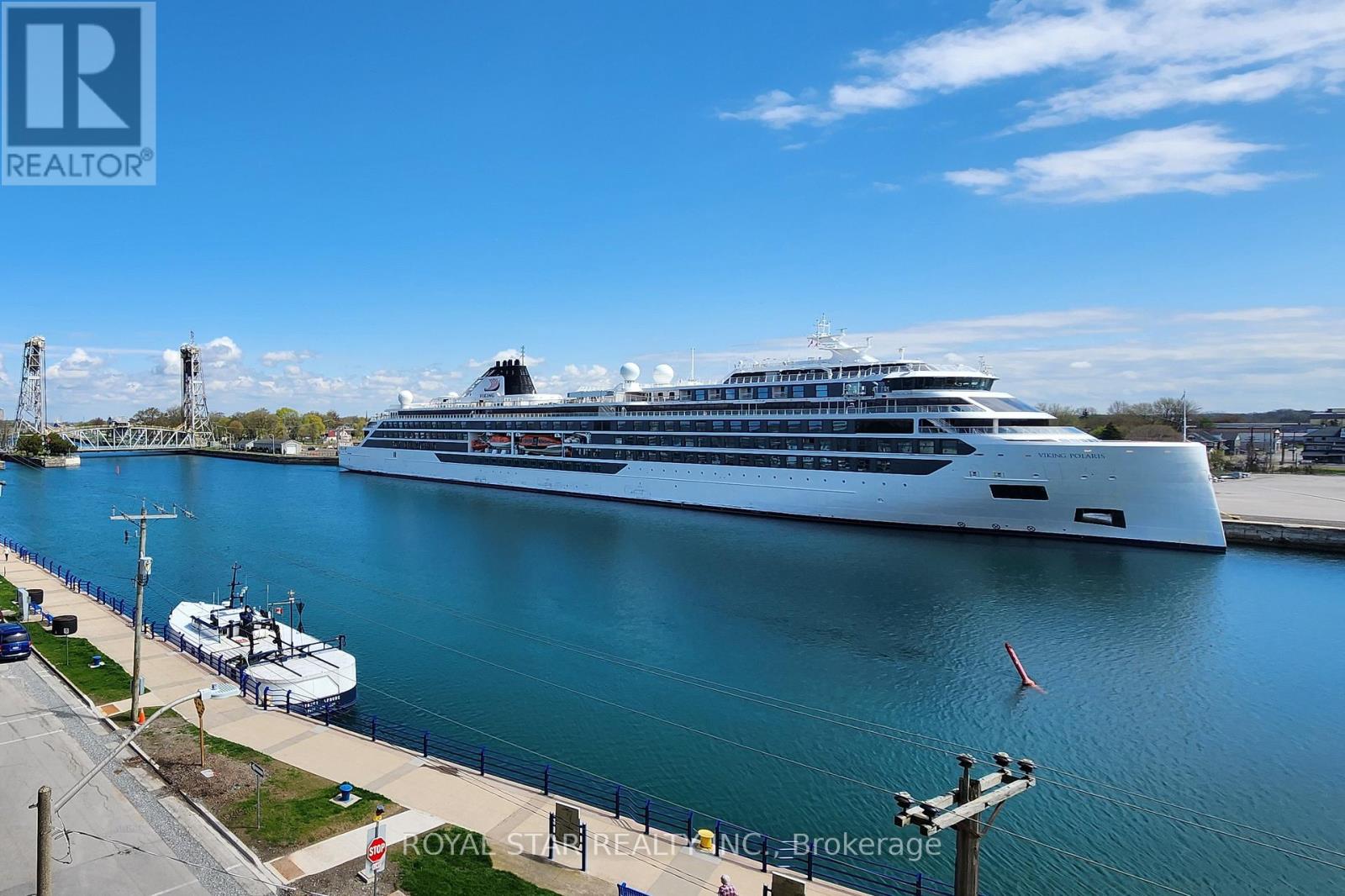 Front-row waterfront living! This 2 bed, 2 bath suite offers full Welland Canal views from every main space - both bedrooms, the living area, and even your morning coffee spot on the covered balcony. Wake up to the sunrise glimmering over the water, energizing your day from the moment you open your eyes. Set in the sought-after South Port Condos, this beautiful Boathouse model features a bright open layout, 9' ceilings, a custom kitchen with quartz counters, stainless appliances, and a built-in dining peninsula perfect for casual meals or entertaining. Every corner feels spacious, stylish, and connected to the outdoors. The primary bedroom includes a walk-in closet and a 3-piece ensuite with double sinks. The second bedroom and full 4-piece second bath make hosting guests easy. Extras include in-suite laundry, independent heating and cooling, a private locker, and surface parking. South Port offers a fitness room, party/meeting lounge, bicycle storage, generator backup, and secure building access - plus direct indoor access to the on-site wellness center and the popular Pie Guys restaurant. 5 Minute drive to Nickel Beach, Steps to waterfront trails, Sugarloaf Marina, and the vibrant shops and cafes of Port Colborne's charming downtown. Catch the best of waterfront living - from sunrise views and ship watching to Canal Days festivals and everything in between. Relax, connect, and explore - all at your fingertips. (id:4555)