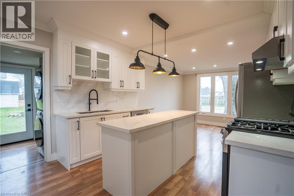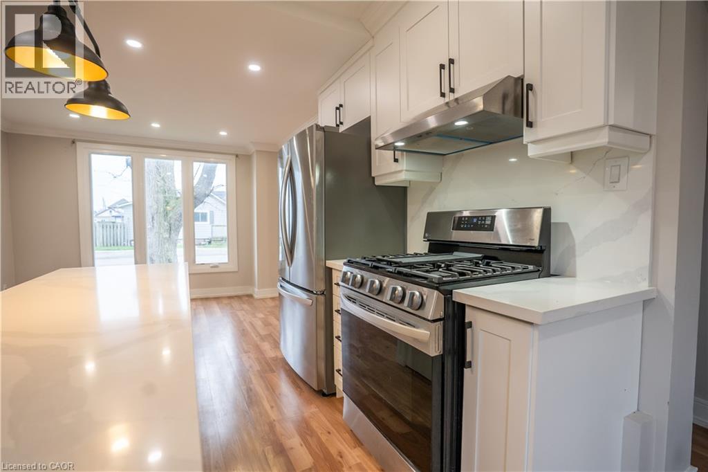 Welcome to 793 Steele St. Featuring 4 bedrooms, 1.5 baths, and just over 1,200 sq ft of living space. This large corner lot boasts mature trees, a large covered front porch & a large fenced in backyard. Inside, enjoy an open-concept main floor with in ceiling pot lights, crown moulding, and brand-new flooring. The sleek kitchen comes with new stainless-steel appliances including Gas stove, fridge and dishwasher, quartz counters and island with plenty of counter and cabinetry space. A mudroom with new washer/dryer leads to a massive backyard—with a new fence & access to a detached single car garage and single car driveway for 2 parking spots & plenty of street parking available. The upper floor features 4 bedrooms & a modernly updated 4-piece washroom. The home has an updated 100-amp panel, central AC, central heat controlled by a Nest thermostat. Close to schools and amenities, this move-in-ready home is available starting March 1st! Tenants are responsible for: Utilities (Hydro, Gas, Water), HWT rental, Grass & Snow maintenance. (id:4555)