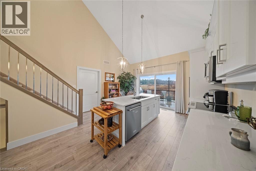 Welcome to 744 Nelson St., Unit 10, a bright and beautifully designed 2020 bungalow condo with loft, located in the heart of Port Dover. This modern 3-bedroom, 3-bath home offers effortless living with an inviting open-concept main floor, quartz kitchen countertops, and patio doors leading to your private deck overlooking open fields, the perfect spot to unwind and enjoy Port Dover’s stunning evening sunsets. The main floor features a spacious primary bedroom complete with a 3-pc ensuite and walk-in closet, along with main-level laundry and inside entry from the single attached garage for added convenience. The upper loft provides two additional bedrooms and a 4-pc bath, ideal for guests, family, or a home office. The basement remains unfinished and ready for your personal touch with a rough in for another bathroom. With its brick/vinyl exterior, bright interior, and low-maintenance lifestyle, this condo offers exceptional comfort and style. Located just minutes from Port Dover’s sandy beach, waterfront restaurants, grocery stores, shops, and all the charm the South Coast has to offer. (id:4555)