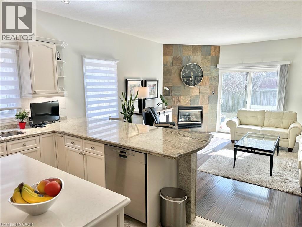 Beautifully decorated end-unit bungalow condo located close to the lake and downtown shopping. This lovely home features granite and quartz countertops, stainless steel appliances, and a bright eat-in kitchen perfect for everyday living. The spacious living room includes a cozy gas fireplace and patio doors that lead to a large deck with a natural gas hookup, ideal for outdoor entertaining. A separate, large dining room showcases hardwood floors and elegant French doors, creating a perfect space for hosting family and friends. The fully finished basement offers additional living space with a large office area and an extra bedroom, providing flexibility for guests, work-from-home needs, or hobbies. A wonderful opportunity to enjoy comfortable, stylish living in a desirable location. (id:4555)