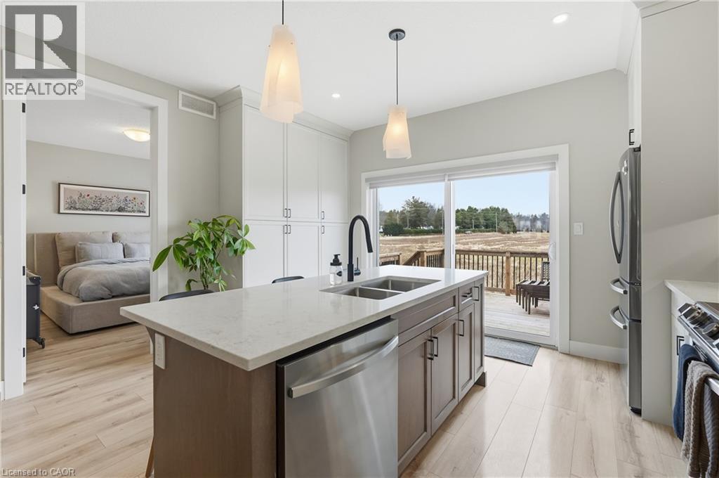 Welcome to 744 Nelson St., Port Dover. This stunning Bungaloft townhome seamlessly blends modern design with everyday comfort. Offering 3 bedrooms plus loft and 2+1 baths across 1,820 sq ft, this home delivers the perfect balance of style and functionality. The open concept main living space welcomes you with soaring vaulted ceilings, abundant natural light, and a beautiful gas fireplace framed by a custom accent wall that creates a warm and inviting focal point. The high end kitchen is designed for both everyday living and entertaining, featuring a large island, stainless steel appliances, additional cabinetry, quartz countertops, and extensive pot lighting. The main floor primary bedroom with private ensuite offers convenient main level living, while the cozy loft overlooking the living area provides the perfect space for a home office, reading nook, or additional lounge area for family and guests. Enjoy the peaceful charm of Port Dover living, where quiet surroundings and beautiful sunsets are part of everyday life. Located just minutes from the town centre, shops, restaurants, wineries, and the beach, you will enjoy both tranquility and convenience. Ideal for downsizers, young families, or anyone looking to escape the hustle of the city while still enjoying modern comforts. The 974 sq ft unfinished basement offers excellent potential for additional living space with impressive ceiling height and large windows. (id:4555)