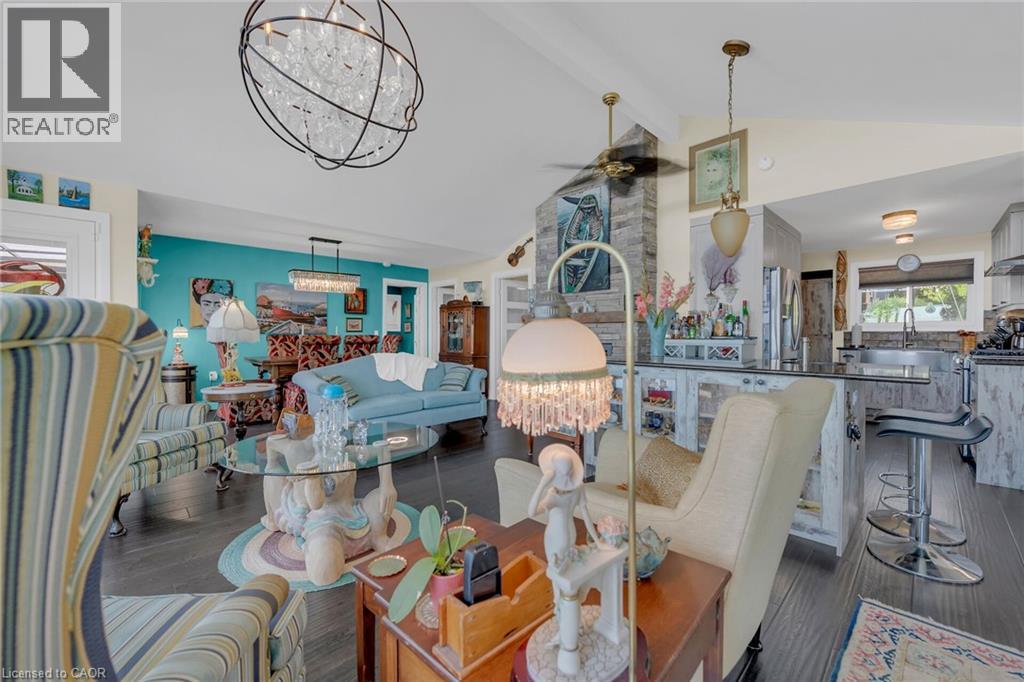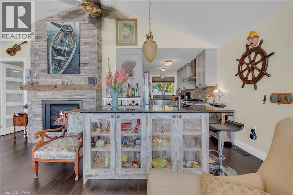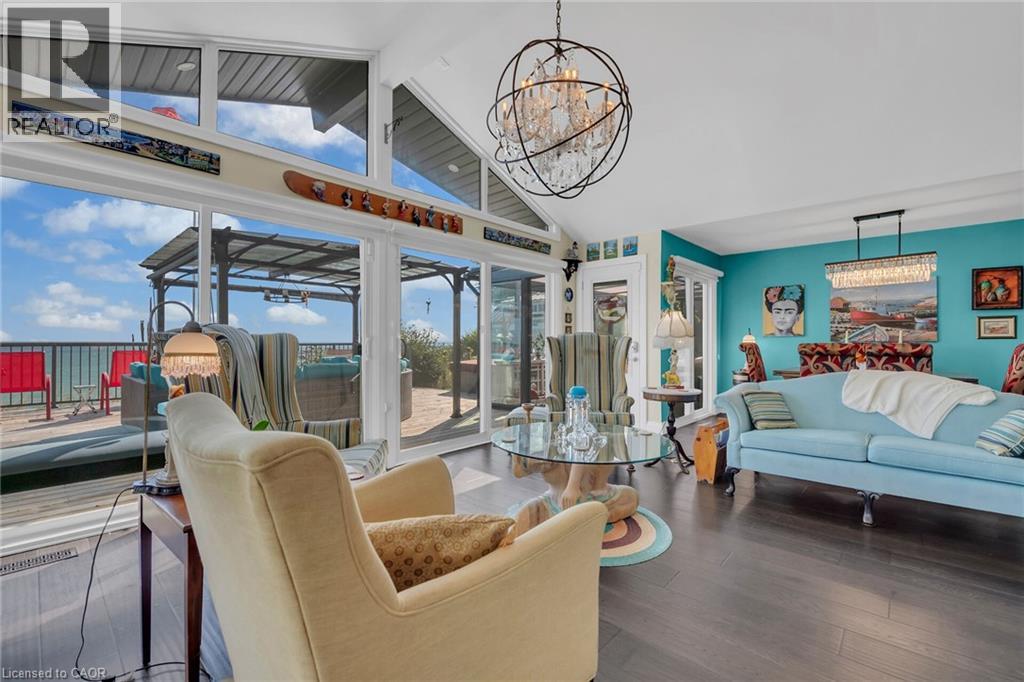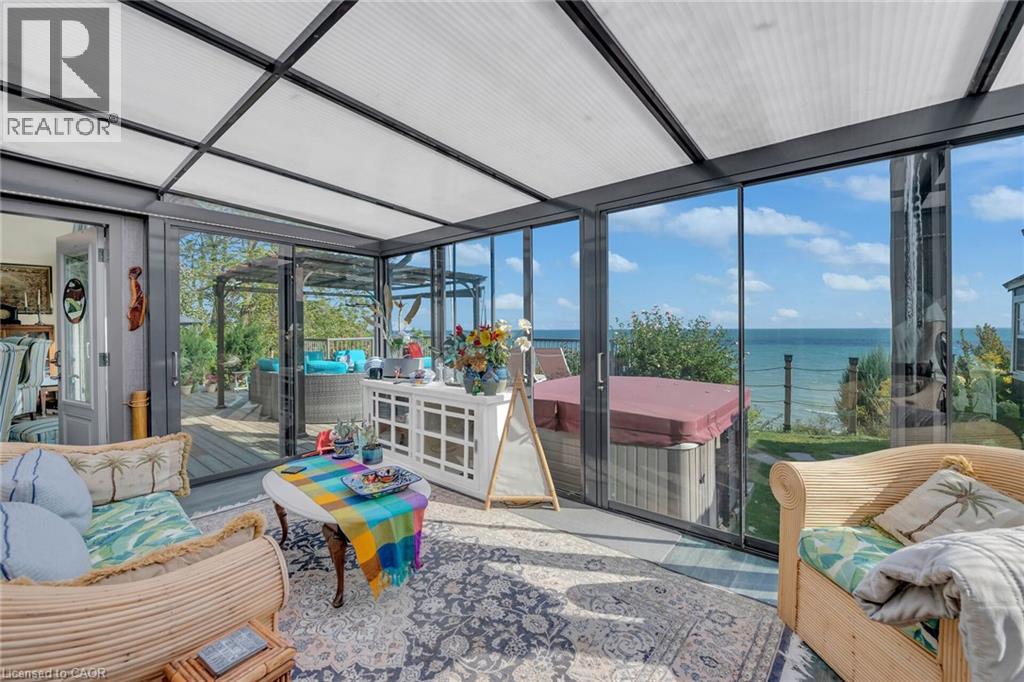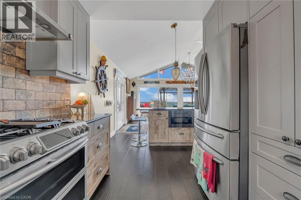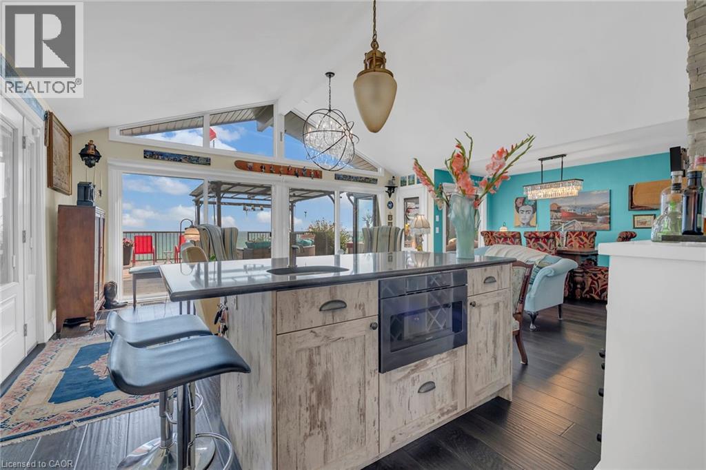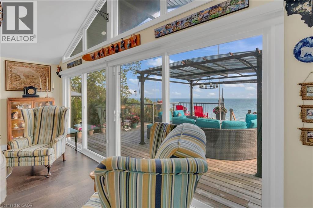 Captivating Port Dover 2 bedroom Waterfront Lakehouse with 89.57 feet of sought after waterfront on the shores of Lake Erie. This exquisitely presented property features breathtaking views and access to lower level Lakeside deck and multiple entertaining areas for a true dream backyard Oasis. Great curb appeal with oversized paved driveway & carport, Can Exel engineered siding, tastefully landscaped, solid concrete and steel breakwall, gorgeous 3 season sunroom, 2 sheds / bunkies which are insulated with hydro for extra guests or games room, & expansive decking with pergola & separate gazebo area. The open concept main floor layout is highlighted by custom designed “Darbishire” kitchen with quartz countertops & large island, great room with wall to wall windows & vaulted ceilings, 2 bedrooms including primary suite with ensuite bathroom & access to sunroom, additional bathroom,desired MF laundry & welcoming foyer. Extensively renovated in 2016 with new flooring, decor, wiring & panel, insulation, furnace, lighting, fixtures, & more. Conveniently located minutes to all the Incredible amenities that Port Dover offers including restaurants, theatre, shopping, stunning beach, wineries, & easy access to other Norfolk experiences. Truly Irreplaceable property, setting, & home. Lake Erie Waterfront Living is a Lifestyle that must be Experienced! (id:4555)