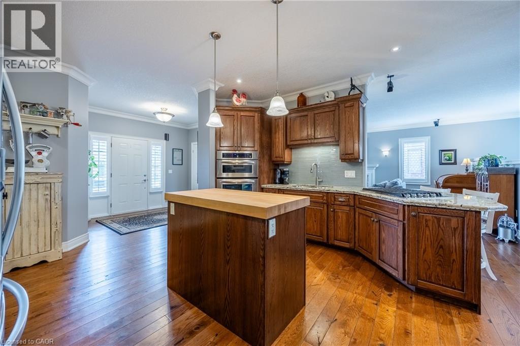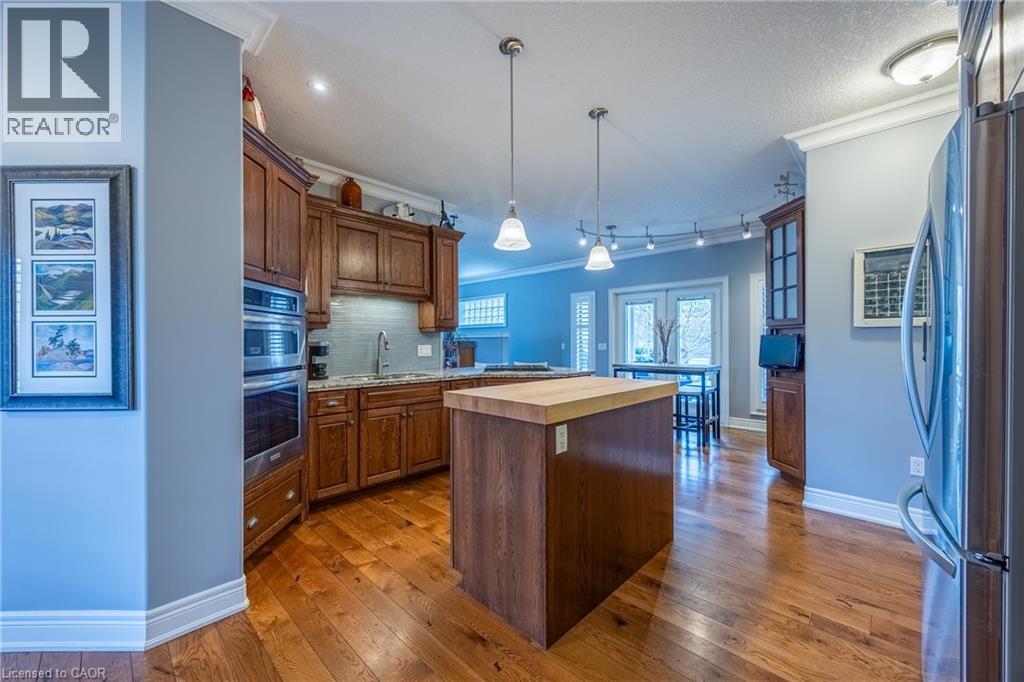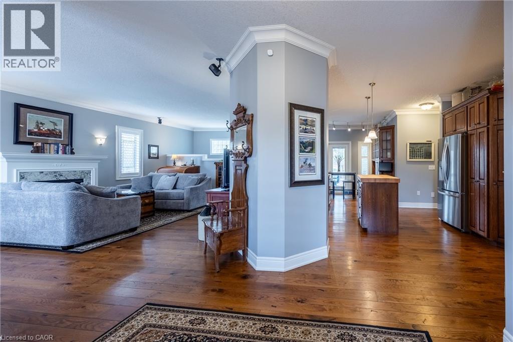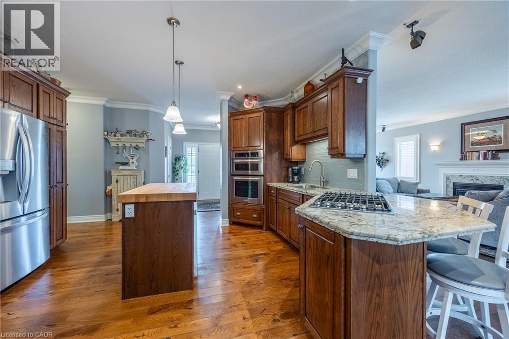 Beautifully maintained all-brick bungalow offering over 3298 sq ft of finished living space in one of Port Dover’s most desirable neighbourhoods. Perfectly positioned for those seeking a relaxed lifestyle without compromise, this home delivers both style and everyday comfort. The open-concept main floor showcases 9-foot ceilings, rich oak hardwood flooring, and refined 5” trim, creating a warm yet upscale atmosphere. The spacious living room invites you to unwind by the gas fireplace, while the kitchen impresses with granite countertops, quality winger cabinetry, and a seamless flow into the dining area—ideal for entertaining. Large windows dressed with California shutters fill the space with natural light. Step outside to a 12x16 covered deck overlooking a landscaped yard and fire pit, perfect for quiet evenings or hosting family and friends. Designed for convenient main-floor living, you’ll find a laundry room, powder room, and inside access to the 2-car garage, along with two generous bedrooms—each featuring walk-in closets and private ensuites. The lower level adds exceptional versatility with 1531 sq ft of finished space which includes: a rec room and fireplace, additional bedroom, 3-piece bath with walk-in shower, workshop, and flexible space for a gym, games room, or hobby area. Enjoy being just a short 10-minute walk to the marina and minutes from Port Dover Beach, local shops, restaurants, and waterfront trails. Commuters will appreciate easy access to Simcoe (10 minutes), Brantford (approx. 45 minutes), and Hamilton (just over an hour). Whether you’re retiring, raising a family, or simply dreaming of life near the water, this exceptional home offers the perfect blend of location, lifestyle, and livability in one of Ontario’s most beloved beach towns. Book your showing today! (id:4555)