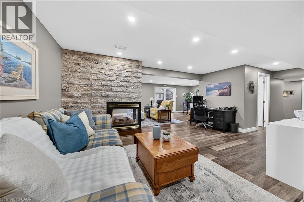 Beautifully presented 2017 custom “Eggink” built brick & stucco clad bungalow located in possibly one of Port Dover’s most desired, preferred subdivisions surrounded by similarly maintained homes & properties - 50 mins commute to Hamilton - less than 2 hour drive to the GTA. Take advantage of this sea-side town’s popular amenities that inc Live Theatre, Music in the Park venues, Links Style Golf, eclectic shops, trendy eateries/bistros & world famous beach front. This immaculate home is positioned handsomely on 0.18 acre lushly landscaped lot offering 60.99ft of frontage on quiet side street ftrs paved double driveway accented w/stamped concrete curbs & walkways extending along side house to large rear stamped concrete patio highlighting gentle sloping rear yard. Inviting covered porch provides entry to grandiose front foyer w/16ft ceilings introducing 1458sf of open concept living area boasting “Gourmet’s Dream” kitchen sporting in-vogue beige/white coloured cabinetry, contrast island, granite countertops & tile back-splash, adjacent dining area ftrs patio door walk-out to 8x12 private deck completed w/impressive living/great room. Premium laminate flooring & 9ft ceilings augment the chic, neutral décor w/sophisticated flair. Design continues past 4pc main bath on to elegant primary bedroom suite ftrs large walk-in closet & personal 3pc bath, sizeable guest bedroom segueing to desired main floor laundry incs direct entry to 11ft high oversized, insulated 24x25 garage. Gorgeous 1458sf lower level showcases 3-sided n/gas fireplace set in stone feature wall flanks rec/games room & spacious family room incs convenient peninsula/bar & sought after patio door walk-out to stamped concrete patio. Stylish 3pc bath, roomy 3rd bedroom, multiple storage rooms & utility room ensure all space is utilized. Notable extras - n/g furnace, AC, HRV, upgraded lighting, all appliances, n/g BBQ hook-up, 200 amp hydro & fibre internet. Distinguished Dover Life-Style Awaits! (id:4555)