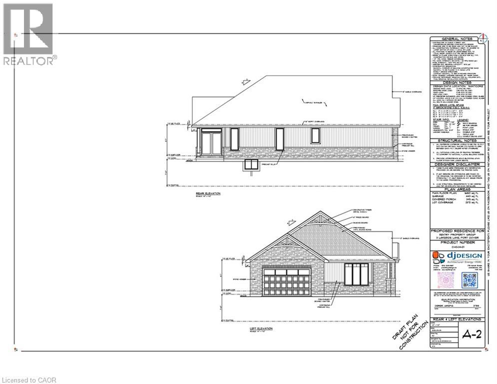 Presenting a thoughtfully crafted 1,680-square-foot bungalow “TO BE BUILT” in the picturesque lakeside town of Port Dover. Boasting attractive finishes, smart design, and premium craftsmanship, this home delivers an ideal balance of comfort and refinement. At first glance, the stone-and-Vinyl Sided Board & Batten exterior and covered front and rear porches announce the quality inside. Inside, you’ll find 9-foot ceilings and cathedral ceiling in the great room anchored by a natural gas fireplace, along with luxury vinyl plank flooring that creates an open, spacious feel throughout the main living area. The residence offers 2 generous bedrooms and 2 baths, including a beautifully appointed primary ensuite with a custom tiled shower & heated floor. The dinette & kitchen area features a breakfast bar/island and granite countertops, providing a stylish yet practical space for cooking and entertaining. Step outside to a covered rear porch, accessible from both the great room and the primary bedroom, filling the space with natural light and outdoor enjoyment. Additional highlights include a 443 sq. ft. 1 1/2-car garage with opener, main-floor laundry with interior garage access for convenience. The basement includes all exterior basement walls studded and insulated, ready for future development. This home blends stylish finishes with modern conveniences, just moments from Lake Erie and the charming shops and dining of downtown Port Dover. Schedule your private showing today and experience lakeside living at its best. (id:4555)