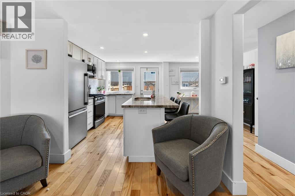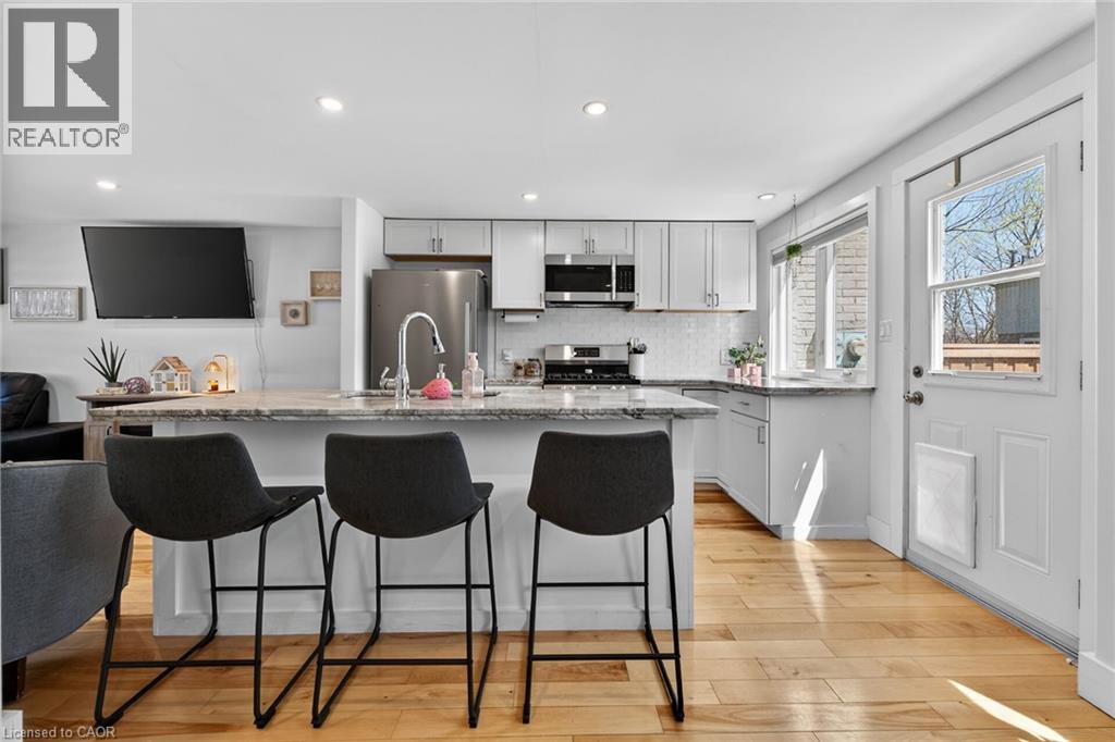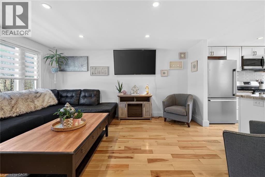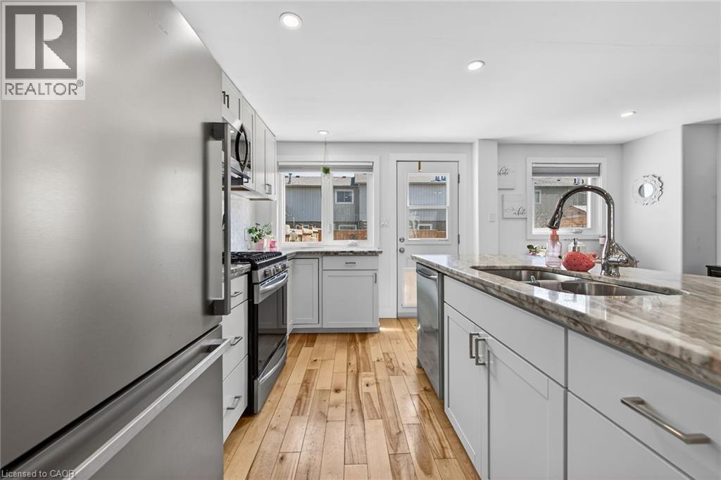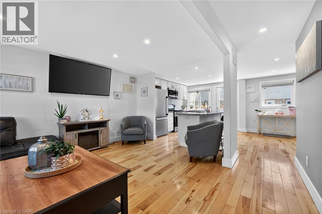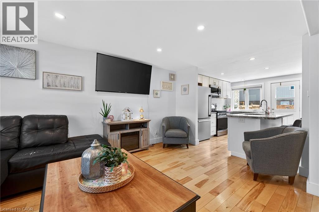 Stunning condo in the heart of Port Dover, just minutes from downtown shops, restaurants, golf courses and Lake Erie beachfront. This beautifully updated 2-storey unit offers 927 sq ft of living space, extensively renovated in 2020. The open-concept main level showcases a stylish kitchen with white cabinetry, granite countertops, a centre island with double sink, and stainless steel appliances, flowing seamlessly into an inviting living room and adjacent dining area with walk-out to a 10’ x 14’ rear deck and private backyard. The spacious upper level features three well-sized bedrooms and a modern 4-piece bath with a marble-top vanity. Natural hardwood flooring runs throughout both levels. The lower level houses the mechanicals and laundry area, offering excellent potential for future finishing. Extensive updates since 2020 include all windows and exterior doors, natural gas furnace, A/C, 100 amp electrical panel and updated wiring, pot lights, upgraded trim, insulation and more. (id:4555)