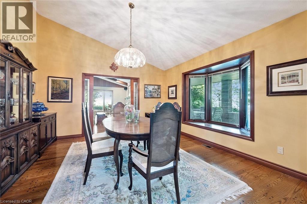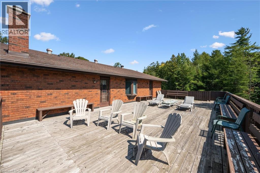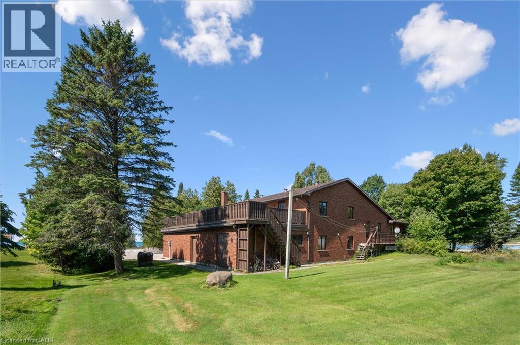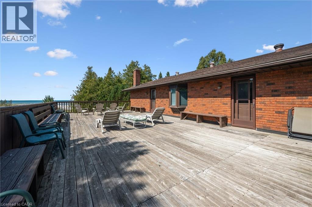 Welcome to Miramichi Bay Road Saugeen Shores! This magnificent side split home sits directly on Miramichi Bay, with panoramic views of Lake Huron from multiple sides. This home was built for entertaining with up to 5 bedrooms, multiple eating areas and outdoor spaces. The approximately one third of an acre property is beautifully landscaped with mature trees and perennials, interlock driveway with ample parking, concrete walk ways, steps and retaining walls. This home features an inviting two story front entry with large foyer open to a spacious vaulted great room, featuring a stunning wall to wall stone wood burning fireplace. This spectacular room is accented with custom wood beams, solid oak floors and other mill work. The formal dining room between the great room and kitchen allows for easy family gatherings in all seasons. The full kitchen includes an eating area that comfortably seats six and exits directly onto the large covered porch with panoramic lake views. This area has always been the heart of the home. The upper floor features three bedrooms and a large bathroom. One of the bedrooms features a kids bunky for sleepovers. The cozy lower level features a family room with wood stove and two guest bedrooms on ground level above grade, one with ensuite bath. There is a huge wood deck over the double garage with magnificent lake views where you can take in this area's renowned magical sunsets. This home was built to exacting standards, and is heavily insulated to survive the harshest weather to ensure you can enjoy living here year round. There are many trails to hike in the woods directly behind the home as well as the lake trail that runs along the shoreline directly in the front of the house. Port Elgin, Southampton, grocery, shopping, marina and community centres near by. Wonderful year round living. Open House has been cancelled this weekend. (id:4555)