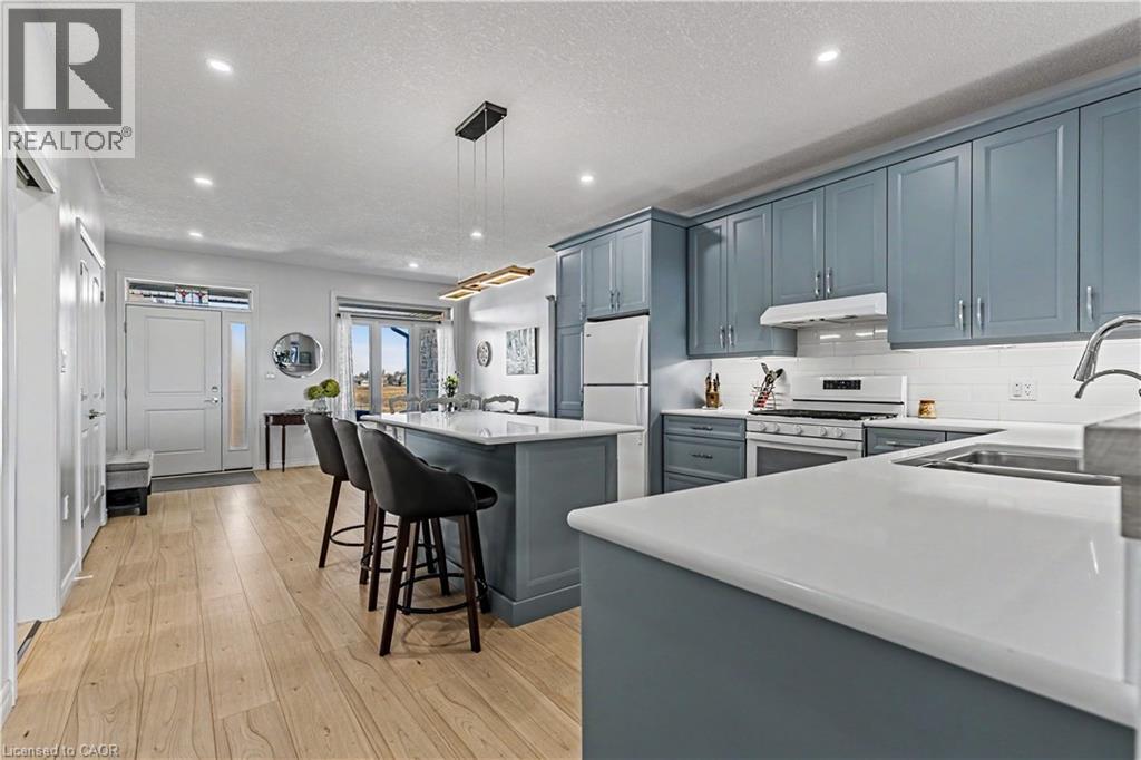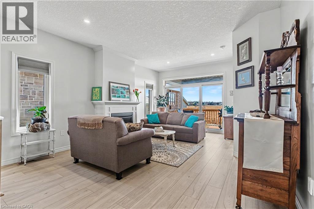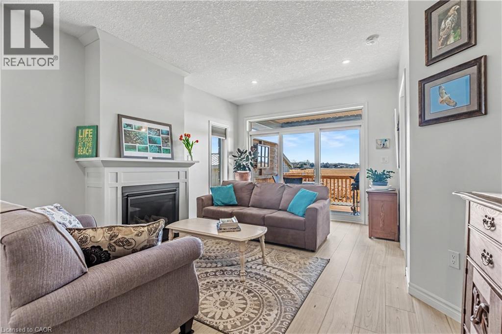 Step into effortless living in this beautifully designed bungalow townhome offering over 2,500 sq. ft. of finished space, just minutes from the water. Blending modern comfort with a beach-inspired aesthetic, this home features sleek vinyl plank flooring throughout and a sun-filled open-concept layout that feels both relaxed and refined. At the heart of the home, the stylish kitchen impresses with lots of cabinetry, quartz countertops and a large island with pendant lighting, perfect for gathering, entertaining or simply enjoying your morning coffee. The living room invites you to unwind with a cozy gas fireplace and oversized sliding doors that open to a private deck and backyard. The main floor offers two bedrooms, including a spacious primary suite complete with a 3-piece ensuite. A convenient laundry/mudroom with garage access as well as a 2-piece powder bathroom add to the home’s thoughtful design. The fully finished lower level continues to impress with oversized windows that bring in natural light, two additional large bedrooms, a 4-piece bathroom, generous storage space and a cold cellar - ideal for growing families or hosting guests. It's easy to enjoy the outdoors from your covered front porch, backyard deck off the living room as well as a rear yard that can be accessed through the garage. Whether you're hosting, relaxing or enjoying the nearby waterfront, this move-in-ready home delivers the perfect balance of style, space and comfort. Book your showing today! (id:4555)