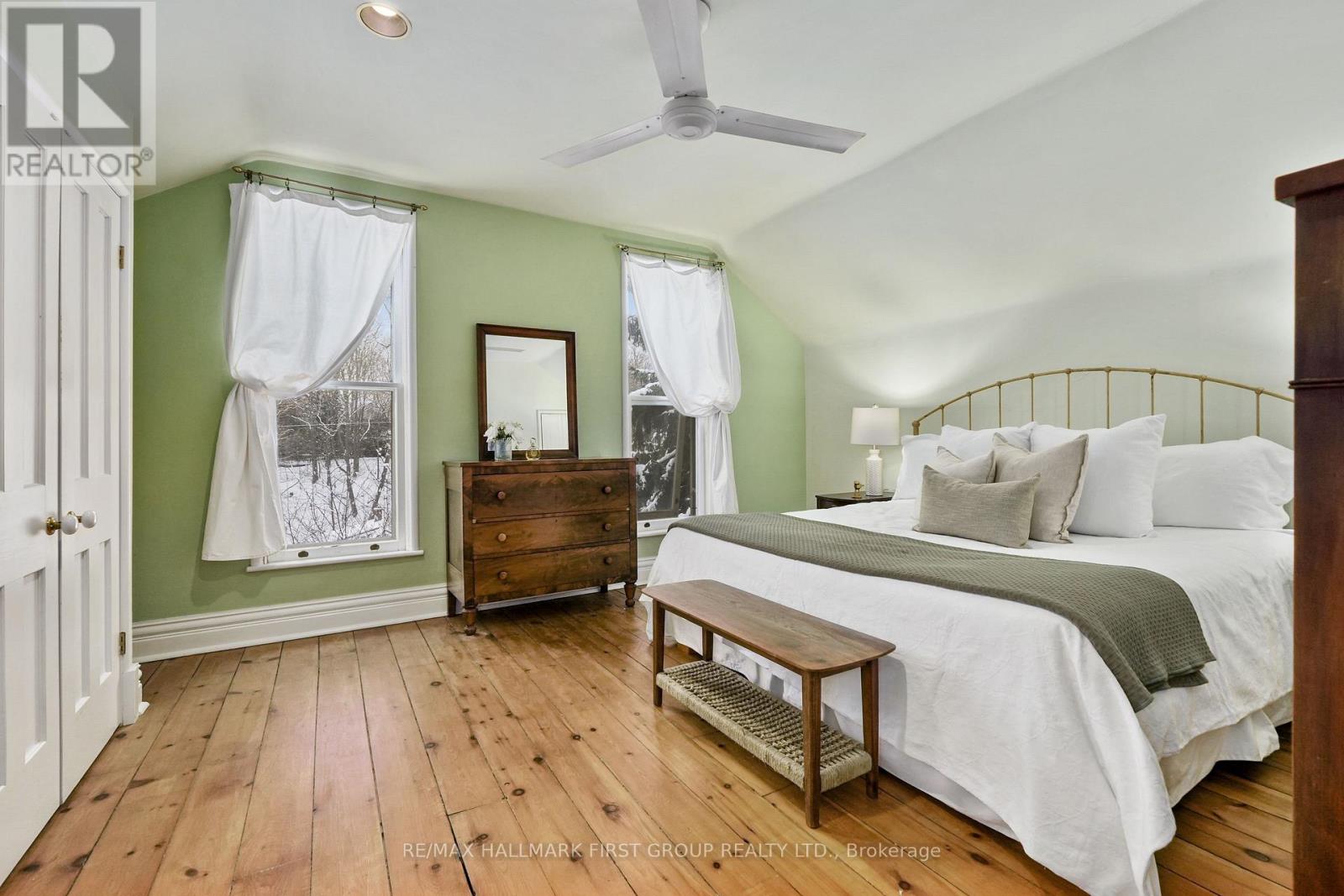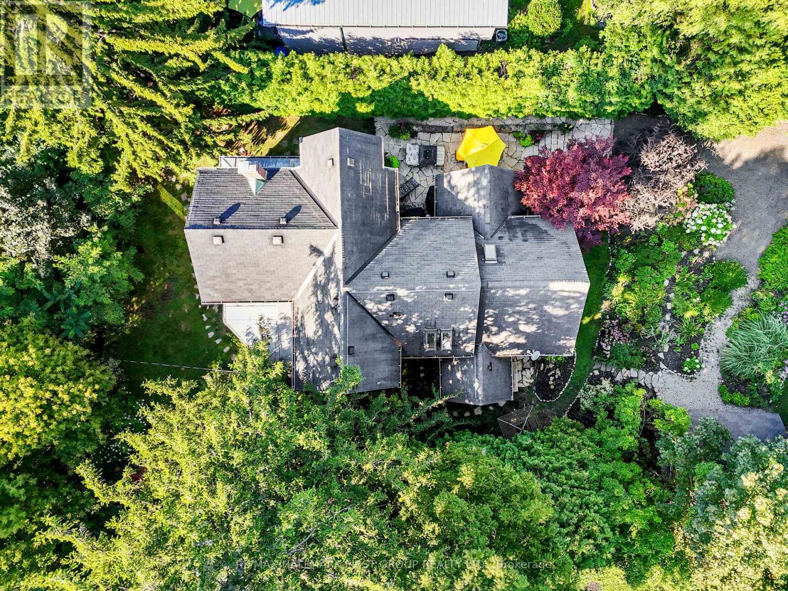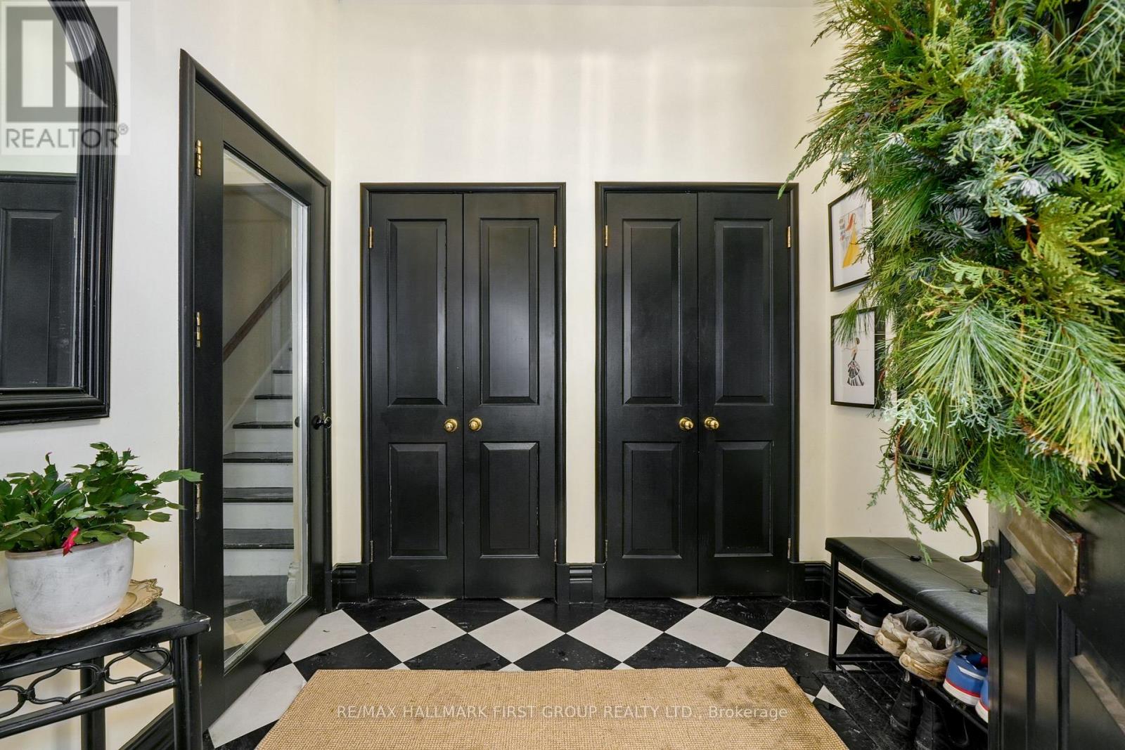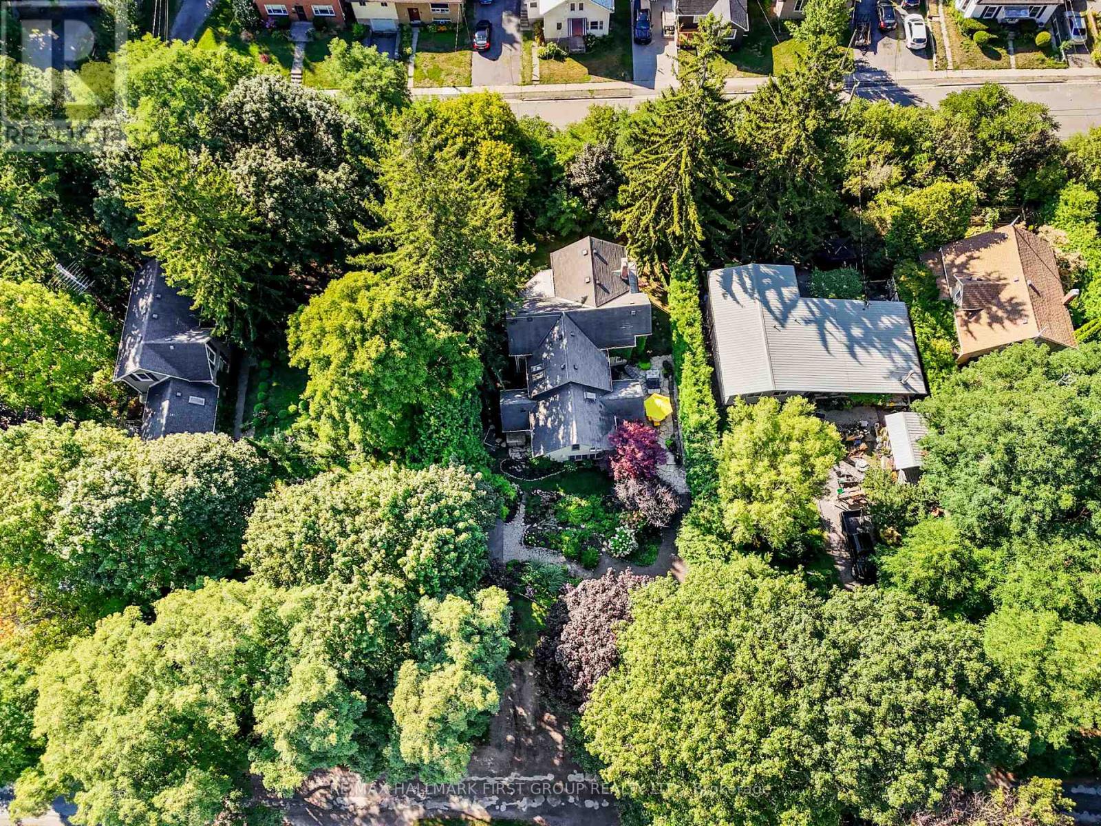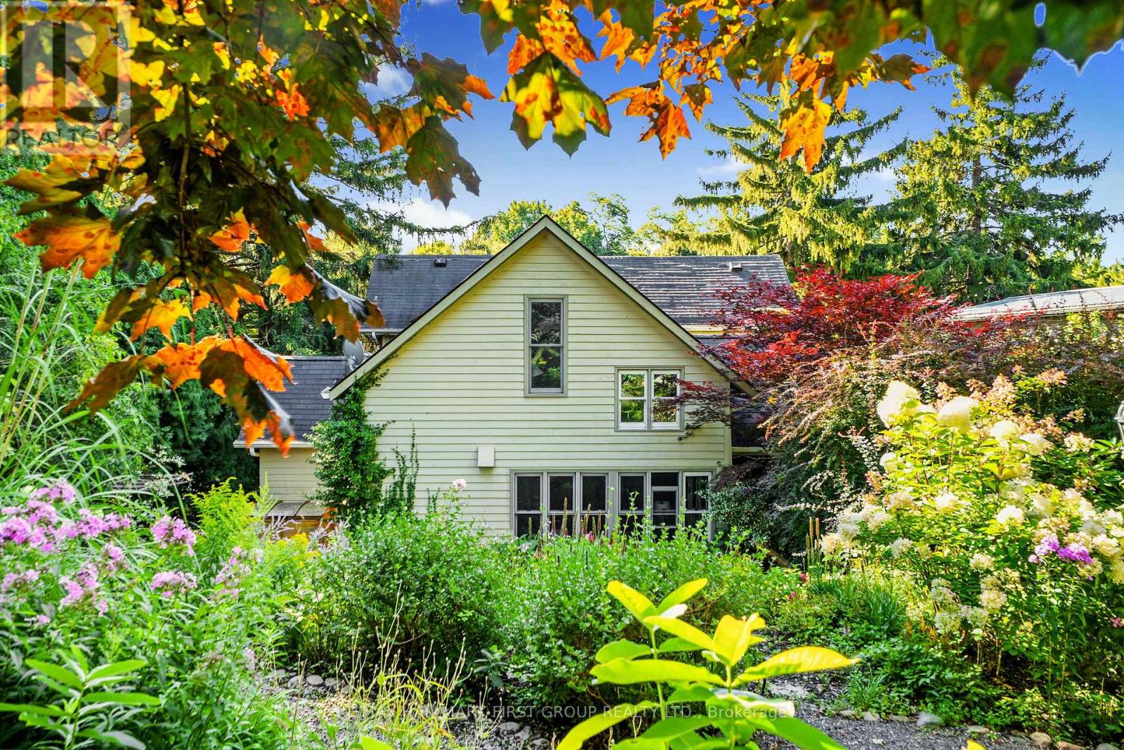 Located on a picturesque, tree-lined street in the heart of Downtown Port Hope, this distinctive 1850s-built home blends timeless character with thoughtful modern updates. Guests are greeted by a beautiful open foyer featuring a striking floor design and large windows that flood the space with natural light. The living room impresses with a sun-soaked layout, a wall of windows, and a soaring two-storey ceiling. In contrast, the spacious dining room showcases detailed trim and high baseboards, an ideal setting for holiday gatherings and year-round entertaining. The kitchen is designed for hosting, offering generous cabinet and counter space, a coffee bar area, gas stove, breakfast bar, and a prep counter accented by pendant lighting. A character-filled sitting or music room connects to the family room through an elegant arched doorway. The cozy family room features an ornate decorative fireplace and floor-to-ceiling windows overlooking the gardens. A main-floor three-piece bathroom and a convenient laundry room complete this level. Upstairs, the primary bedroom offers a spacious retreat with dual closets featuring French doors, high ceilings, and recessed lighting. The bathroom includes skylights, a glass shower enclosure, and a relaxing soaker tub. Two well-appointed bedrooms and an open loft ideal for a home office or guest space complete the upper floor plan. Outside, a private secret garden oasis awaits. Enjoy a covered porch perfect for morning coffee in any weather, a back patio ideal for alfresco dining, and lush mature trees and gardens, all complemented by a charming bunkie. Situated moments from Trinity College School local amenities, downtown shops, and restaurants, this home offers the exceptional lifestyle Port Hope is known for, with easy access to the 401. (id:4555)