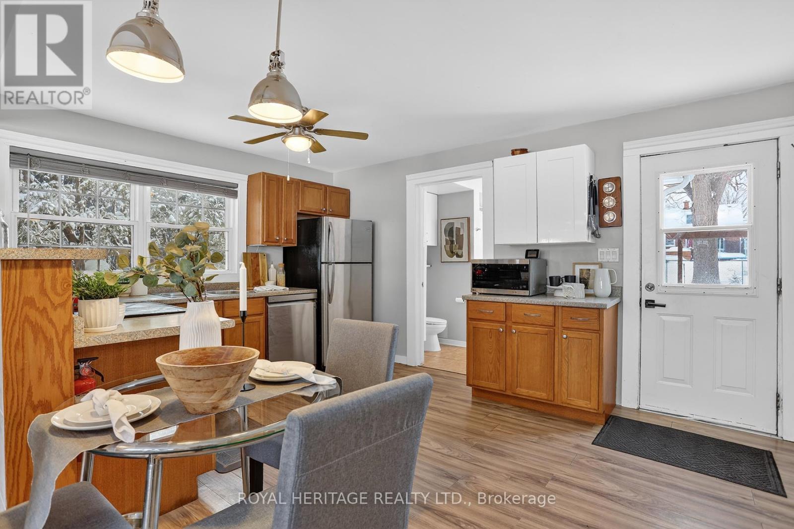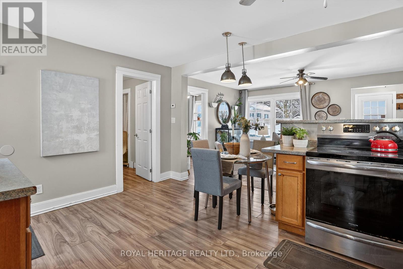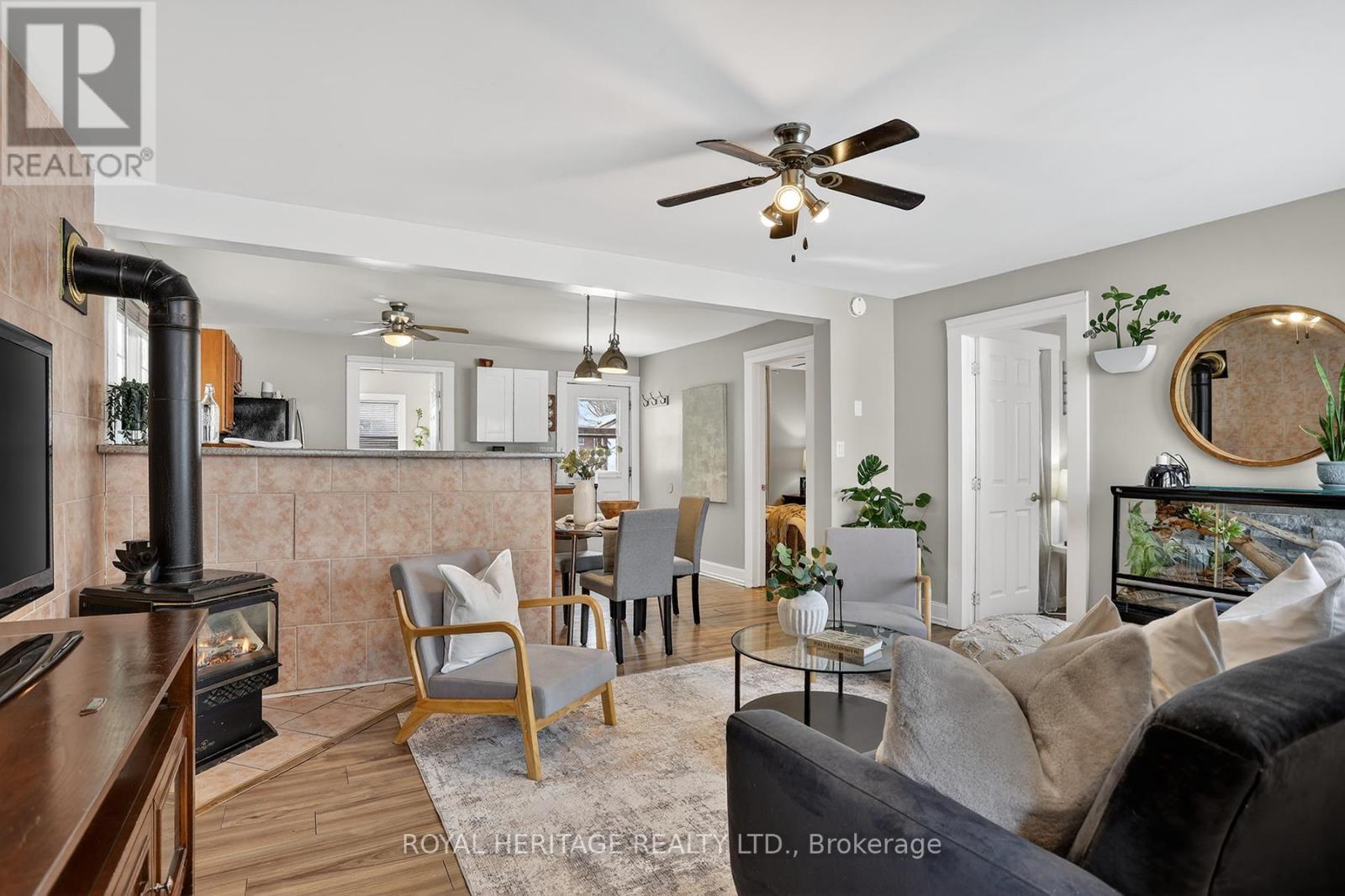 Getting into the market? Ready to downsize? This charming home is perfect and in an awesome location! Walking distance to shops, Trinity College, close to downtown yet situated in a quiet, family friendly neighbourhood. Easy access to the 401 and the gorgeous waterfront and beach area of Port Hope. The fully fenced backyard is great for pets, children and warm summer evenings. Two driveways ensure ample parking. A spacious, tastefully finished bathroom also conveniently includes the laundry area. The open concept kitchen/dining and living areas provide "the" spot to snuggle in front of the fire, entertain family and friends or simply relax. Welcome home to 90 Hope St. S. (id:4555)