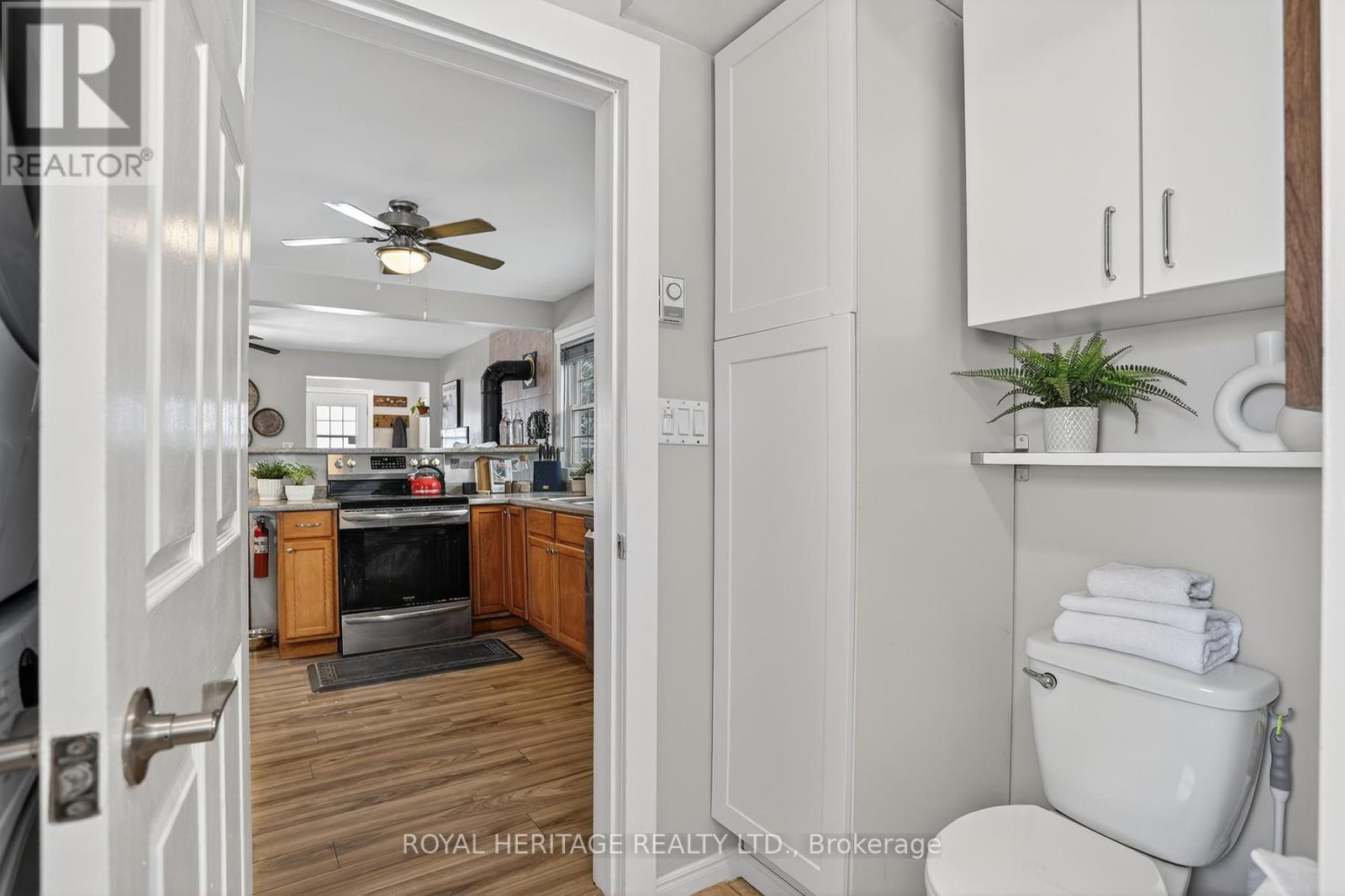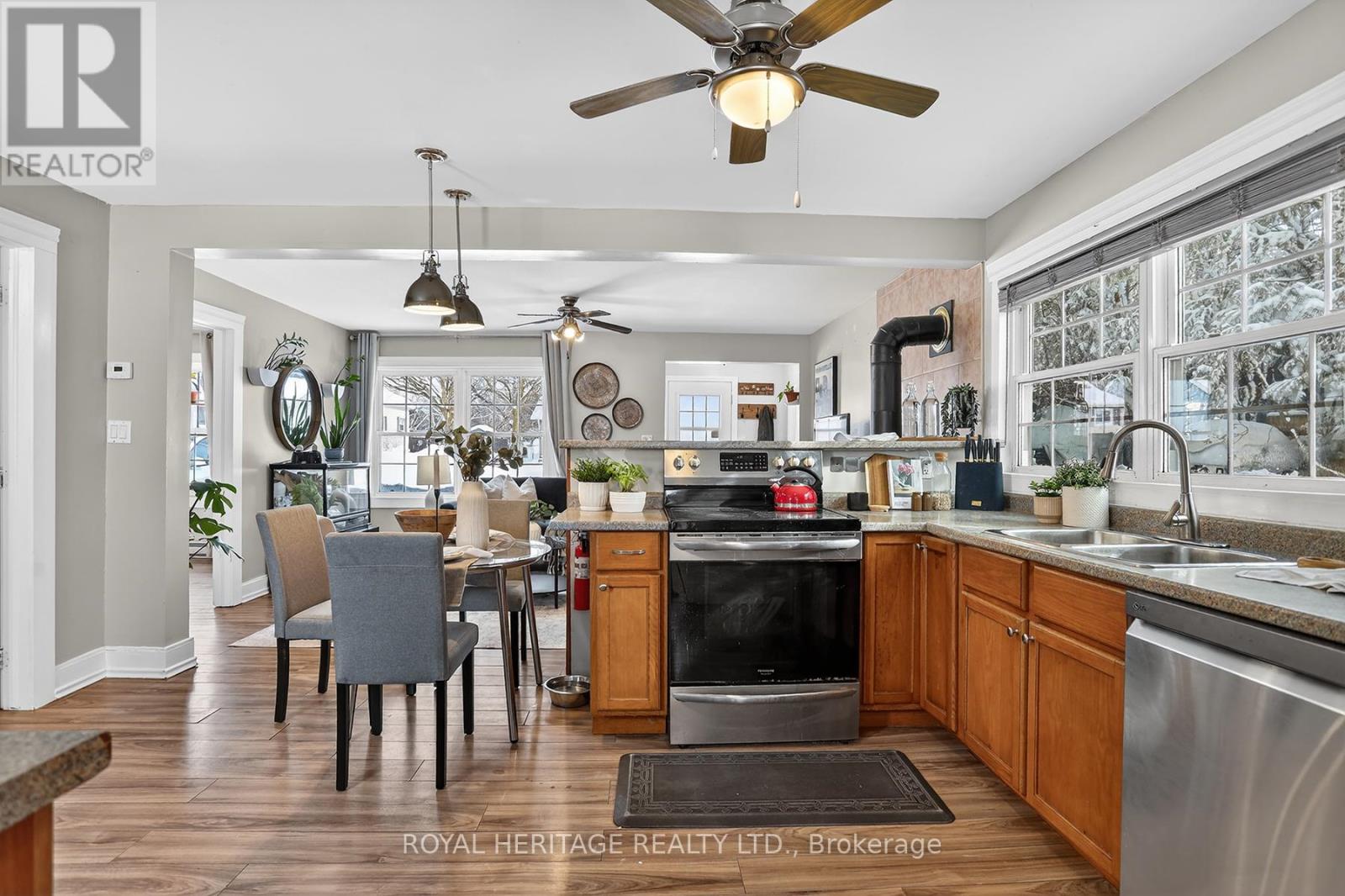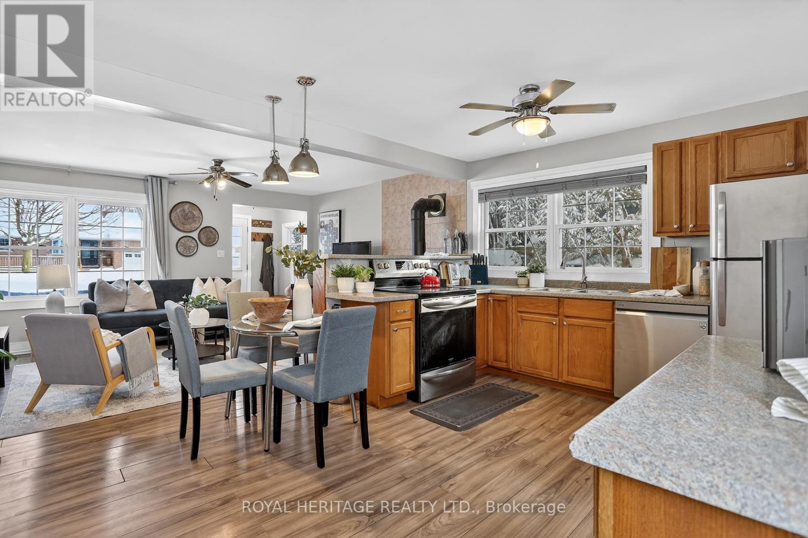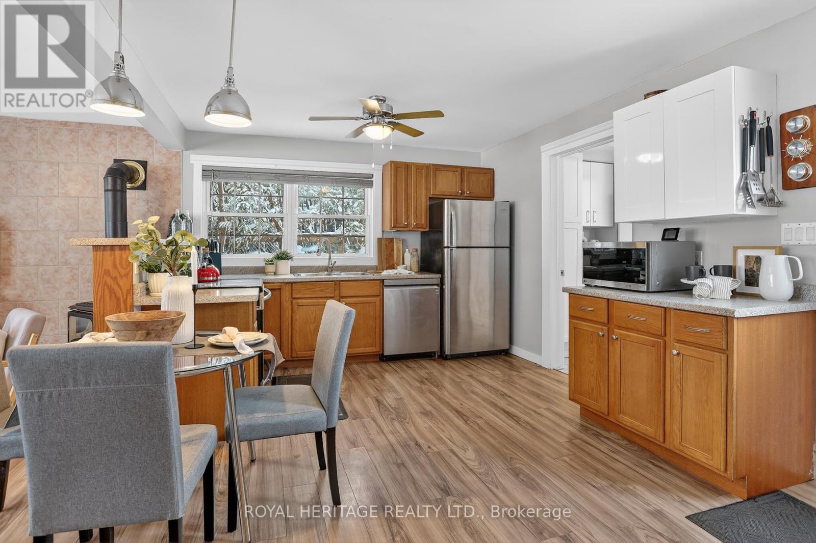 Getting into the market? Ready to downsize? This charming home is perfect and in an awesome location! Walking distance to shops, Trinity College, close to downtown yet situated in a quiet, family friendly neighbourhood. Easy access to the 401 and the gorgeous waterfront and beach area of Port Hope. The fully fenced backyard is great for pets, children and warm summer evenings. Two driveways ensure ample parking. A spacious, tastefully finished bathroom also conveniently includes the laundry area. The open concept kitchen/dining and living areas provide "the" spot to snuggle in front of the fire, entertain family and friends or simply relax. Welcome home to 90 Hope St. S. (id:4555)