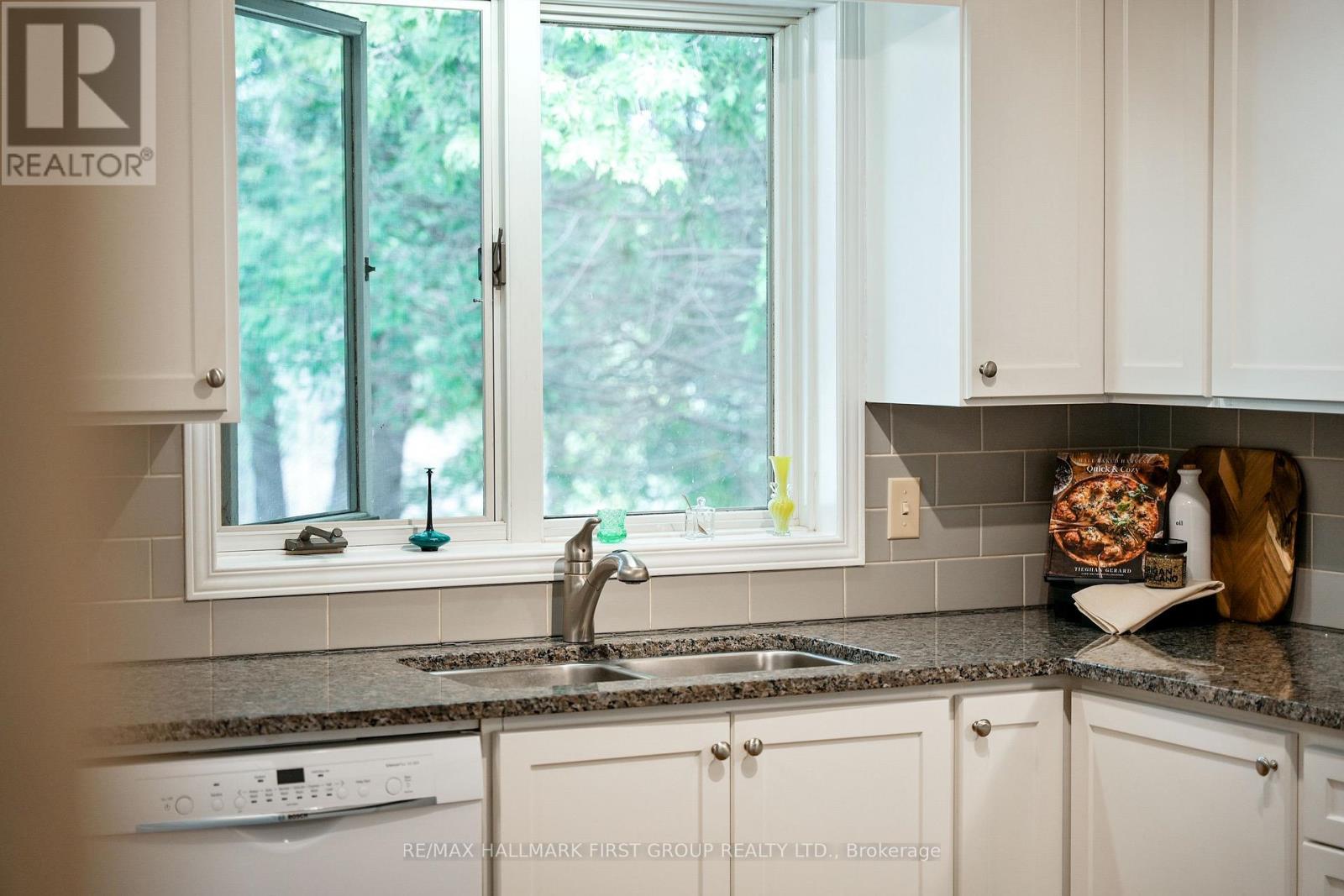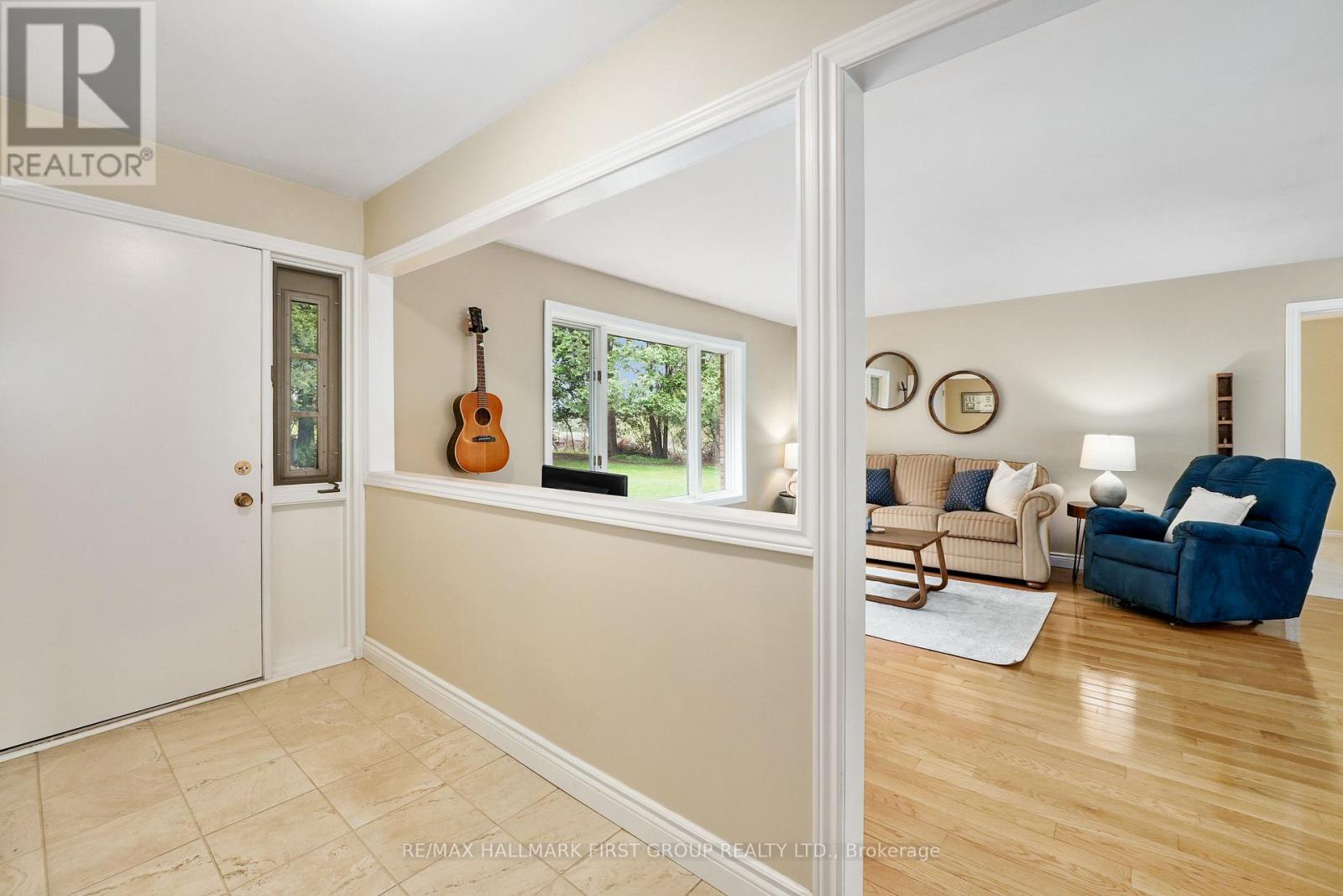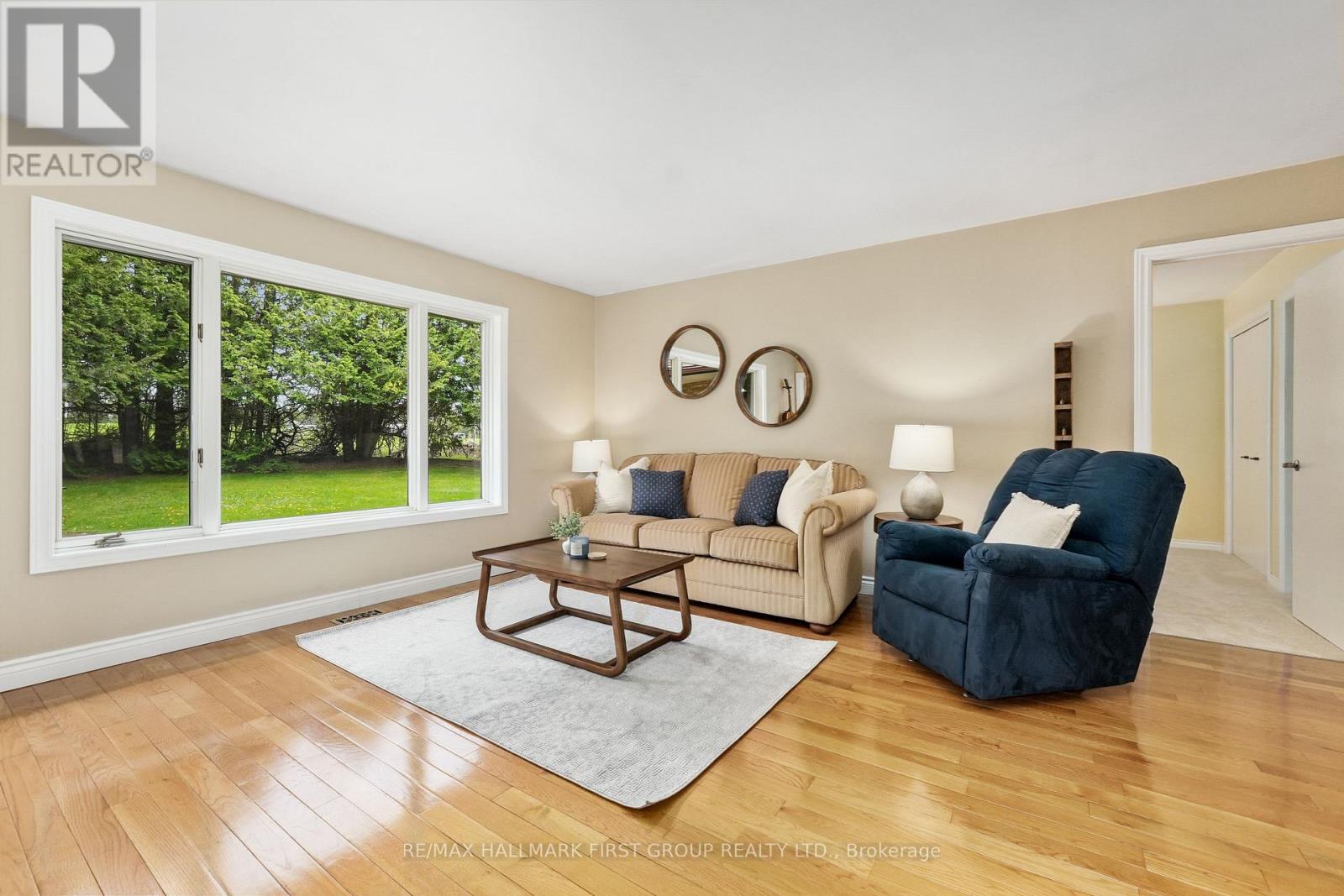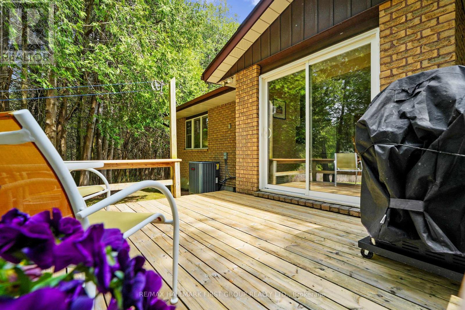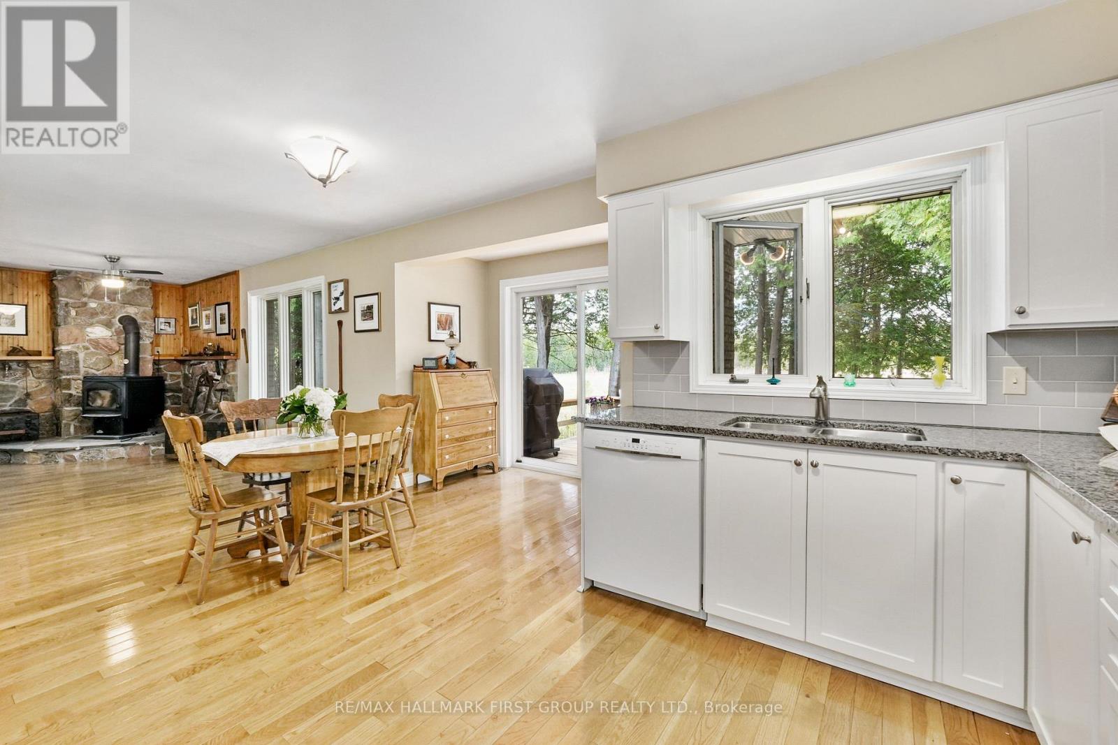 Classic charm meets country living in this timeless brick bungalow on 25 forested acres. Offering the ease of one-level living with the added flexibility of a finished lower level and separate entrance, this home suits multigenerational families or those seeking in-law potential. A covered front entrance leads into bright and airy principal rooms where natural light pours through a large picture window in the living room, framing serene views of the surrounding landscape. A cozy wood stove with a stone hearth adds warmth and character. The open-concept dining area features a walkout to the back deck, which is ideal for outdoor entertaining or simply enjoying peaceful country mornings. The kitchen is stylish and functional, with white cabinetry, matching appliances, and a classic tile backsplash. Two spacious main-floor bedrooms, each with its own full ensuite, while a powder room off the front hall serves guests comfortably. Downstairs, the finished lower level expands the living space with a generous rec room, games or media room, office area, large bedroom, and laundry room with ample storage. A separate entrance provides privacy and versatility for extended family or guests. Outdoors, take in the sights and sounds of nature from the deck or explore the surrounding forest. The attached garage includes an additional storage room, extending versatility. All this country tranquility is just 10 minutes from town amenities and convenient 401 access, a perfect blend of seclusion and accessibility. Note: NEW Furnace installed September 2025. (id:4555)