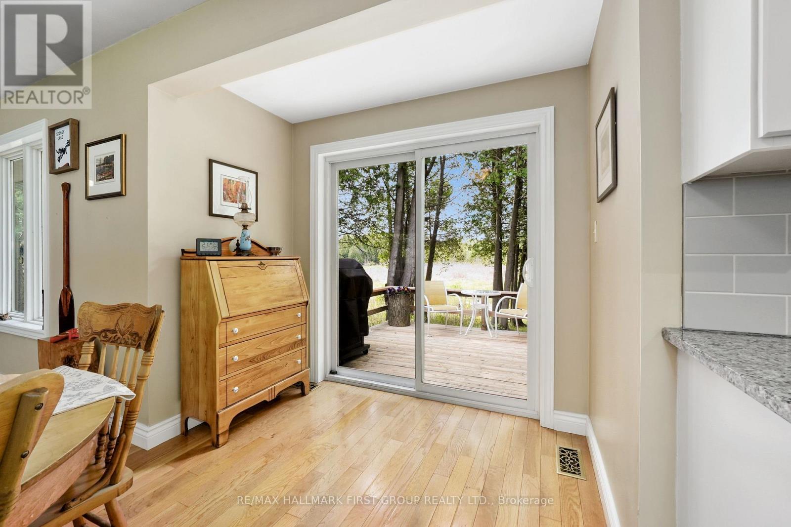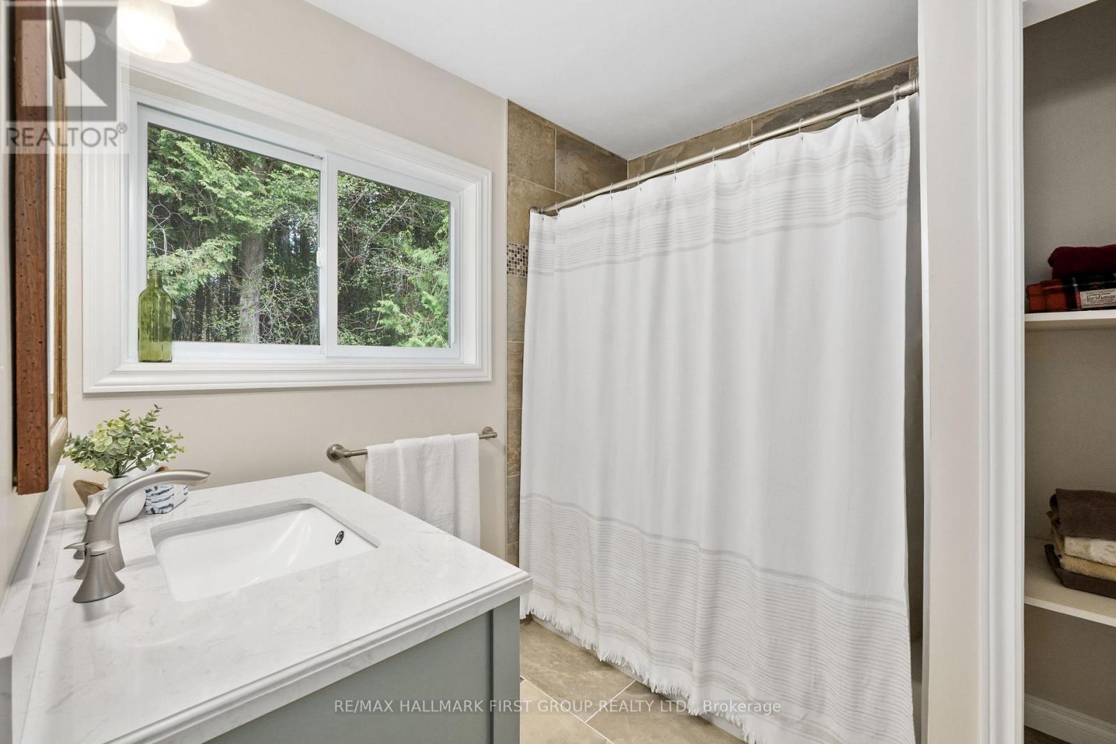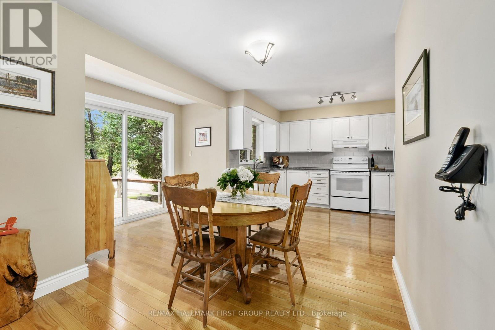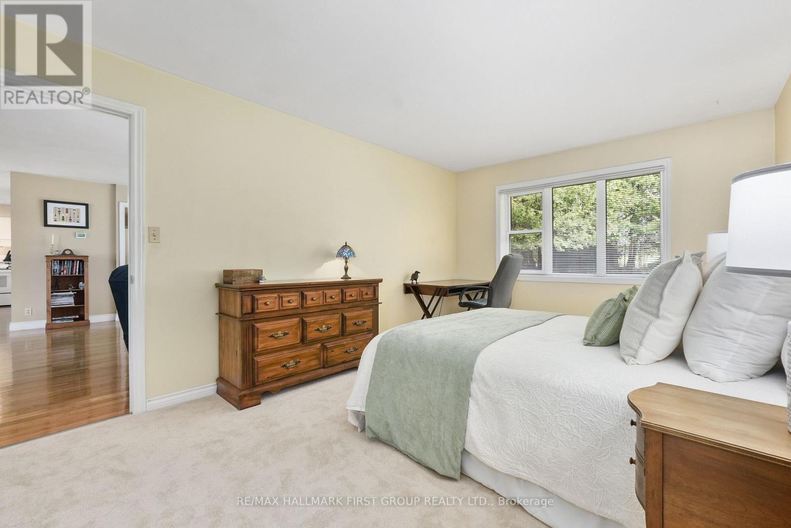 Classic charm meets country living in this timeless brick bungalow on 25 forested acres. Offering the ease of one-level living with the added flexibility of a finished lower level and separate entrance, this home suits multigenerational families or those seeking in-law potential. A covered front entrance leads into bright and airy principal rooms where natural light pours through a large picture window in the living room, framing serene views of the surrounding landscape. A cozy wood stove with a stone hearth adds warmth and character. The open-concept dining area features a walkout to the back deck, which is ideal for outdoor entertaining or simply enjoying peaceful country mornings. The kitchen is stylish and functional, with white cabinetry, matching appliances, and a classic tile backsplash. Two spacious main-floor bedrooms, each with its own full ensuite, while a powder room off the front hall serves guests comfortably. Downstairs, the finished lower level expands the living space with a generous rec room, games or media room, office area, large bedroom, and laundry room with ample storage. A separate entrance provides privacy and versatility for extended family or guests. Outdoors, take in the sights and sounds of nature from the deck or explore the surrounding forest. The attached garage includes an additional storage room, extending versatility. All this country tranquility is just 10 minutes from town amenities and convenient 401 access, a perfect blend of seclusion and accessibility. Note: NEW Furnace installed September 2025. (id:4555)