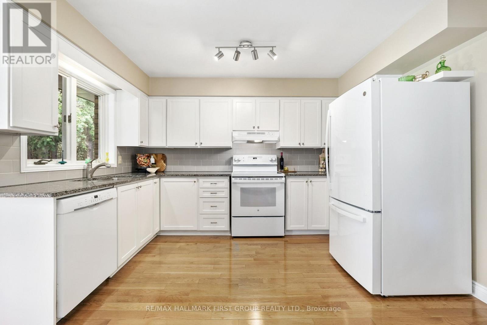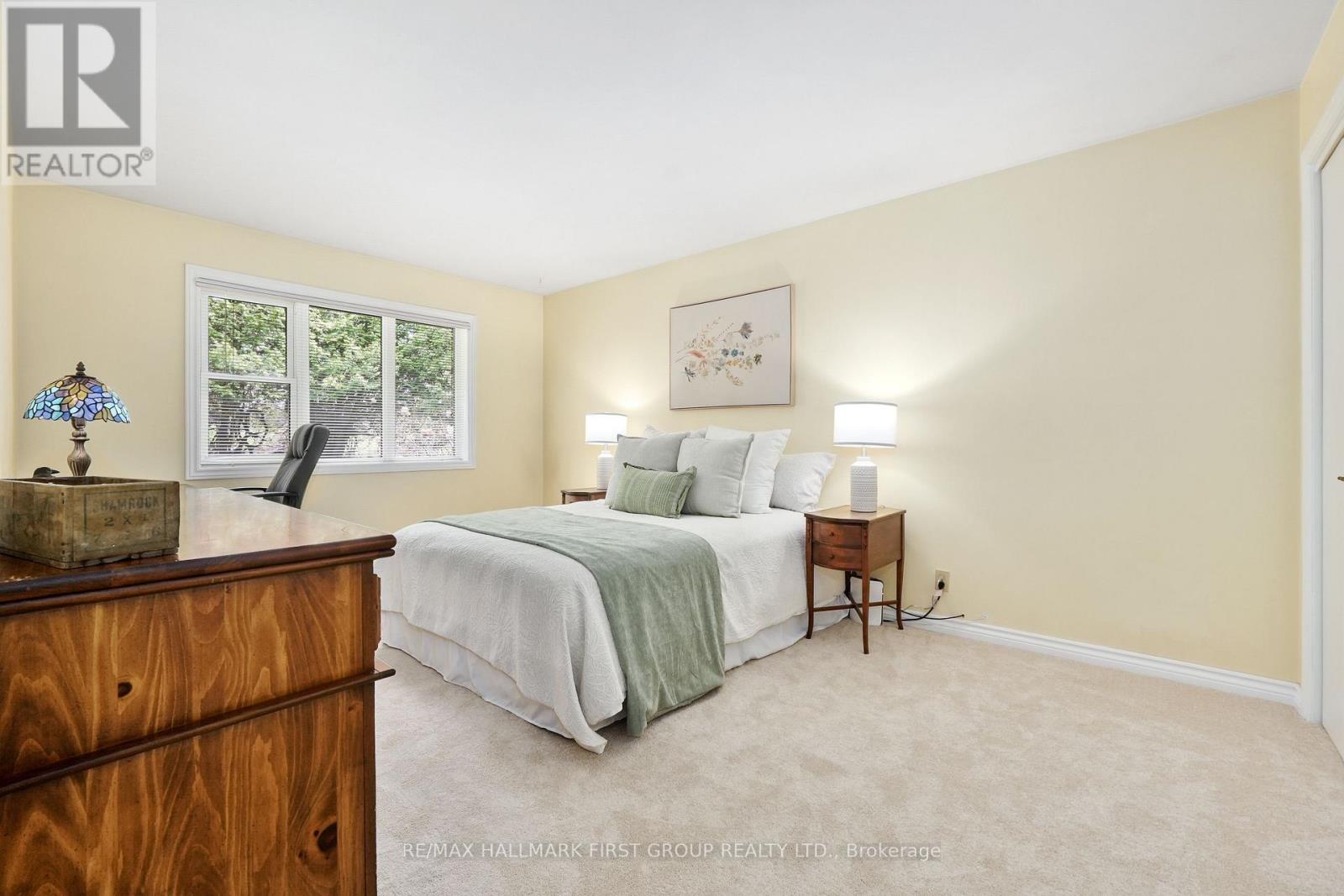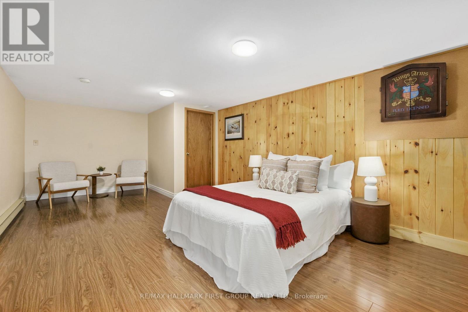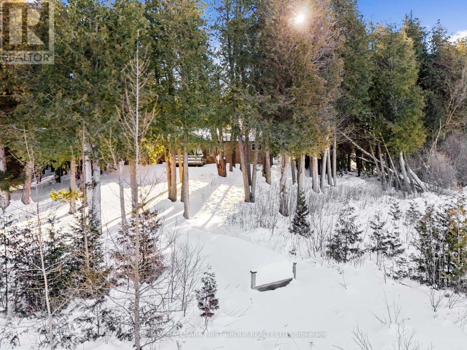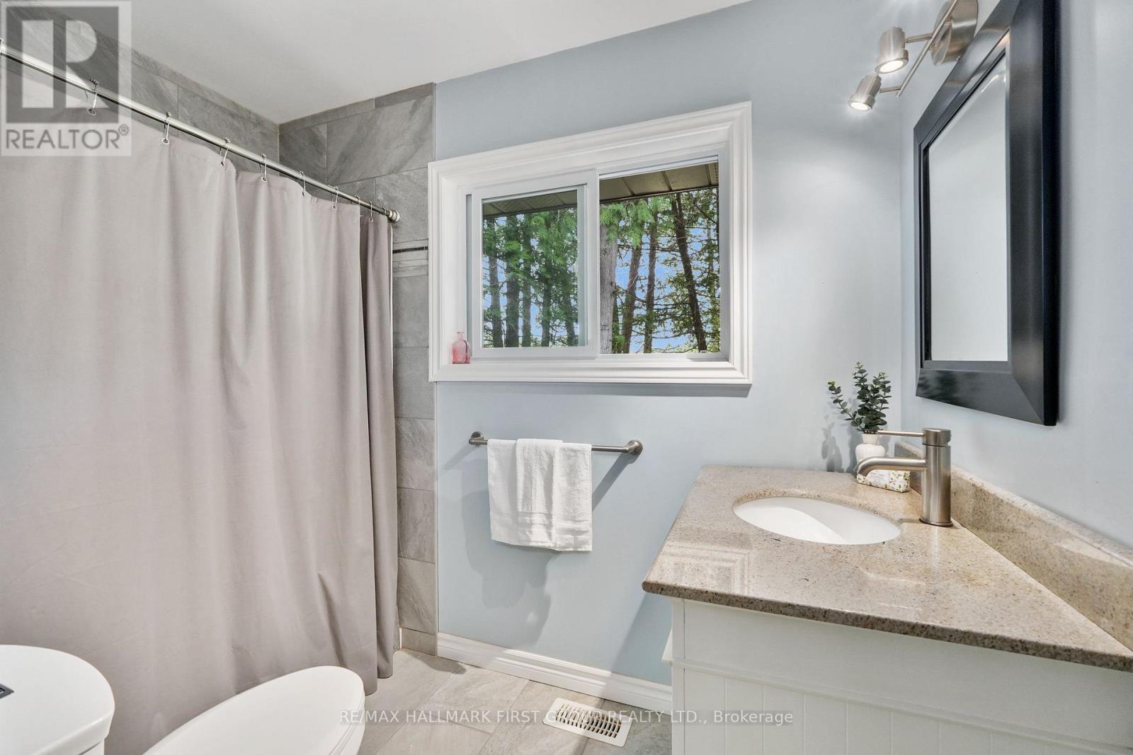 Classic charm meets country living in this timeless brick bungalow on 25 forested acres. Offering the ease of one-level living with the added flexibility of a finished lower level and separate entrance, this home suits multigenerational families or those seeking in-law potential. A covered front entrance leads into bright and airy principal rooms where natural light pours through a large picture window in the living room, framing serene views of the surrounding landscape. A cozy wood stove with a stone hearth adds warmth and character. The open-concept dining area features a walkout to the back deck, which is ideal for outdoor entertaining or simply enjoying peaceful country mornings. The kitchen is stylish and functional, with white cabinetry, matching appliances, and a classic tile backsplash. Two spacious main-floor bedrooms, each with its own full ensuite, while a powder room off the front hall serves guests comfortably. Downstairs, the finished lower level expands the living space with a generous rec room, games or media room, office area, large bedroom, and laundry room with ample storage. A separate entrance provides privacy and versatility for extended family or guests. Outdoors, take in the sights and sounds of nature from the deck or explore the surrounding forest. The attached garage includes an additional storage room, extending versatility. All this country tranquility is just 10 minutes from town amenities and convenient 401 access, a perfect blend of seclusion and accessibility. Note: NEW Furnace installed September 2025. (id:4555)