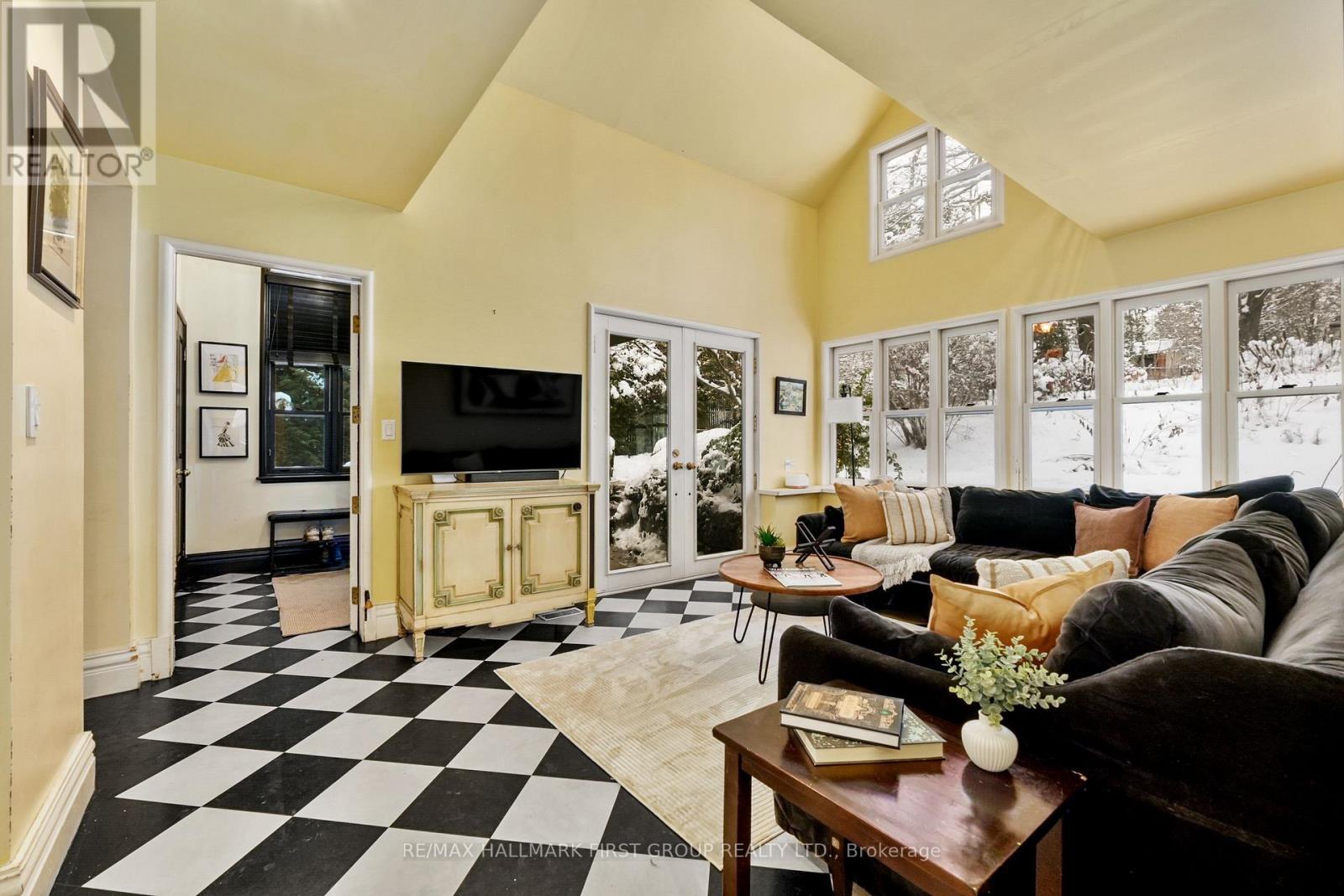 Located on a picturesque, tree-lined street in the heart of Downtown Port Hope, this distinctive 1850s-built home blends timeless character with thoughtful modern updates. Guests are greeted by a beautiful open foyer featuring a striking floor design and large windows that flood the space with natural light. The living room impresses with a sun-soaked layout, a wall of windows, and a soaring two-storey ceiling. In contrast, the spacious dining room showcases detailed trim and high baseboards, an ideal setting for holiday gatherings and year-round entertaining. The kitchen is designed for hosting, offering generous cabinet and counter space, a coffee bar area, gas stove, breakfast bar, and a prep counter accented by pendant lighting. A character-filled sitting or music room connects to the family room through an elegant arched doorway. The cozy family room features an ornate decorative fireplace and floor-to-ceiling windows overlooking the gardens. A main-floor three-piece bathroom and a convenient laundry room complete this level. Upstairs, the primary bedroom offers a spacious retreat with dual closets featuring French doors, high ceilings, and recessed lighting. The bathroom includes skylights, a glass shower enclosure, and a relaxing soaker tub. Two well-appointed bedrooms and an open loft ideal for a home office or guest space complete the upper floor plan. Outside, a private secret garden oasis awaits. Enjoy a covered porch perfect for morning coffee in any weather, a back patio ideal for alfresco dining, and lush mature trees and gardens, all complemented by a charming bunkie. Situated moments from Trinity College School local amenities, downtown shops, and restaurants, this home offers the exceptional lifestyle Port Hope is known for, with easy access to the 401. (id:4555)