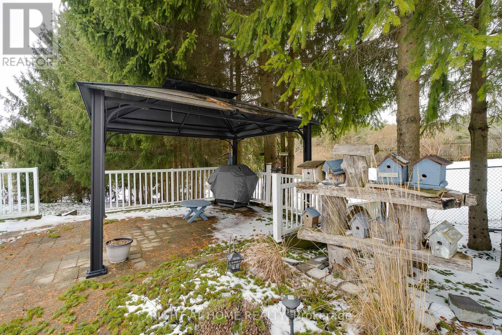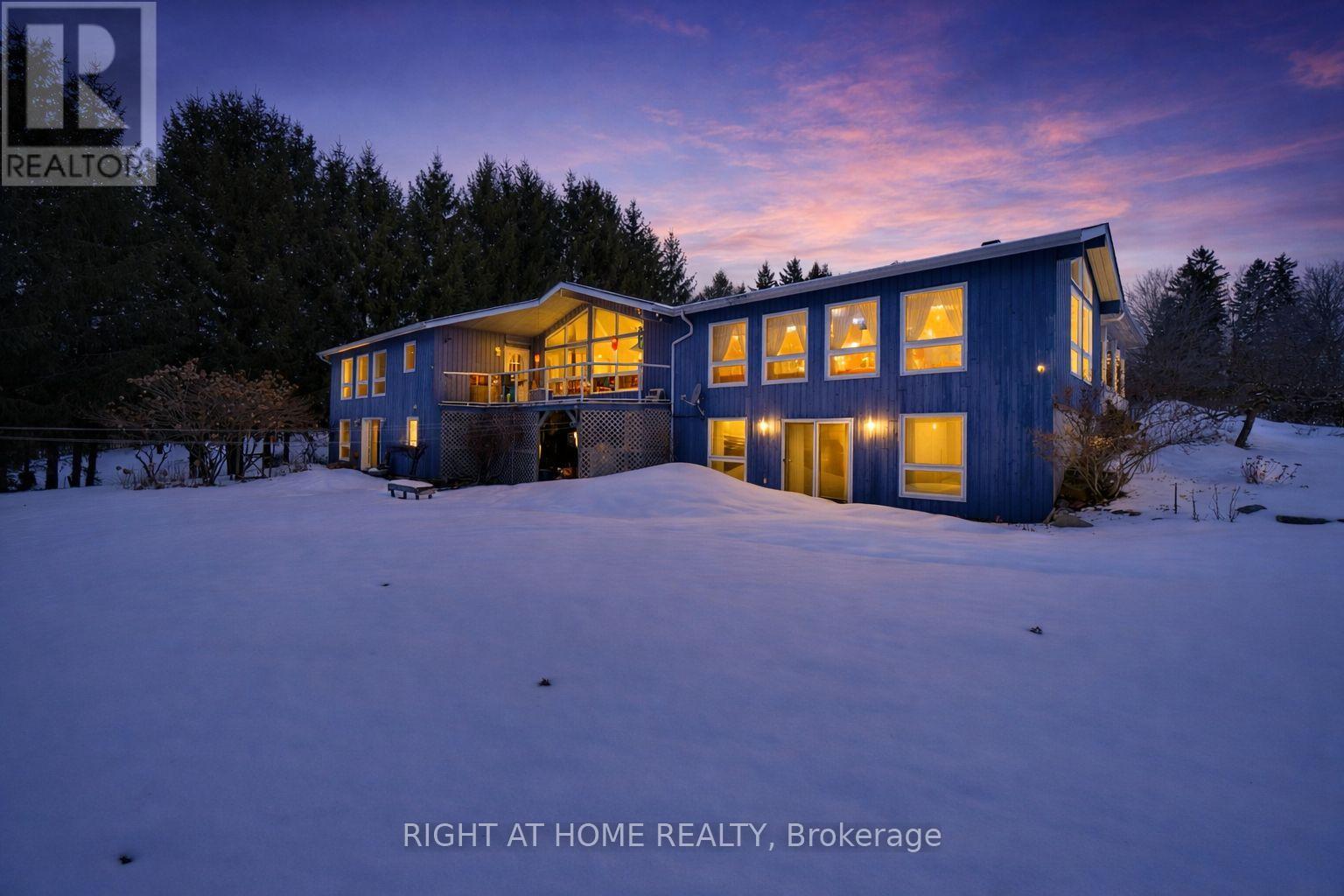 Exceptional meticulously maintained Multi-Family Country Home in a charming board and batten exterior with a matching large detached Workshop/Garage on Scenic Acreage - Minutes to Highways 407, 401 & 115 and the Ganaraska Conservation. Welcome to your dream retreat! Nestled on a quiet country road and surrounded by rolling hills, picturesque horse farms and the Ganaraska Forest at your doorstep, this property offers a rare blend of privacy, natural beauty, and convenient access to major highways and amenities. Enjoy a true four-season lifestyle-hike, bike, ride, or snowmobile right from your doorstep and immerse yourself in the surrounding outdoor paradise. This spacious bungalow offers over 4000+ sq ft of living space with 5 total bedrooms across both levels is thoughtfully designed for both comfort and connection to nature, featuring three decks/balconies on the main level and a fully finished lower level with three walkouts, providing seamless indoor-outdoor living and stunning views of the private landscape. Inside, the home boasts bright, expansive principal rooms, vaulted ceilings, gorgeous pine wood plank floors, three full bathrooms, and a chef's kitchen complete with granite countertops and ample cabinetry. A full second kitchen offers excellent flexibility, allowing the home to function as two separate living spaces-ideal for multi-generational living or income potential. Step outside to your heated, in-ground saltwater pool, surrounded by beautiful perennial gardens-perfect for relaxing or entertaining. Additional features include a 26' x 36' insulated garage/workshop with heater, a tool shed, a large storage tent for all your recreational equipment, and a charming gazebo to enjoy the peaceful surroundings. (id:4555)