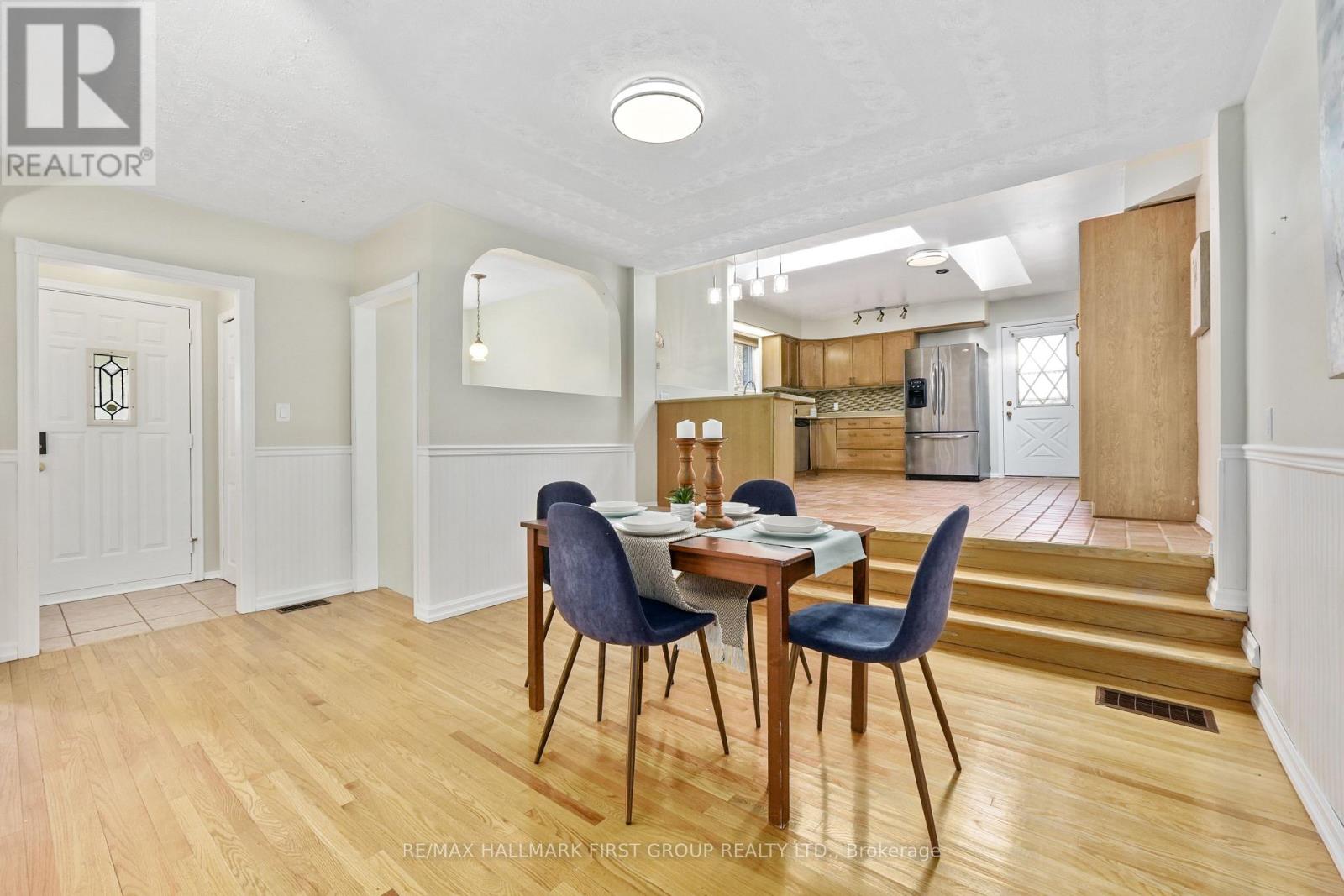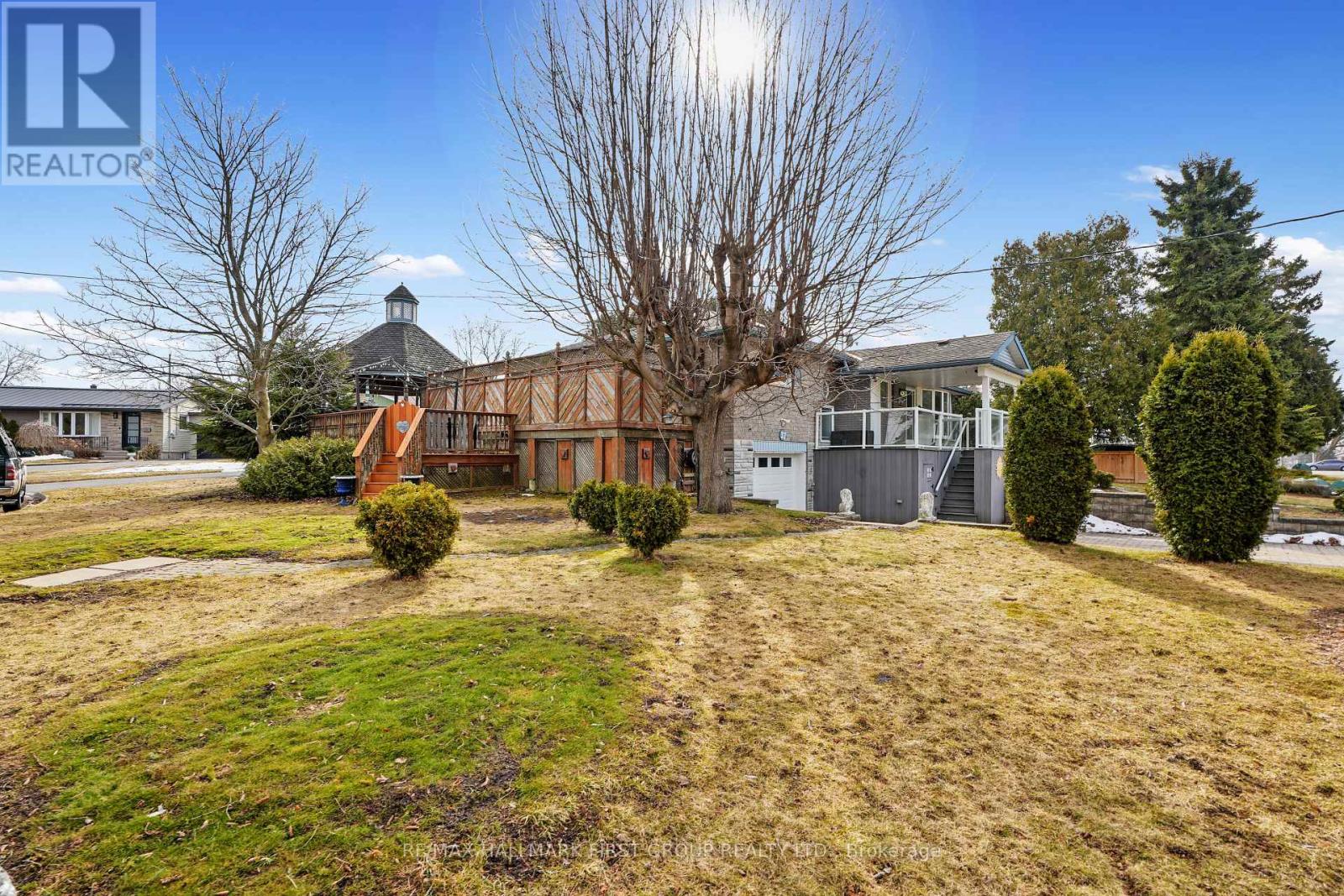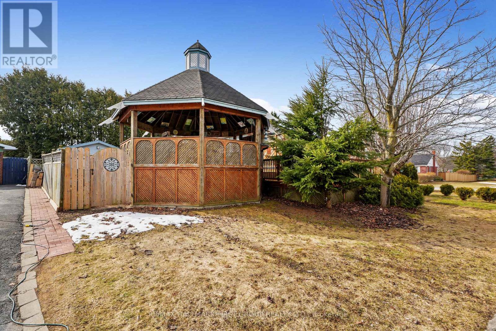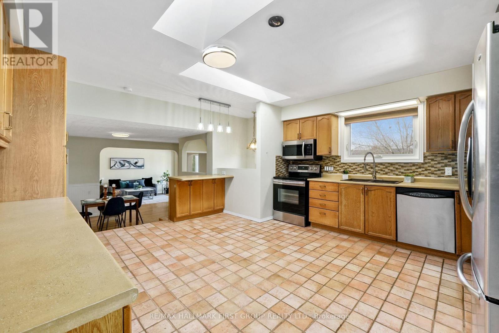 Set in a quiet, family-friendly community, this well-appointed home offers thoughtful living space on both levels, along with a separate entrance to the finished lower level. A large covered front porch creates the perfect setting for slow mornings with coffee and relaxed evenings. Inside, the living room is bright and inviting with a charming bay window, carpet-free flooring, and a gently arched entrance that adds architectural character. The dining room features classic wainscotting and flows seamlessly into the elevated kitchen. The kitchen is both spacious and full of natural light, highlighted by multiple skylights and a walkout that connects effortlessly to the outdoor living space. Stainless steel appliances, ample counter and cupboard space, and a breakfast bar with pendant lighting make it as functional as it is welcoming. The main floor includes a primary suite complete with a dressing area or office space, its own walkout, and a private ensuite bathroom. Two additional bedrooms and a full bathroom complete this level. Downstairs, the finished lower level is designed for entertaining and everyday living, featuring a rec room with warm wood trim, a full built-in bar, fireplace, and a separate media area. The laundry room offers extra storage. A guest bathroom with a shower enclosure completes the space. Outside, the fenced backyard provides privacy and room to enjoy, with a wide deck that wraps around to a covered wooden gazebo, a patio area, and a detached garage ideal for recreational gear and lawn equipment. Conveniently located near amenities and with easy access to the 401, this home offers comfort, space, and versatility for modern family living. (id:4555)