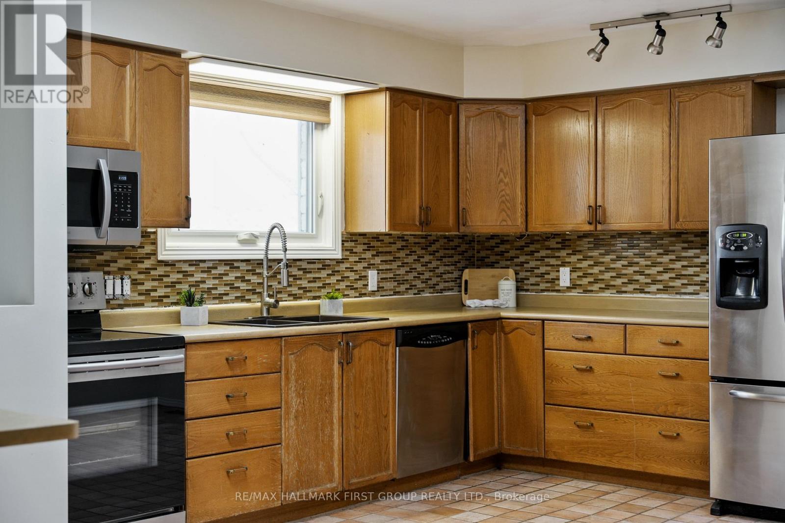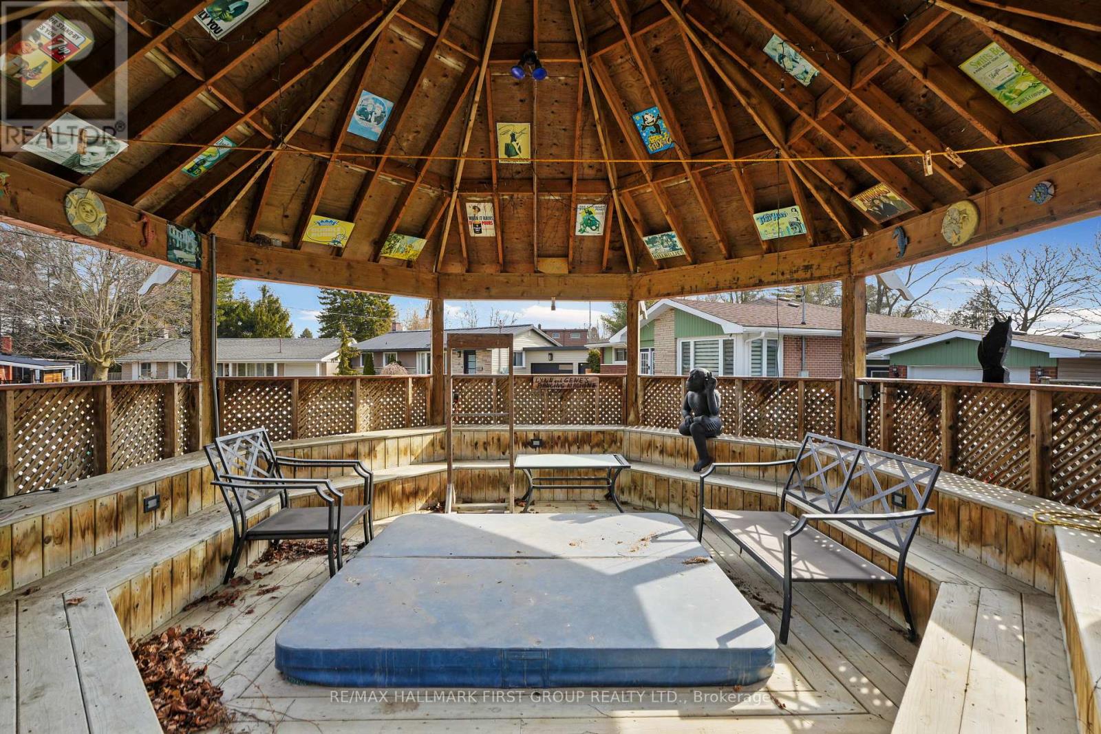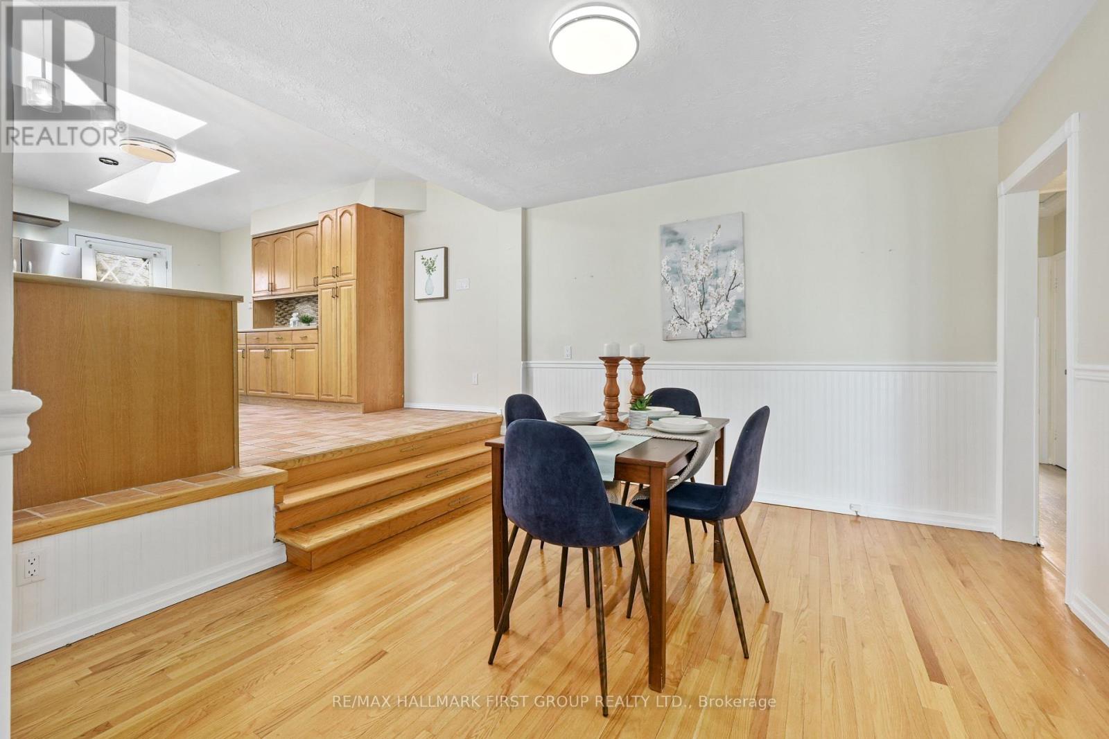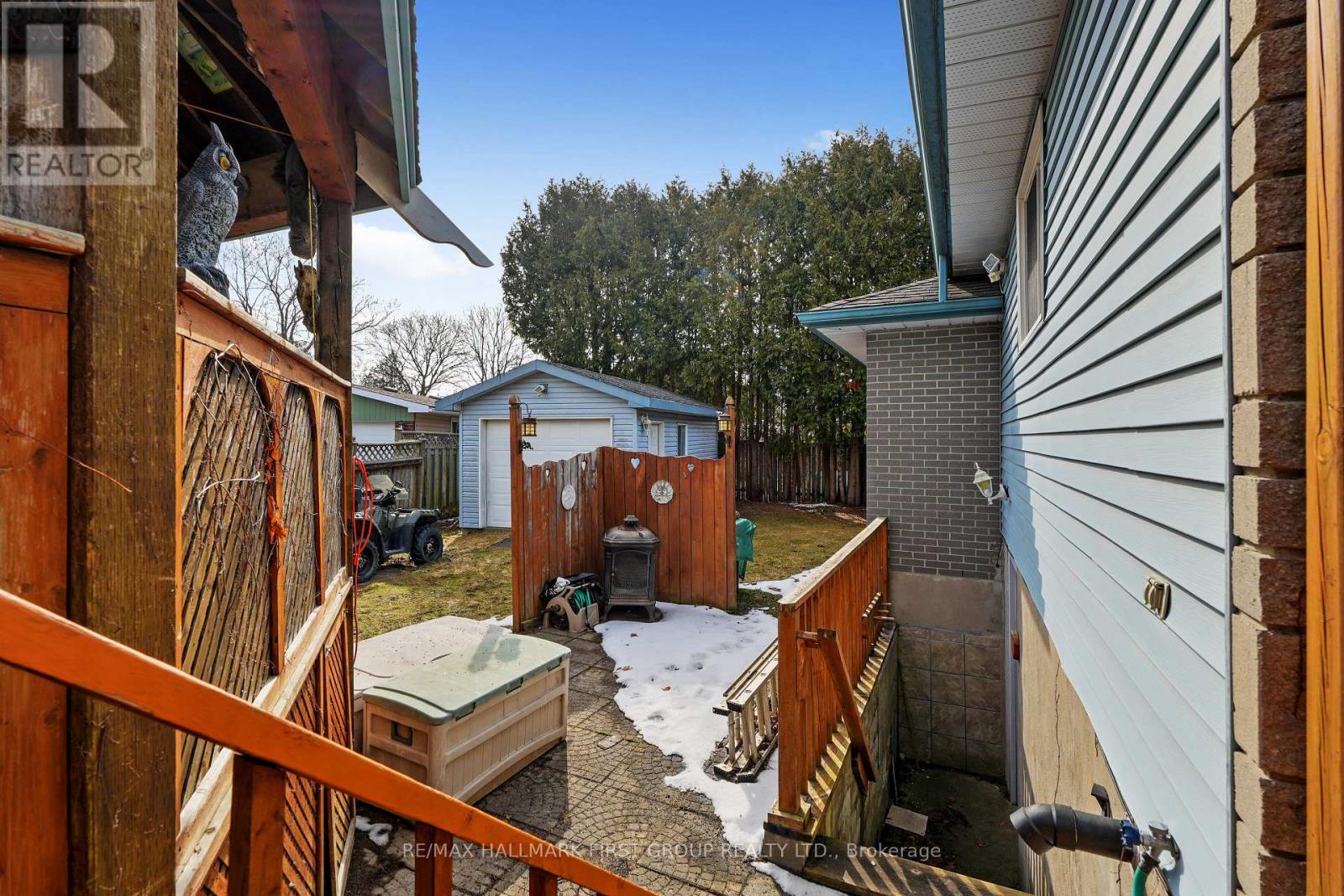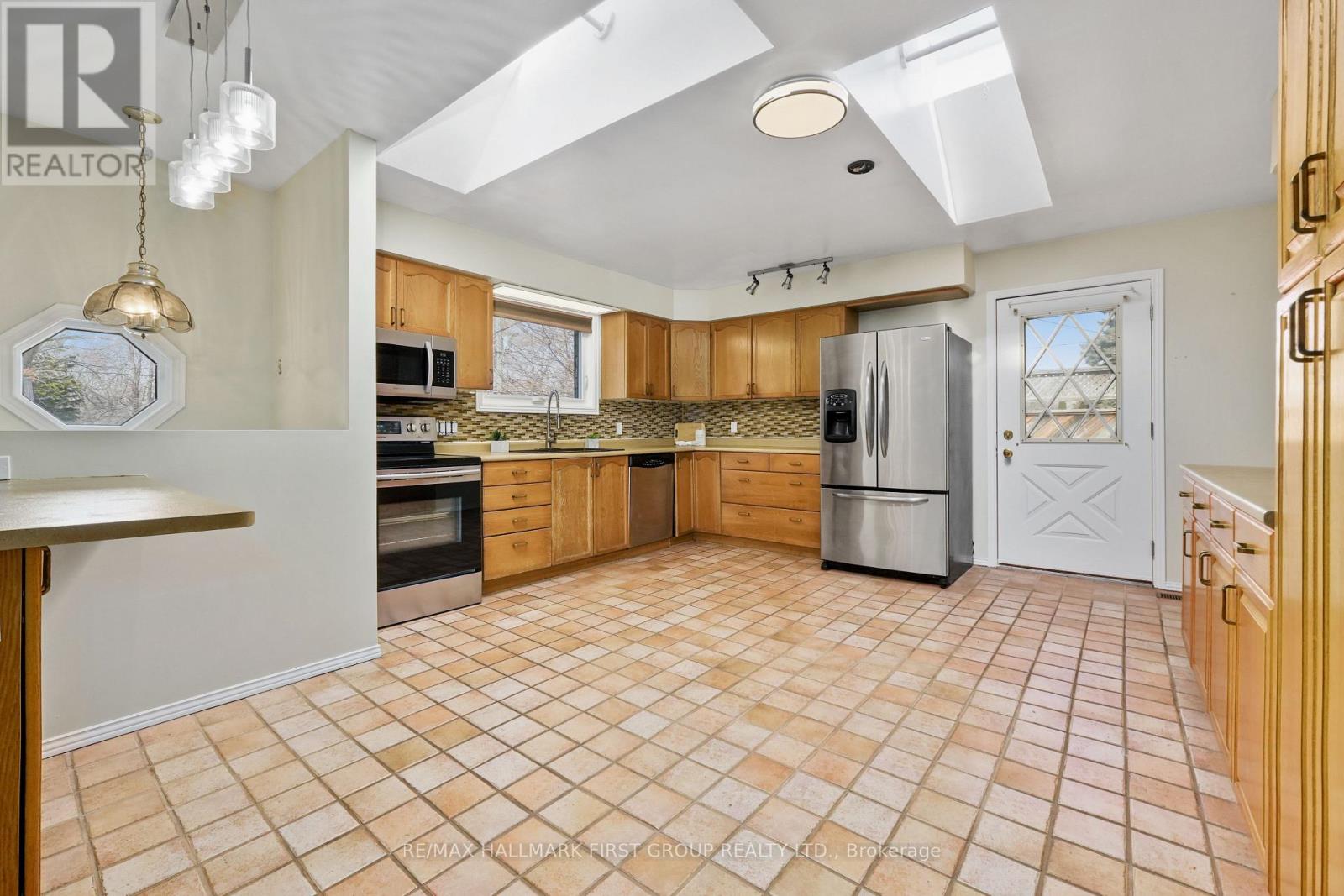 Set in a quiet, family-friendly community, this well-appointed home offers thoughtful living space on both levels, along with a separate entrance to the finished lower level. A large covered front porch creates the perfect setting for slow mornings with coffee and relaxed evenings. Inside, the living room is bright and inviting with a charming bay window, carpet-free flooring, and a gently arched entrance that adds architectural character. The dining room features classic wainscotting and flows seamlessly into the elevated kitchen. The kitchen is both spacious and full of natural light, highlighted by multiple skylights and a walkout that connects effortlessly to the outdoor living space. Stainless steel appliances, ample counter and cupboard space, and a breakfast bar with pendant lighting make it as functional as it is welcoming. The main floor includes a primary suite complete with a dressing area or office space, its own walkout, and a private ensuite bathroom. Two additional bedrooms and a full bathroom complete this level. Downstairs, the finished lower level is designed for entertaining and everyday living, featuring a rec room with warm wood trim, a full built-in bar, fireplace, and a separate media area. The laundry room offers extra storage. A guest bathroom with a shower enclosure completes the space. Outside, the fenced backyard provides privacy and room to enjoy, with a wide deck that wraps around to a covered wooden gazebo, a patio area, and a detached garage ideal for recreational gear and lawn equipment. Conveniently located near amenities and with easy access to the 401, this home offers comfort, space, and versatility for modern family living. (id:4555)