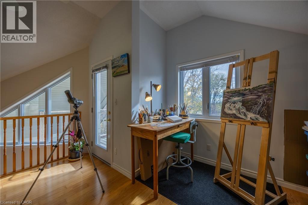 Charming country bungaloft, located between the friendly harbour town of Port Rowan and Long Point's sandy beaches. The bright open-concept main floor has solid oak flooring throughout the spacious living room, dining area and bedrooms. Numerous windows frame stunning sunrises, sunsets, and seasonal lake views. The large covered deck provides convenient outdoor living space. The well-designed kitchen makes meal preparation a breeze, either for quiet dinners or entertaining a crowd. The main floor primary bedroom has double closets and ensuite bath. The second main floor bedroom (currently an office) is beside a second bathroom. Laundry facilities are tucked away close to the kitchen. The airy loft, with its own balcony, is an adaptable space for wellness/creativity/business. Downstairs, part of the basement features a finished bedroom, bathroom, and hallway with access to the garage. The rest of the basement awaits your finishing touches, and includes an inviting hexagonal room with a cheerful Vermont Castings gas fireplace, adjoining workshop, furnace room, and cold cellar. The large attached double garage has lots of storage space. Outside is a tranquil green oasis with conifers, fruit trees, perennials and raised garden beds. A Generac generator provides peace of mind during power outages. Port Rowan offers many active living amenities: walking trails, water sports, tennis, and golfing. Services include a grocery store, primary school, pharmacy, restaurants, medical offices, and boutique shopping. Nearby are Long Point and Turkey Point Provincial Parks, marinas, breweries, wineries, world-class birding, and mountain biking trails. (id:4555)