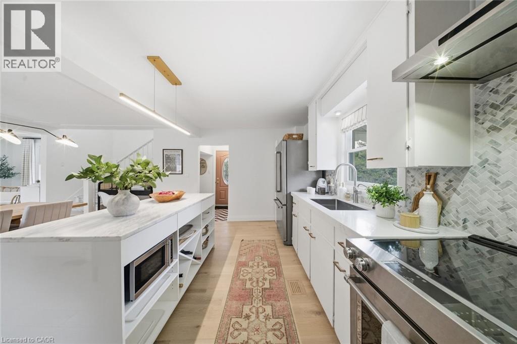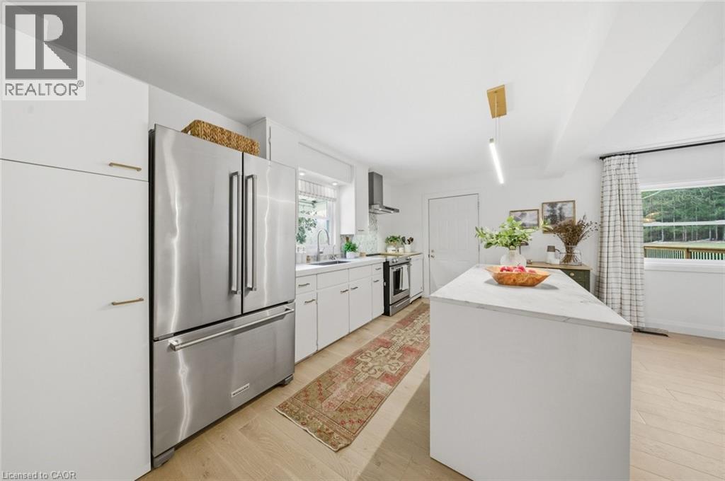 Welcome to this beautifully renovated move in ready, 3 bedroom, 1.5 bathrooms home situated on a 2 acre lot nestled in a picturesque ravine and wooded setting. This home offers the perfect combination of comfort, functionality and long term value ideal for families, professionals or anyone looking for a space and privacy. The interior has been thoughtfully renovated with quality finishes throughout including white oak flooring, natural stone in the foyer and bathrooms, high end appliances, plumbing fixtures and lighting throughout. The main floor offers a quaint foyer and powder room plus a bight and airy open concept kitchen, dining and family room, while upstairs boasts 3 bedrooms and a bathroom with a large glass shower complete with sleek black fixtures. The double car garage with automatic opener is a great addition to park in, for storage or a nice workshop. The driveway is large holding 10+ cars. A brand new stone walkway, flowers gardens and a new porch step along the front of the house shows great curb appeal while the back of the house has a large deck for entertaining and hosting family gatherings with the large backyard as a backdrop. The generous lot size offers peace and quiet on a day to day, perfect for enjoying the outdoors or cozying up inside. A rare opportunity to own a beautifully updated home offerings space, functionality and modern comfort - ready for you to move in and make it your own?” (id:4555)