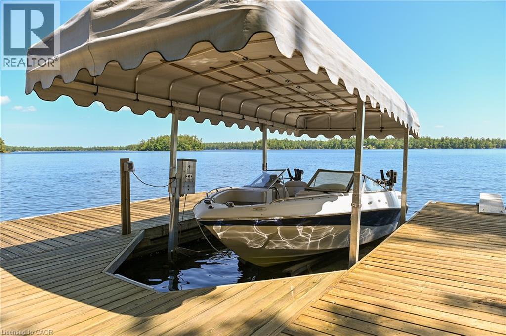 Remarkable Muskoka lakeside retreat on Six Mile Lake, on year-round municipal road, only 90 minutes from GTA. Impressive custom-build w/stunning lake views may be most prestigious property on “the mile.” Expansive 333ft of prime, deep waterfront, 1.66 acres w/mature trees & privacy, & absolute show-stopper 6000sqft, 6 bedrm lake house w/gorgeous pine detail T/O. Open-concept main lvl overlooks lake & accesses the 68x12 covered deck, includes the kitchen w/quartz CTs & 11ft centre island w/breakfast bar, great rm w/granite stone F/P & 22ft vaulted ceiling, spacious dining rm, main floor primary bedrm w/6pce ensuite, Muskoka rm, 2pce bath, & mudrm/laundry rm. 2nd lvl has a den/office, & 2 very large bedrms that could be converted to 4 if desired. Walk-out lower lvl offers a family rm w/granite stone F/P, bar area w/seating for 6, 3 more large bedrms, 8pce bath, & sliding doors to patio & lake. Red Pine & slate floors T/O, 10ft ceilings & in-floor heating on main & lower lvl, pine ceilings, & post & beam construction & ICF foundation, all display the care in this magnificent homes design. Exterior offers an oversized double garage w/600sqft man cave/loft w/heat & AC, triple garage w/2 insulated & heated, & another single garage at side of property, plus parking for 20 more on driveways. Clear & pristine waterfront 6-12ft deep off docks, + bonus shallow wading area at side. 1500sqft of decks & docks along water, including U-shaped boat slip engineered to support a boathouse, plus 1400sqft of covered deck & patio overlooking the water, & 450sqft of deck at back of home, totalling over 3350sqft of decking & patio. NE exposure at waterfront provides beautiful sunrises & sunsets. 280sqft bunkie at water’s edge. Systems include geothermal heating/cooling, drilled well w/complete water system, bio-filter septic system, on- demand water heater, & generator. Contact listing Realtor or any Realtor for floor plans, boathouse drawings, & for full write-up & details of property. (id:4555)