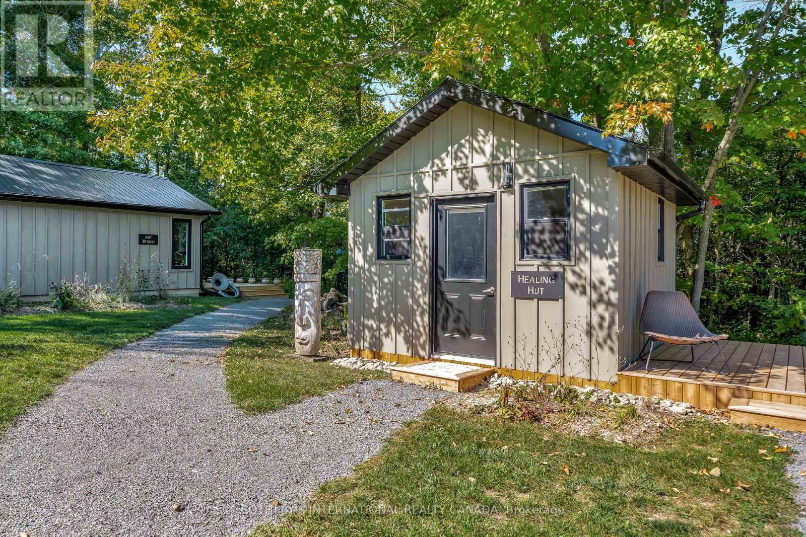 Emberlyn Forest is 33 Acres of Intention, art & off-Grid Living in Prince Edward County. It's more than a property, it's a living, breathing sanctuary designed for those who value creativity, sustainability, and a deep connection to nature. This unique off-grid retreat features two dwellings, a yoga/meditation studio, an art gallery, a barn, a greenhouse, and a peaceful pond, all thoughtfully constructed with conservation and sustainability in mind. The structures are designed to align with the land's natural energy and beauty. At the heart is a warm two-bedroom cabin, rich with character and history. Pine ceilings from the original homestead and a hand-built stone hearth, crafted from rocks gathered on the land-ground the space in timeless charm. Solar-powered and surrounded by forest, it offers quiet simplicity without sacrifice. The Lodge, a second dwelling with Scandinavian-inspired design, is ideal for guests, artist residencies, or personal retreat. Large windows frame serene woodland views, while clean lines and natural textures invite rest and reflection. A light-filled yoga/meditation studio creates space for breath, movement, and clarity. The art gallery brings Emberlyn Forest's creative spirit to life, a vibrant, immersive space for exhibitions, workshops, or expression. The barn and fenced pasture support farming, animal care, or flexible land use, while the greenhouse supports year-round growing. The on-site pond adds a quiet water element-perfect for reflection or nature watching. Whether you envision a multi-generational family compound or a guest retreat inspired by wellness and creativity, Emberlyn Forest is ready to support your vision. Private, soulful, and minutes from PEC wineries, beaches, and community, this is a rare opportunity to live with purpose-and in harmony with the land. (id:4555)