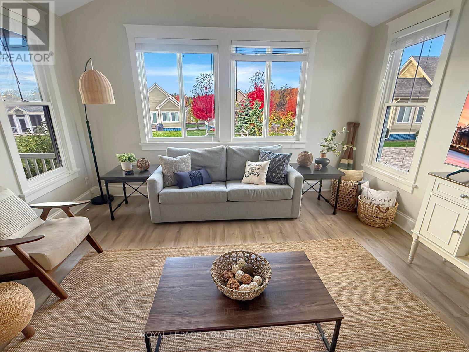 A Cottage with a View - and Sunsets You'll Never Forget! Welcome to 2 Butternut Lane, a charming Milford model bungalow offering one of the best combinations of layout and location at East Lake Shores-a seasonal, gated waterfront community on East Lake in Prince Edward County. This 2-bed, 2-bath cottage features a split-bedroom floor plan for privacy. The primary bedroom includes a 2-piece ensuite, while the 4-piece family bath serves the second bedroom.The open-concept kitchen, living, and dining area is tastefully decorated, with furnishings included so you can start enjoying cottage life right away. Step out to one of the largest screened-in porches in the resort-room for outdoor dining and lounging. Facing west toward East Lake, it's the perfect spot to enjoy spectacular sunsets or unwind after a day of play. The cottage also offers two-car private parking, a storage shed, and guest parking across the street. Ideally located near the family pool, basketball/pickleball court, playground, and dog park, it's a favourite area for families and guests alike.Owners enjoy 80 acres of park-like grounds and 1,500 ft of shoreline, with pools, courts, gym, dog park, trails, and shared canoes, kayaks, and paddleboards. Activities like yoga, aquafit, live music, line dancing, movie nights, and crafts create a fun, welcoming vibe. Do as much or as little as you like!Open April-October, East Lake Shores is minutes from Sandbanks Provincial Park, Picton, and The County's wineries and restaurants. It's a vacant-land condo where you own both the cottage and lot. Condo fees of $663.03 include TV, internet, water, sewer, grass cutting, common elements maintenance, snow removal, and amenities. With no STA licence required to rent, owners may join the on-site rental program or manage their own bookings. 2 Butternut Lane offers location, sunsets, and style-a turn-key County retreat ready to enjoy next season. (id:4555)