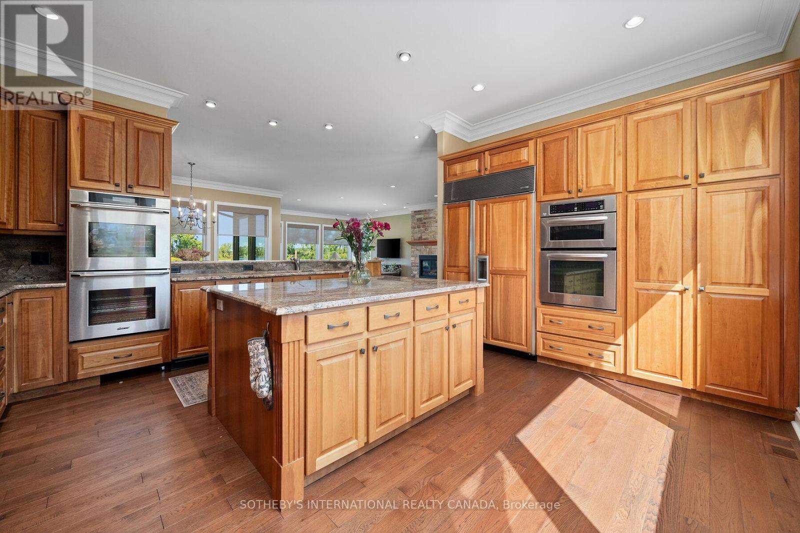 Willow Shore is an exceptional custom waterfront estate set along the coveted shores of the Bay of Quinte, offering over 4,000 sq. ft. of sophisticated living space on four acres of private, unspoiled grounds. Approached by a winding drive and masterful water views, the residence enjoys a peaceful shoreline setting and abundant wildlife & access to the Bay creating a rare sense of seclusion, yet a short drive to amenities. Designed with intention, the home embraces its surroundings, with the main level thoughtfully oriented to capture panoramic Bay vistas from every principal room. The chef's kitchen is both refined and functional, appointed with a Wolf gas cooktop, Sub-Zero refrigeration, built-in espresso station, wine fridge, natural stone, & solid wood cabinetry. Open and elegant, the living & dining areas unfold seamlessly, anchored by rich hardwood floors & commanding stone fireplace-ideal for both intimate gatherings and gracious entertaining. The primary suite offers a private retreat, featuring a five-piece ensuite, a generous walk-in closet, and direct access to the wrap-around deck overlooking the water. The lower level continues the home's elevated design with three additional bedrooms, a spacious family room, walk-out to a covered patio, and a thoughtfully integrated pet grooming room an inspired detail for discerning animal lovers. Outdoor living is equally compelling, with landscaped patios & walkways, and a striking four-season gazebo complete with a fully equipped kitchen, wood-burning fireplace and BBQ gas hook up. Designed for year-round enjoyment, this exceptional space invites alfresco entertaining while framing breathtaking sunset views across the Bay. Willow Shore is a rare expression of luxury, privacy, and natural beauty-equally suited as a distinguished year-round residence or an exclusive Country retreat. An extraordinary offering for those seeking waterfront living at its most refined. (id:4555)