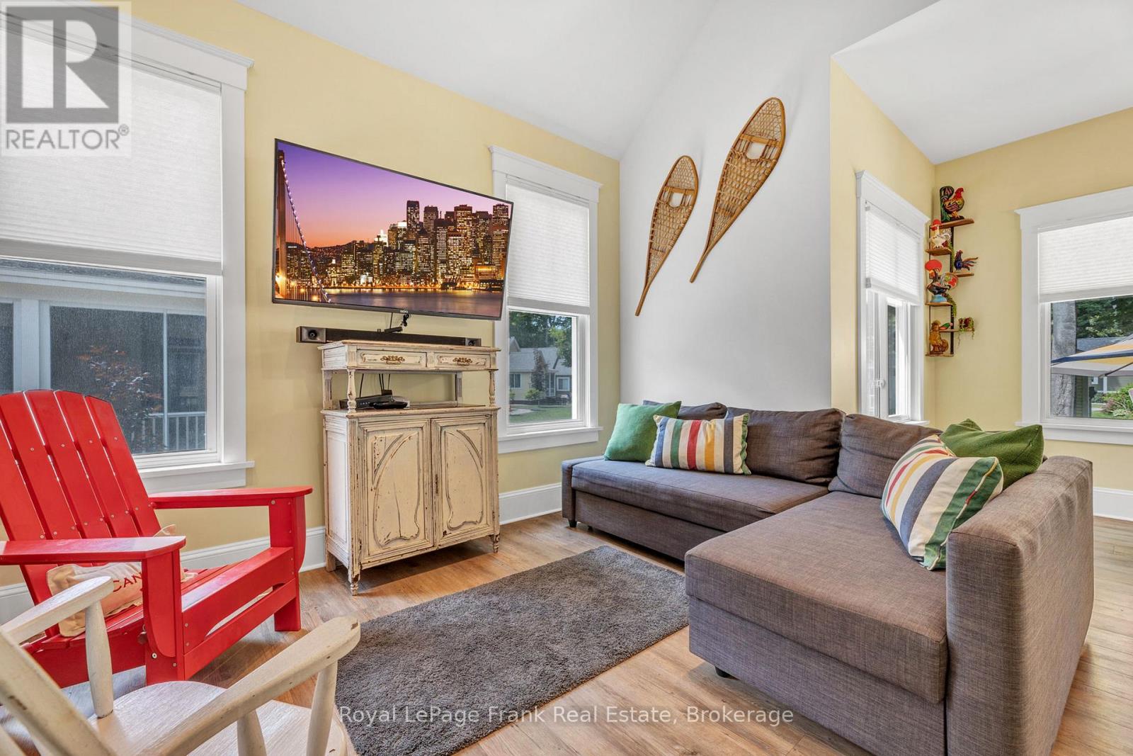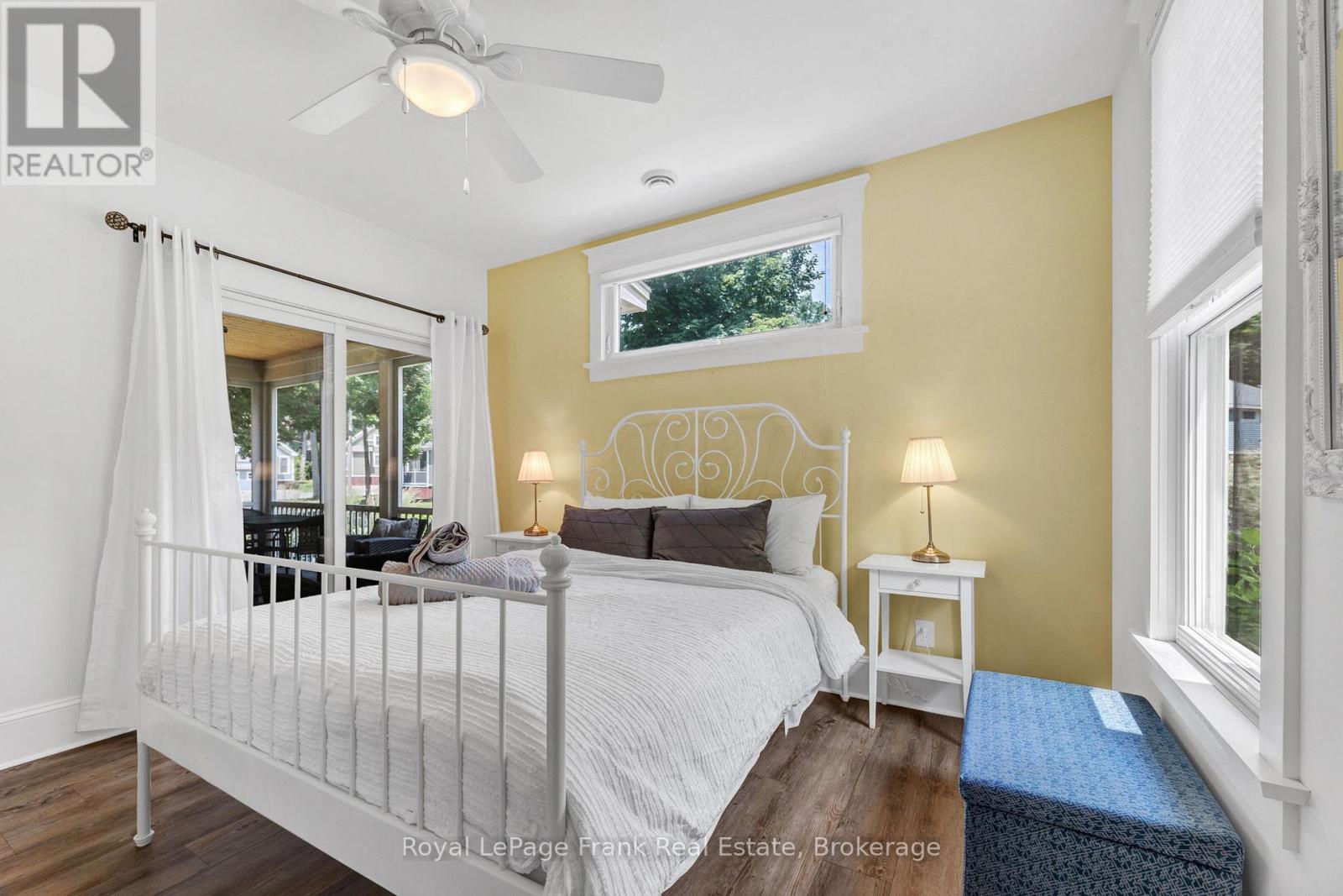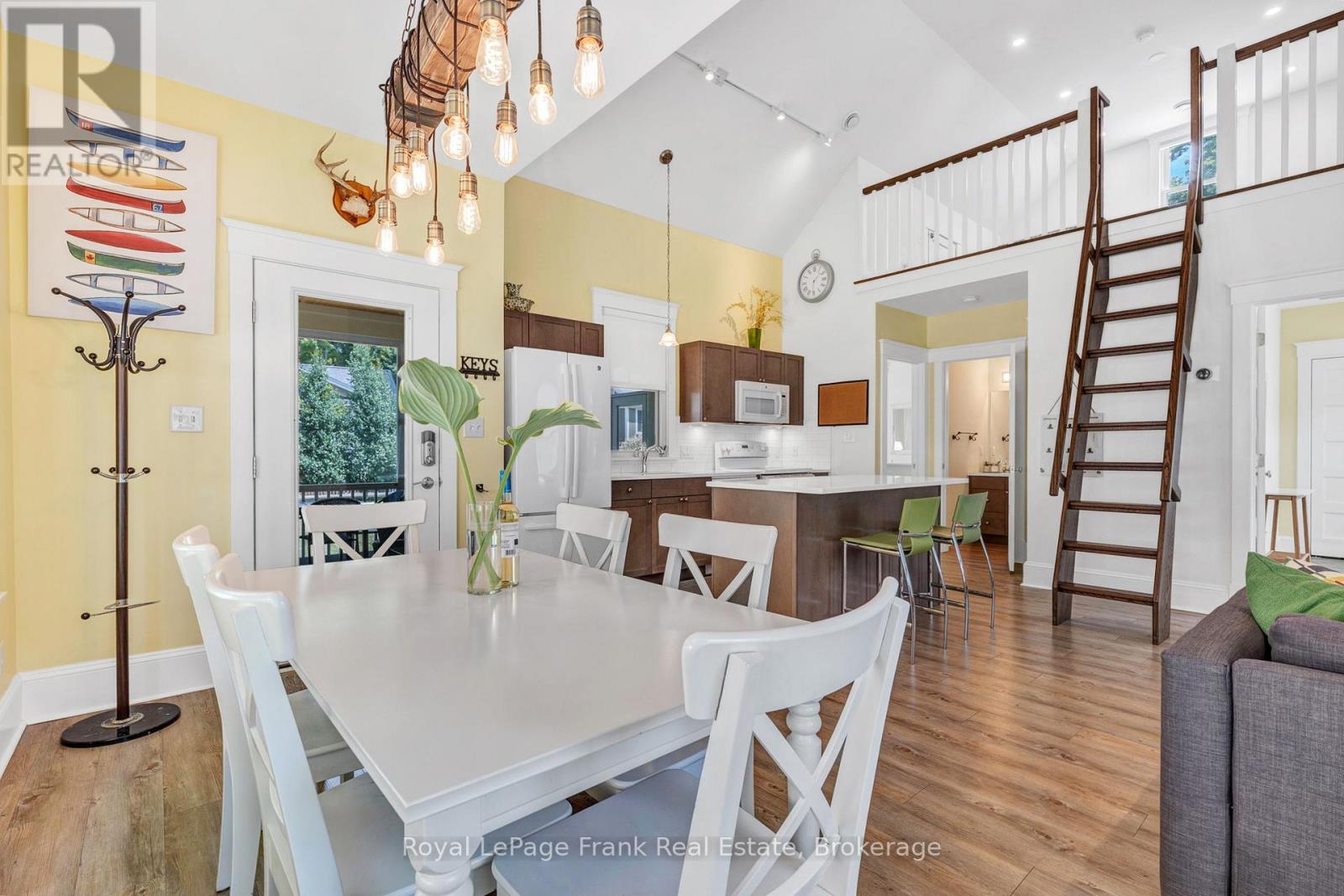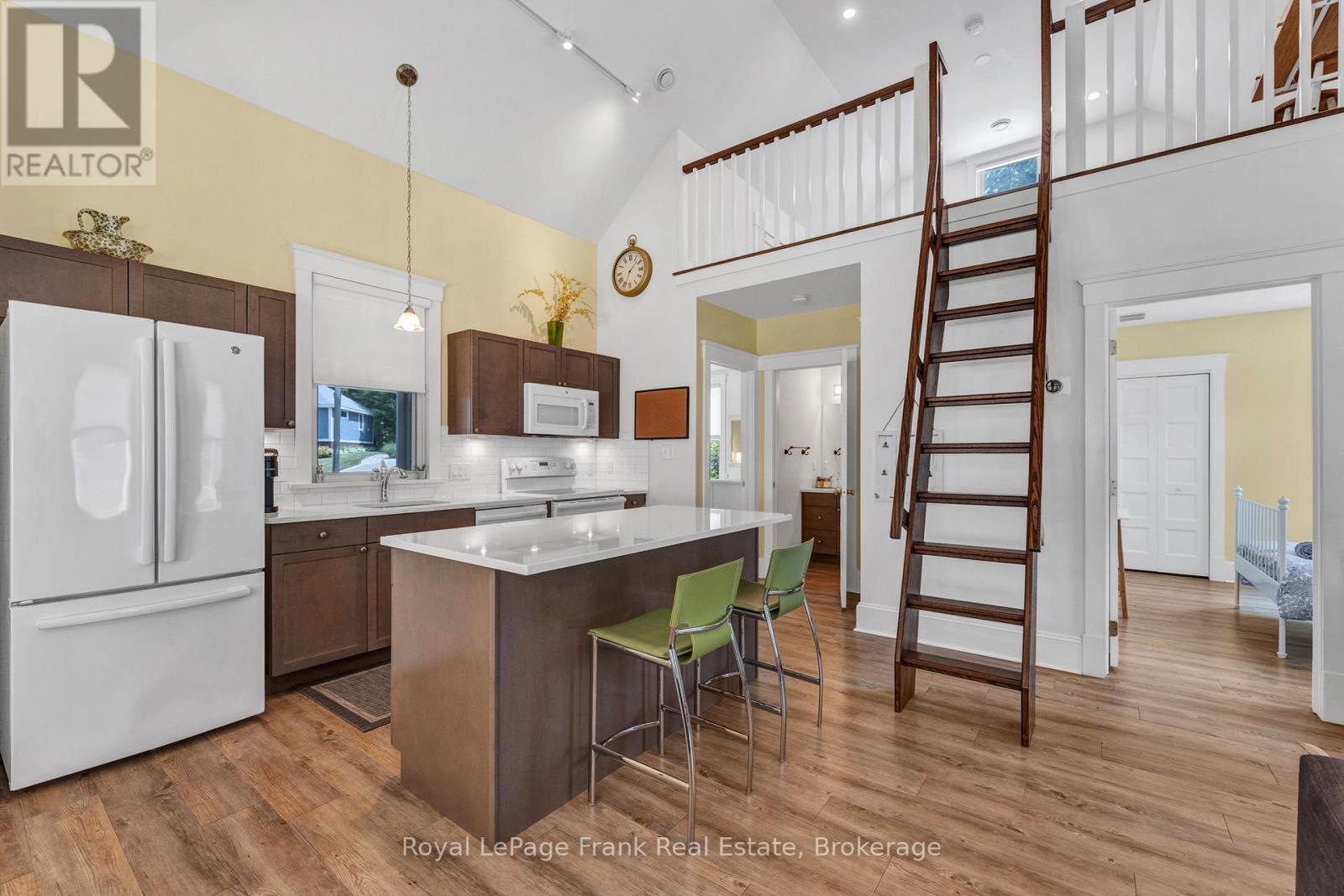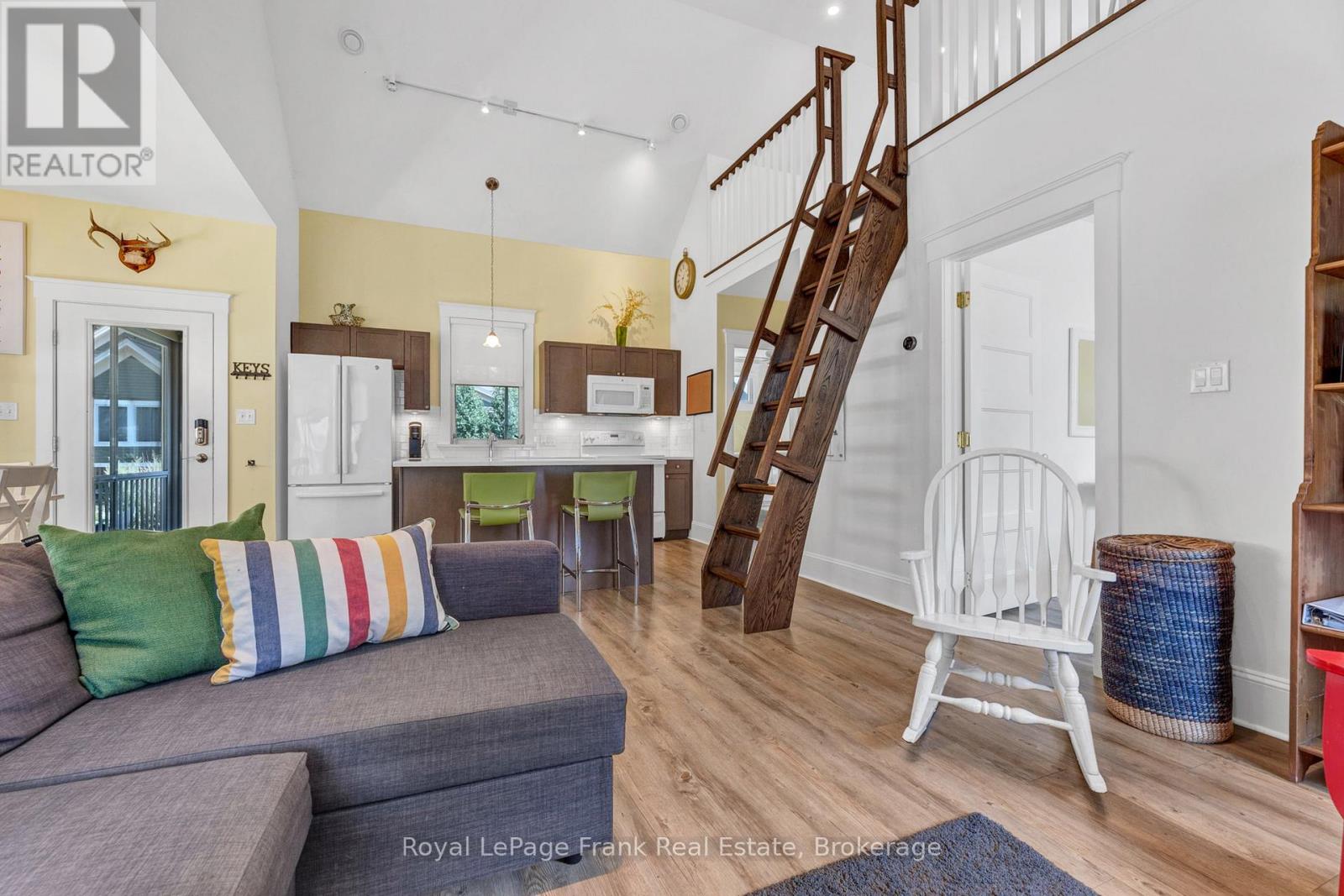 Welcome to 23 Hollow Lane, a beautifully upgraded Picton model bungaloft in the desirable Hollows area of East Lake Shores. One of the largest cottage models in the resort, this well-designed layout offers two bedrooms, two full bathrooms, and a versatile upper loft ideal for additional sleeping space or storage. Tastefully furnished and upgraded throughout, featuring central air conditioning, upgraded baseboards and backsplash, and durable, deluxe vinyl flooring with no carpet. A custom solid-wood ladder leads to the loft, where room-darkening blinds are ideal for night owls who like to sleep in. The main living areas feature Silhouette blinds that can be adjusted from the top or bottom for excellent privacy and light control. All major appliances are included, including fridge, stove, dishwasher, microwave, and washer/dryer. One of the largest screened porches at East Lake Shores features low-maintenance composite decking and a walkout from the primary bedroom. The landscaped yard includes a sizable patio, ideal for relaxing after a day at the lake. A newer storage shed with electricity and lighting provides space for bikes and beach gear, and the property is equipped with an EV charger. Set on an extra-wide lot overlooking a park area with community firepits, the cottage enjoys more outdoor space than typically found. Centrally located within the resort, it's an easy walk to family amenities, including the pool, playground, basketball, tennis, and bocce courts, as well as the waterfront amenities such as the beach, adult pool, gym, Owner's Lodge, and lakeside docks for swimming, fishing, and sunset viewing. A nearby boathouse offers shared use of canoes, kayaks, and paddleboards. East Lake Shores allows flexible ownership-use the cottage as often as you like or rent it seasonally to help offset costs. Minutes from Picton, wineries, restaurants, and beaches, this is a low-maintenance way to enjoy Prince Edward County cottage life. (id:4555)