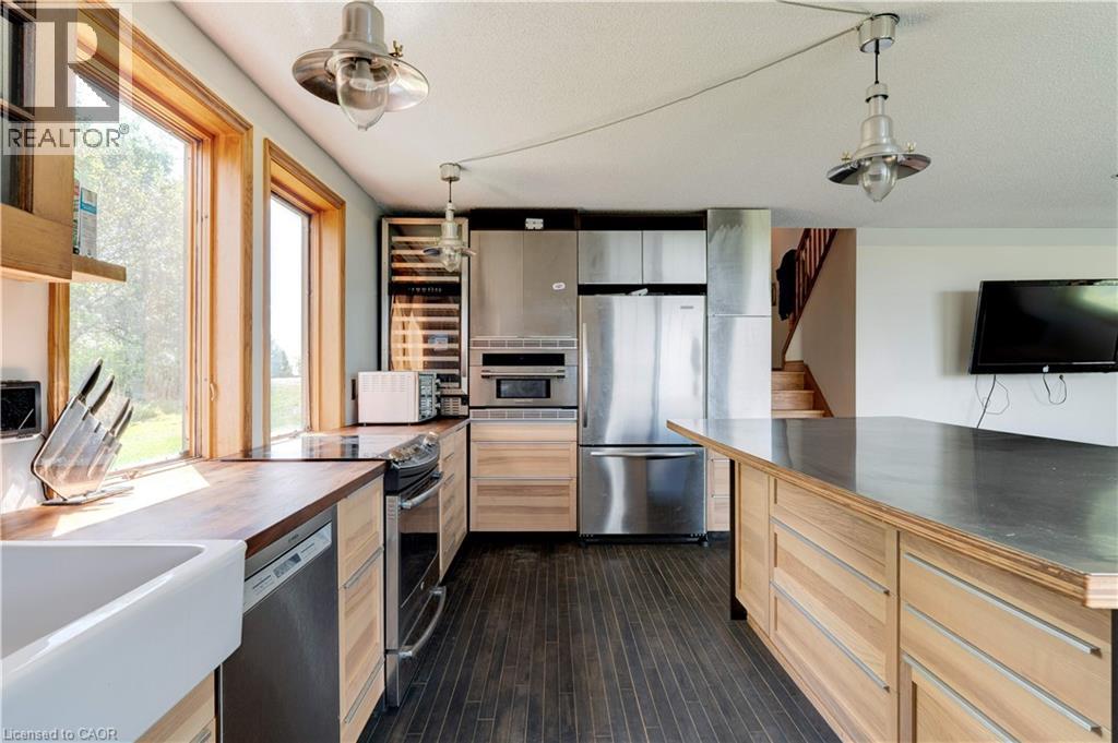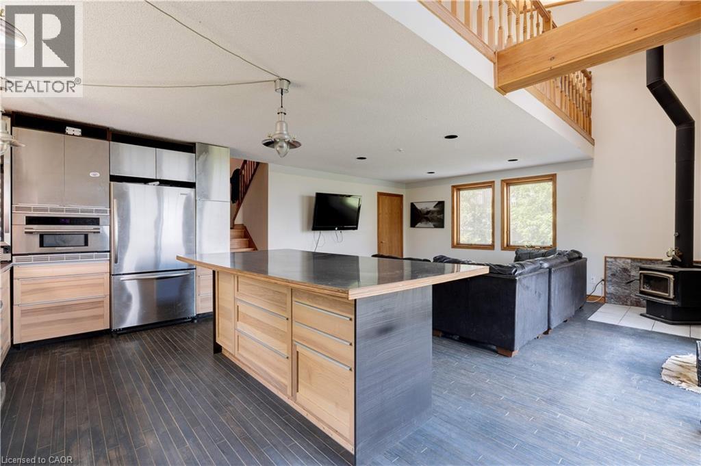 UNINTERRUPTED WATER VIEWS AWAIT YOU! Nestled atop one of the highest points in Puslinch and just minutes from the charming Campbellville equestrian community, this unique opportunity invites you to either build your dream home (initial drawings and survey available) or reimagine the existing structure on a generous 1-acre lot (225 x 194 feet). Experience a beautiful nature sanctuary with stunning views of Mountsberg Reservoir, which spans 472 acres outside your door. Each morning, wake up to vibrant sunrises illuminating your backyard. The recently constructed garage measures 24x28 ft and is fully insulated, featuring three layers of high-density foam beneath engineered wood siding. It is framed with sturdy 2x6 lumber, topped with a durable steel roof, and equipped with a 100 Amp electrical panel and an EV charger. With buried water and sewer lines running to the garage foundation, the upper level can easily be transformed into a workshop or studio apartment, enhancing the investment! This incredible setting isn’t just a building lot; it’s also the perfect starter home for those dreaming of a country lifestyle that could become your family retreat. Currently, the property boasts a loft bungalow with an abundance of windows, a spacious great room, a luxurious kitchen ready for culinary adventures, and sleeping quarters with both a main floor bedroom and a whimsical loft bedroom. There’s also a wood stove, heat pumps, and AC. You'll also love the charming cordwood garden shed. Conveniently located close to Highway 401, commuting to Guelph, Burlington, Hamilton, and the GTA is easy. Experiences awaits nearby, including a boat launch where you can fish or paddle in your kayak or non-motorized boats. Additionally, you'll discover a variety of beautiful hiking trails and excellent fishing opportunities in the area, all surrounded by breathtaking scenery. Start planning your visit and be first in line for your new lifestyle and investment today! (id:4555)