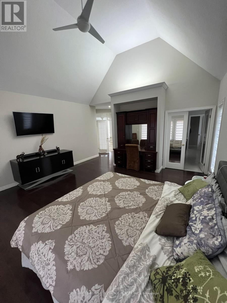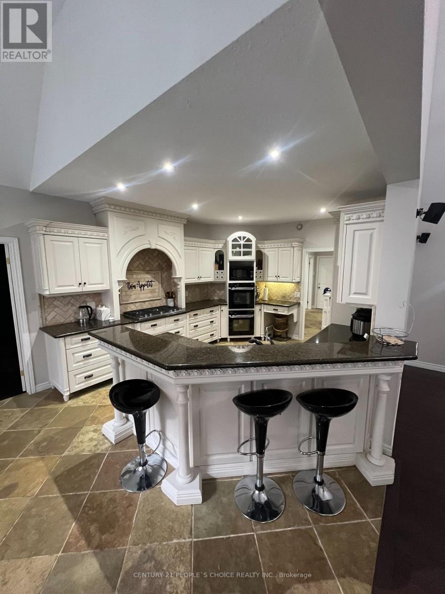 Located in the prestigious Fox Run neighborhood, just south of Guelph and minutes from Highway 401, this stunning home offers 5,579 sq. ft. of elegant living space. The grand driveway and flagstone walkway lead past a wrought-iron gate and stone archway to the backyard, complete with a double and single car garage. Inside, the foyer impresses with 11-foot ceilings and slate flooring, opening to the living and dining areas. The main living room features 23-foot cathedral ceilings and a dramatic stone fireplace. The gourmet kitchen boasts granite countertops, custom maple cabinetry, two refrigerators, and a breakfast bar-perfect for cooking and entertaining. The primary suite offers soaring ceilings, a walk-in closet, and a spa-inspired ensuite. The basement is an entertainer's dream with a custom bar, wine cellar, recreation room, bedroom, full bath, and exercise room. Nearly 1,000 sq. ft. of unfinished space provides flexibility for future projects. Optional Rental: The upper portion of the home can be rented separately for $4,000/month, offering flexibility and convenience. (id:4555)