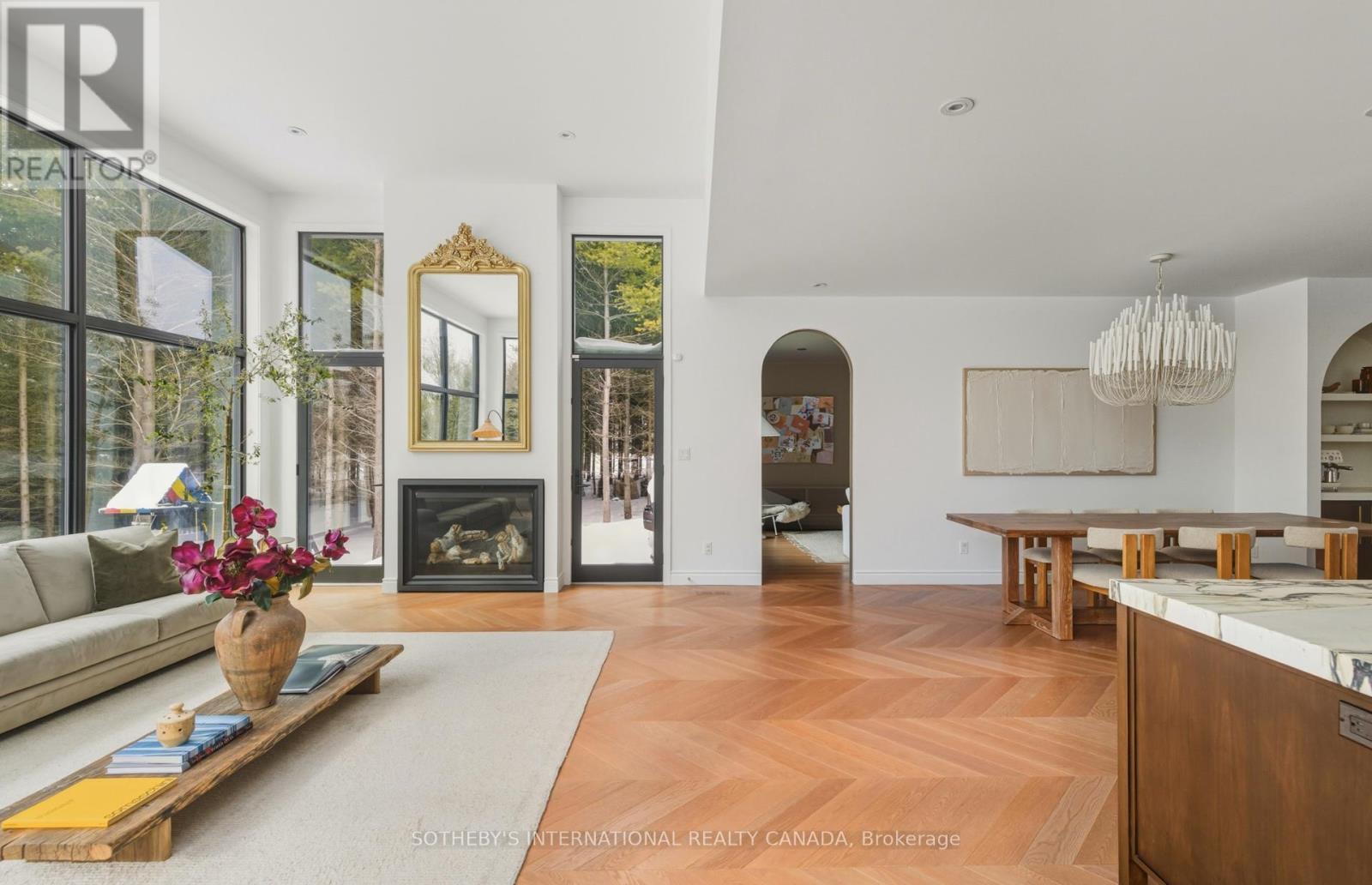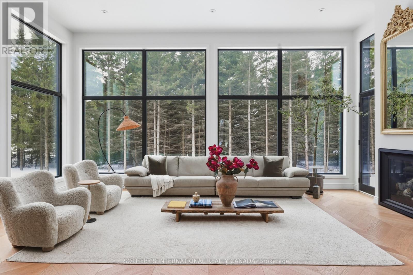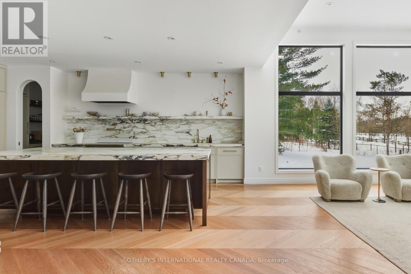 Custom built and masterfully designed, welcome to 4640 Nassagaweya-Puslinch Townline, a beautiful bungalow offering over 3,200 sq. ft. of elevated living space, ideally positioned to provide the tranquility of country living while remaining just minutes from Guelph & less than one hour from Toronto. Hardwood flooring laid in a striking chevron pattern sets the tone, while a dramatic 12-foot ceiling feature in combination with floor-to-ceiling windows at the rear of the home fills the space with natural light. Designer lighting, custom archways, & extensive millwork further establish a strong architectural presence throughout. At the heart of the home, the kitchen is where art & beauty meet function. Graced with a La Cornue induction range & complimented by marble surfaces and brass fixtures, the kitchen & well appointed pantry offer endless enjoyment for entertaining & cooking, along with ample storage. The impressive 12' x 6' island anchors the room, while Integrated Dacor 30" column side by side fridge & freezer maintains the kitchen's seamless aesthetic, while a secondary dishwasher tucked within the walk-in pantry enhances efficiency. A custom bar & coffee area featuring an integrated bar fridge & open shelving adds a layer of sophistication, thoughtfully designed for effortless entertaining. The primary suite delivers a true retreat, highlighted by a Jøtul fireplace & a spa-inspired ensuite featuring a freestanding tub, glass steam shower w/ dual rain heads, Toto Washlet, & porcelain finishes. The 2nd bedroom offers flexible space as an office or playroom, while the 3rd and 4th bedrooms are connected by a beautiful ensuite washroom with a separate shower room, and featuring closets w/built in storage. Main floor laundry with a dog wash station offers convenience off the garage & mudroom, while a separate entrance to the basement via the garage ideally positions this home for future development to suit evolving needs. Welcome home! (id:4555)