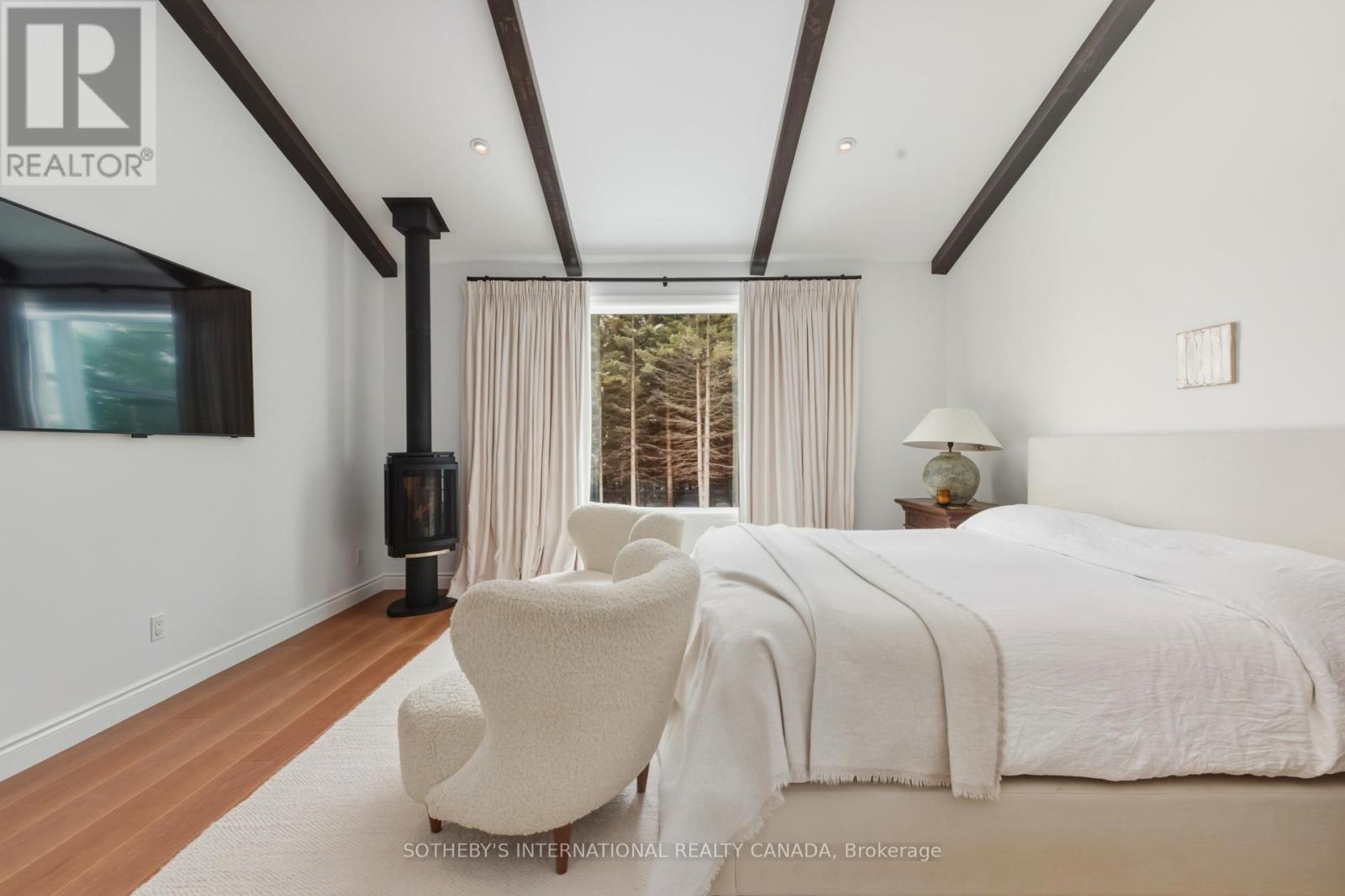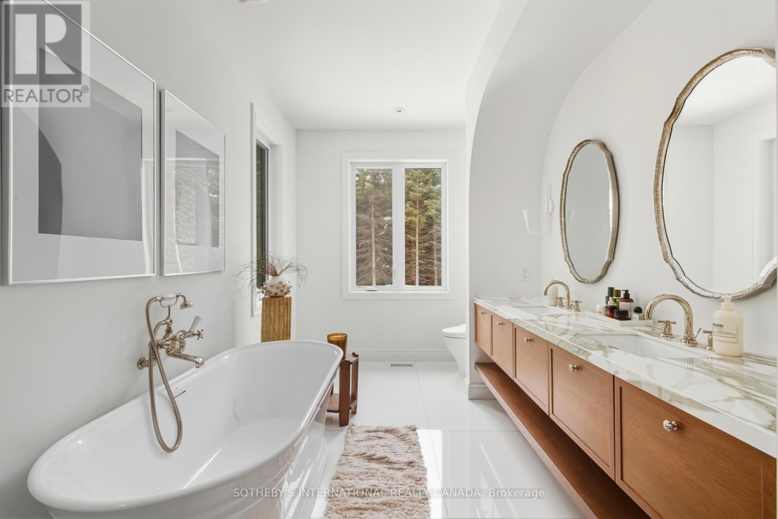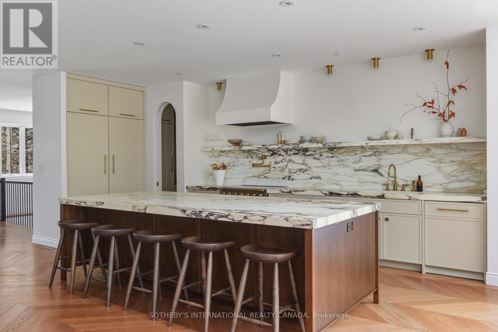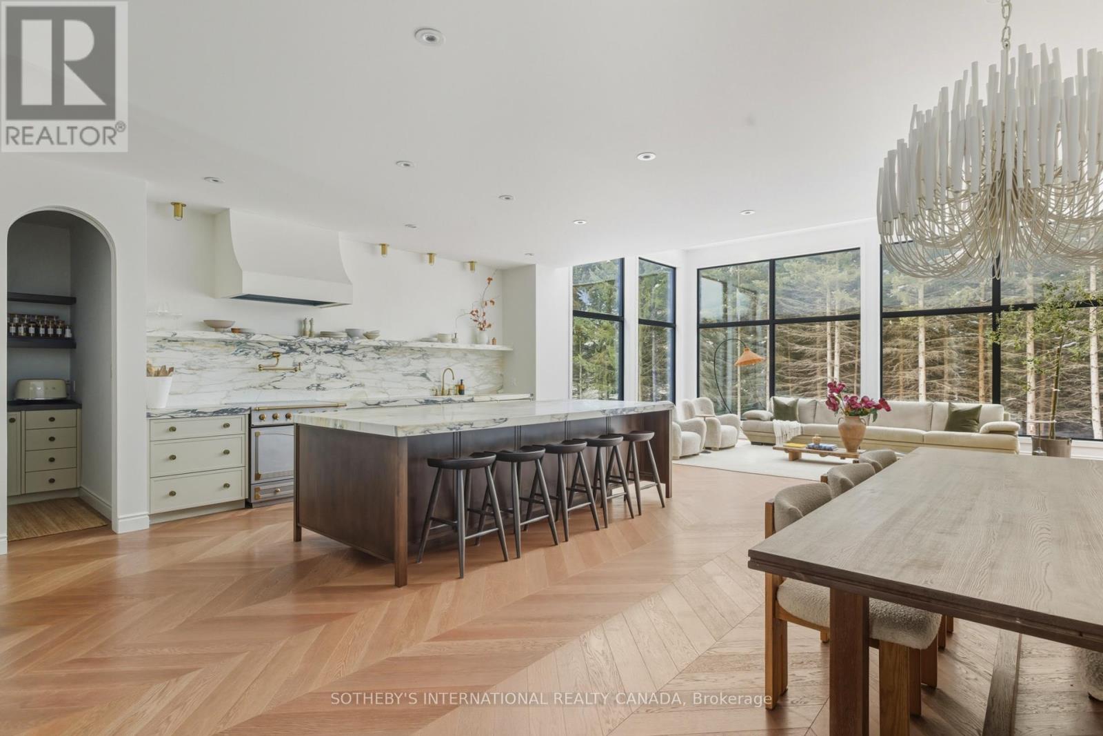 Custom built and masterfully designed, welcome to 4640 Nassagaweya-Puslinch Townline, a beautiful bungalow offering over 3,200 sq. ft. of elevated living space, ideally positioned to provide the tranquility of country living while remaining just minutes from Guelph & less than one hour from Toronto. Hardwood flooring laid in a striking chevron pattern sets the tone, while a dramatic 12-foot ceiling feature in combination with floor-to-ceiling windows at the rear of the home fills the space with natural light. Designer lighting, custom archways, & extensive millwork further establish a strong architectural presence throughout. At the heart of the home, the kitchen is where art & beauty meet function. Graced with a La Cornue induction range & complimented by marble surfaces and brass fixtures, the kitchen & well appointed pantry offer endless enjoyment for entertaining & cooking, along with ample storage. The impressive 12' x 6' island anchors the room, while Integrated Dacor 30" column side by side fridge & freezer maintains the kitchen's seamless aesthetic, while a secondary dishwasher tucked within the walk-in pantry enhances efficiency. A custom bar & coffee area featuring an integrated bar fridge & open shelving adds a layer of sophistication, thoughtfully designed for effortless entertaining. The primary suite delivers a true retreat, highlighted by a Jøtul fireplace & a spa-inspired ensuite featuring a freestanding tub, glass steam shower w/ dual rain heads, Toto Washlet, & porcelain finishes. The 2nd bedroom offers flexible space as an office or playroom, while the 3rd and 4th bedrooms are connected by a beautiful ensuite washroom with a separate shower room, and featuring closets w/built in storage. Main floor laundry with a dog wash station offers convenience off the garage & mudroom, while a separate entrance to the basement via the garage ideally positions this home for future development to suit evolving needs. Welcome home! (id:4555)