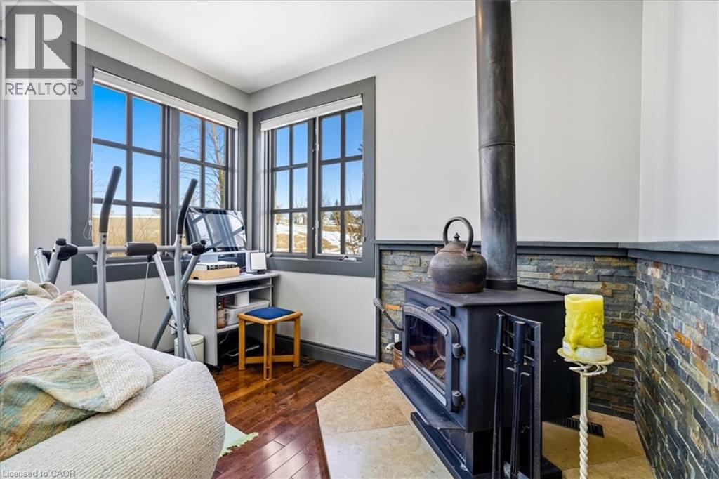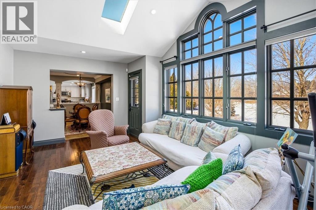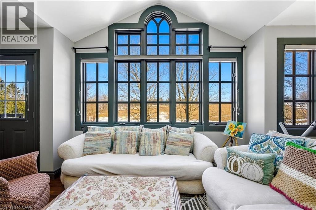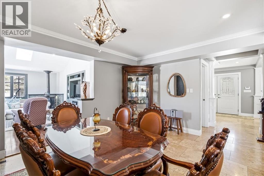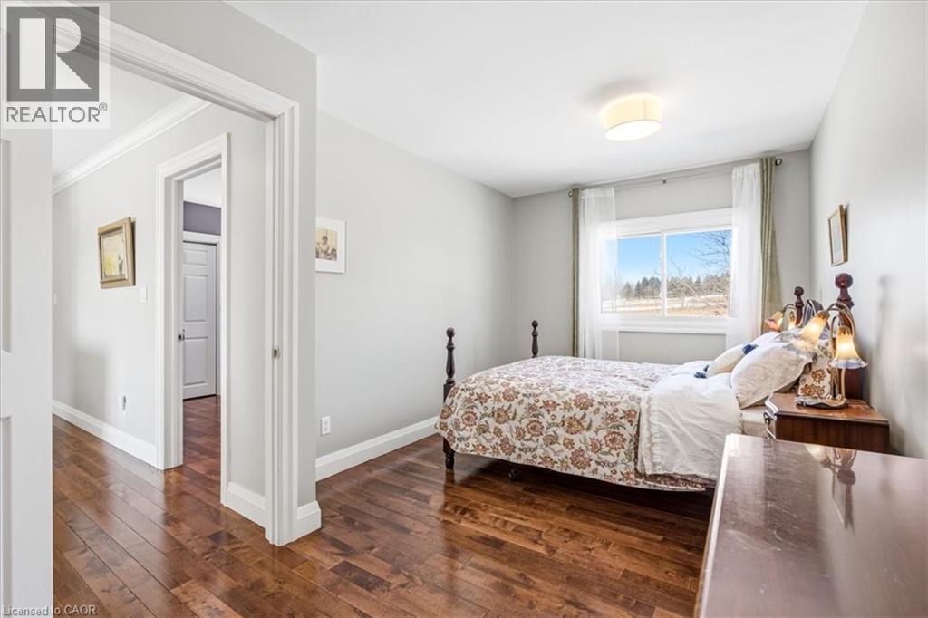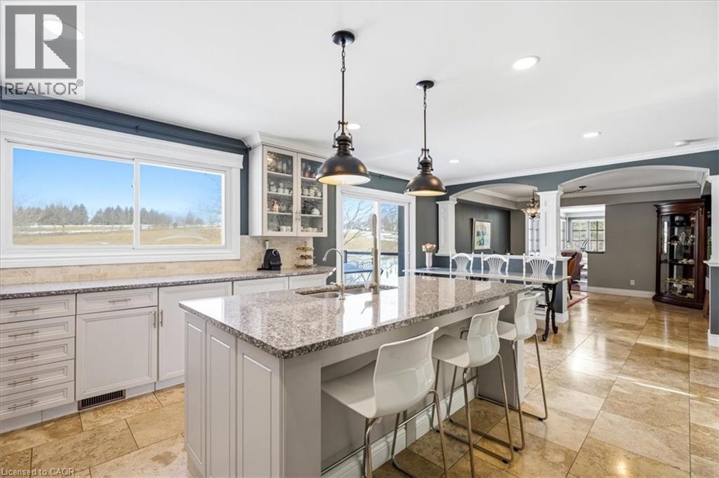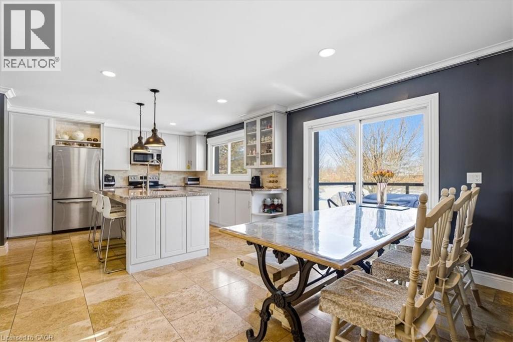 Gorgeous scenic 8.76-acre country retreat just 5–10 minutes to Hwy 401/403 and only 20 minutes to Burlington, Hamilton, Cambridge, and Guelph. This beautifully updated and meticulously maintained 2-storey, double-garage home offers 3+2 bedrooms, 4 baths, and a fully finished basement, blending peaceful country living with excellent commuter convenience. Agricultural and farm zoning. Set on rolling hills beside the Lafarge Trail—perfect for biking and hiking, enjoy stunning views from the gourmet kitchen with granite countertops, large island, s/s appliances, breakfast area and walkout to a spacious deck. Features include a renovated primary ensuite with walk-in closet, sun-filled family room with skylight, large windows and wood fire stove, hardwood and marble floorings throughout main and 2nd level, cozy living room with garden views, and a fully finished basement with in-law suite setup and potential for a separate entrance. Professionally landscaped front and backyard, plus a garage electrical panel ideal for EV charging. Updates include roof, New energy-efficient heat pump system providing both heating and cooling, with 10 years remaining on the warranty. Enjoy impressively low whole-home utility costs including heating and cooling—averaging about $200 per month throughout the year., 200-amp service, well pump, water softener, and two-tank drinking water system. A rare move-in-ready country gem in a prime location! (id:4555)
