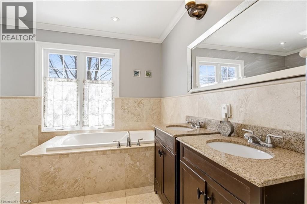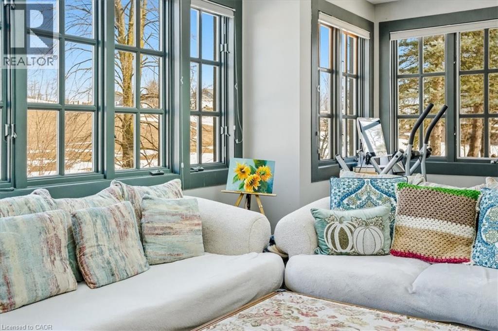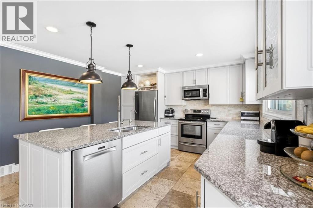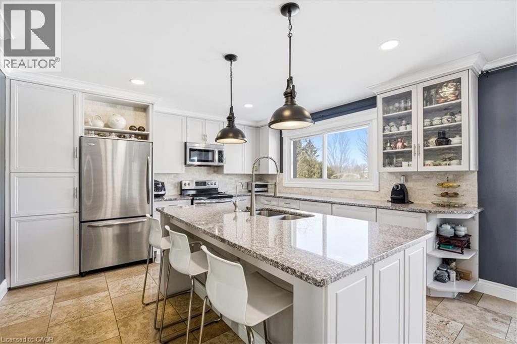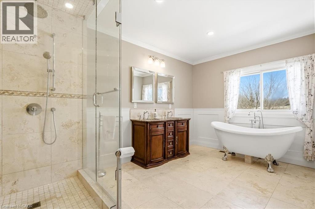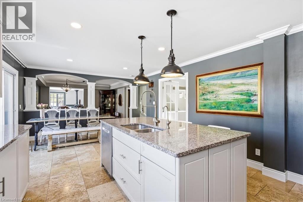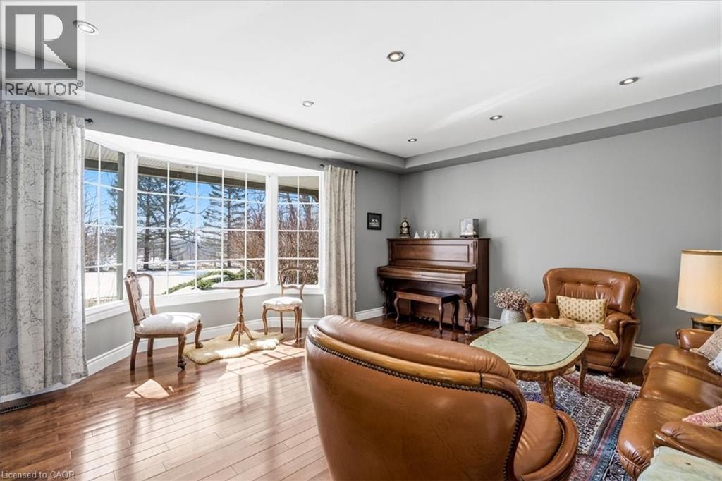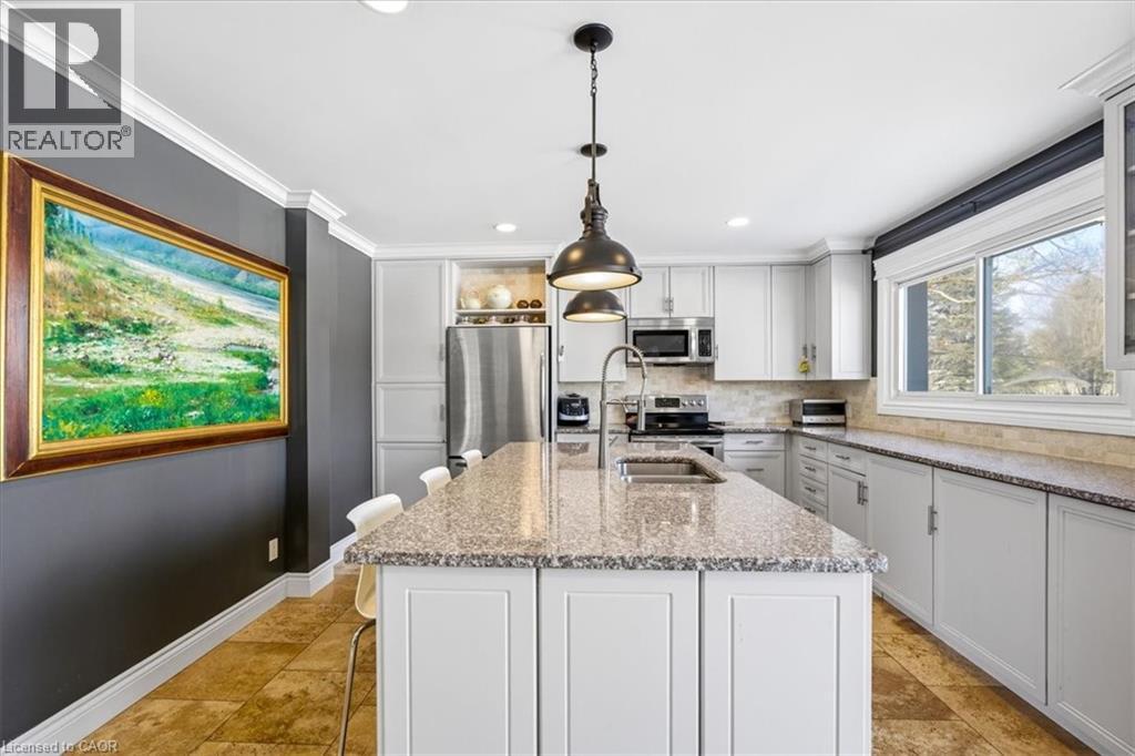 Gorgeous scenic 8.76-acre country retreat just 5–10 minutes to Hwy 401/403 and only 20 minutes to Burlington, Hamilton, Cambridge, and Guelph. This beautifully updated and meticulously maintained 2-storey, double-garage home offers 3+2 bedrooms, 4 baths, and a fully finished basement, blending peaceful country living with excellent commuter convenience. Agricultural and farm zoning. Set on rolling hills beside the Lafarge Trail—perfect for biking and hiking, enjoy stunning views from the gourmet kitchen with granite countertops, large island, s/s appliances, breakfast area and walkout to a spacious deck. Features include a renovated primary ensuite with walk-in closet, sun-filled family room with skylight, large windows and wood fire stove, hardwood and marble floorings throughout main and 2nd level, cozy living room with garden views, and a fully finished basement with in-law suite setup and potential for a separate entrance. Professionally landscaped front and backyard, plus a garage electrical panel ideal for EV charging. Updates include roof, New energy-efficient heat pump system providing both heating and cooling, with 10 years remaining on the warranty. Enjoy impressively low whole-home utility costs including heating and cooling—averaging about $200 per month throughout the year., 200-amp service, well pump, water softener, and two-tank drinking water system. A rare move-in-ready country gem in a prime location! (id:4555)