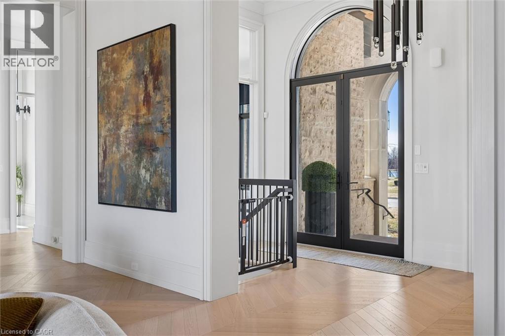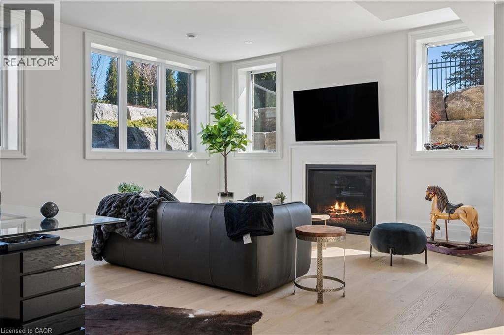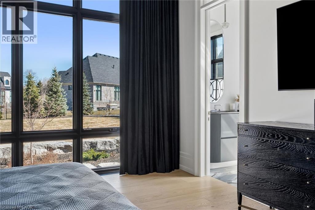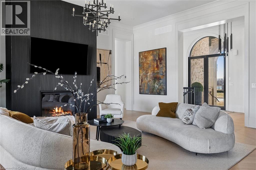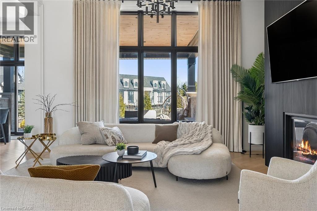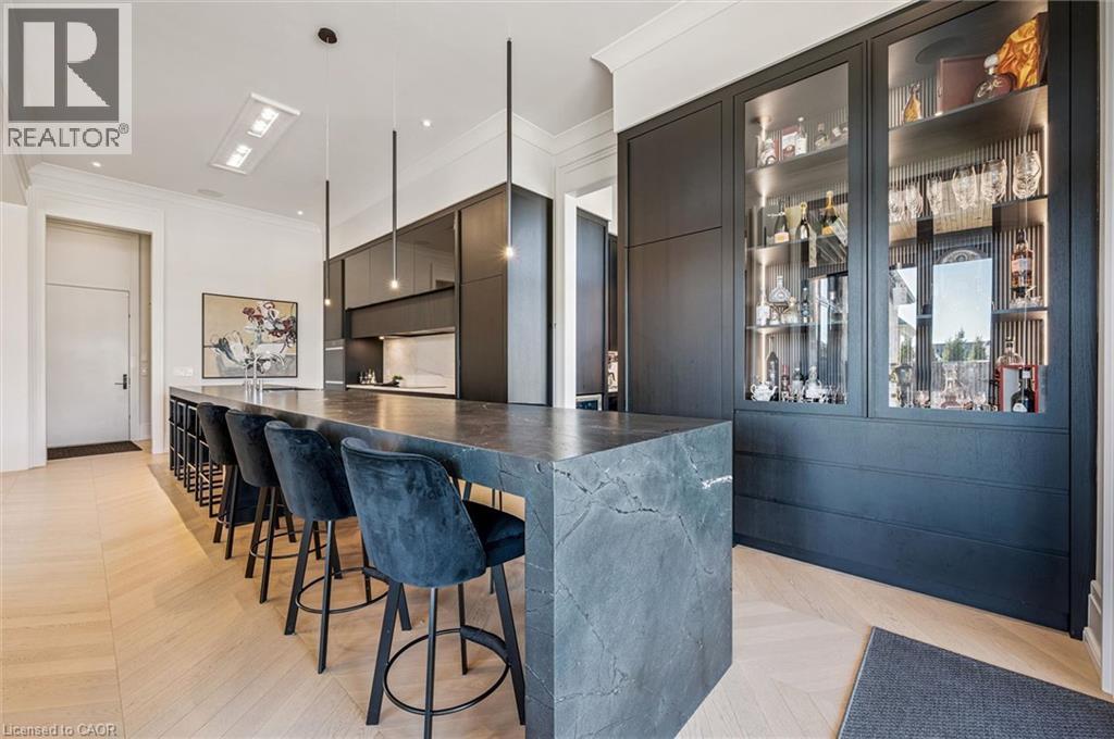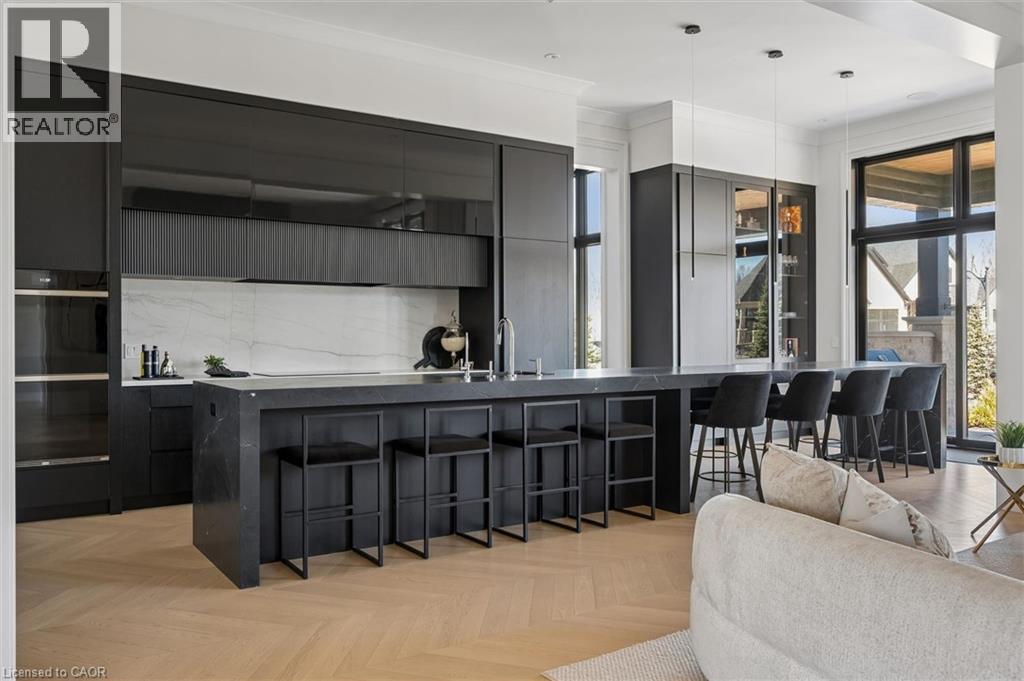 Set within the exclusive gated community of Heritage Lake Estates, this extraordinary custom-built natural stone bungalow offers refined luxury on a private half-acre lot just steps from the lake. Perfectly positioned only minutes from Highway 401 and close to schools and amenities, this home delivers both privacy and exceptional convenience. From the moment you enter, the home impresses with 12-foot ceilings, striking chevron hardwood flooring, dramatic custom lighting, and a stunning fireplace feature wall. Expansive floor-to-ceiling windows flood the home with natural light, creating an atmosphere that is both sophisticated and welcoming. With over 4,200 square feet of impeccably designed living space, the home offers 4 spacious bedrooms and 5 luxurious bathrooms, along with heated floors and premium finishes throughout. At the heart of the home is a show-stopping chef’s kitchen designed for grand entertaining, featuring built-in appliances, a walk-in pantry, and an impressive 20-foot granite island with seating for up to 15 guests. The private primary retreat offers a serene escape with a spa-inspired luxury ensuite and a custom walk-in closet with built-in cabinetry. The fully finished lower level continues the home’s exceptional design with nearly 10-foot ceilings, oversized windows, radiant heated hardwood floors, and a cozy gas fireplace, creating the perfect space for entertaining, relaxing, or hosting guests. Outdoors, enjoy the beautifully landscaped grounds, complete with irrigation, an oversized covered patio for year-round outdoor living, and an expansive three-car garage with additional driveway parking for 6–8 vehicles. Net-zero ready and fully smart-wired with fibre optics and natural gas, this forward-thinking home blends timeless craftsmanship with modern technology. A rare offering where architectural elegance, thoughtful design, and premium craftsmanship come together to create a truly exceptional home. (id:4555)
