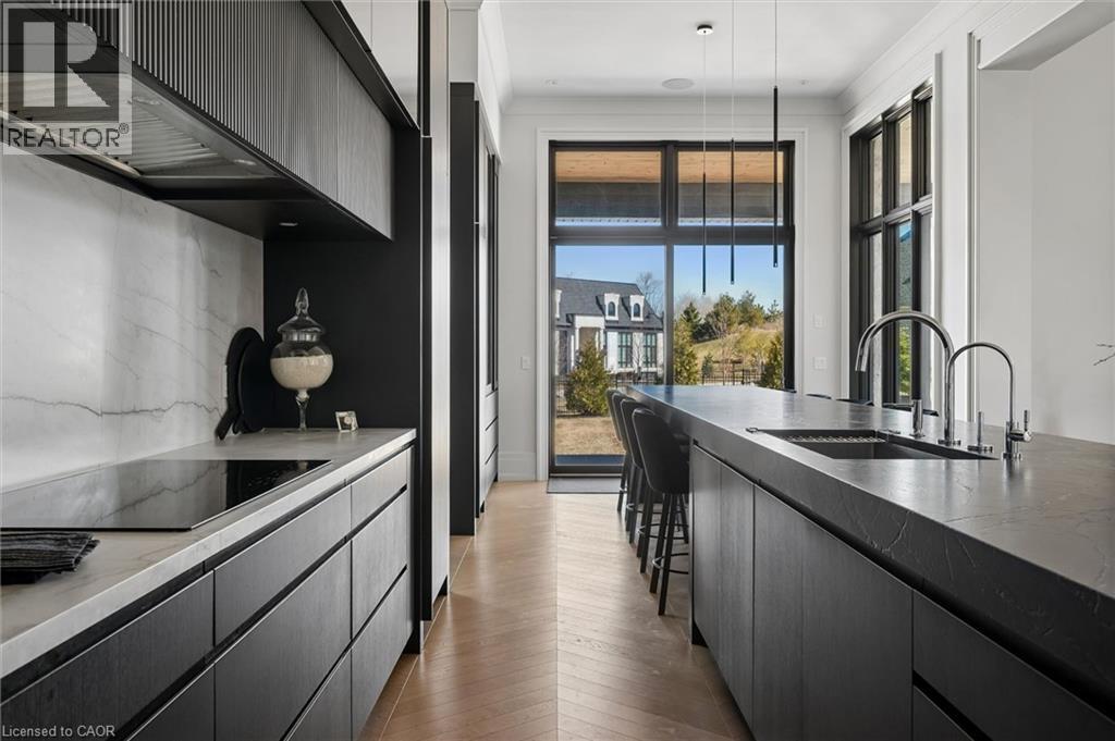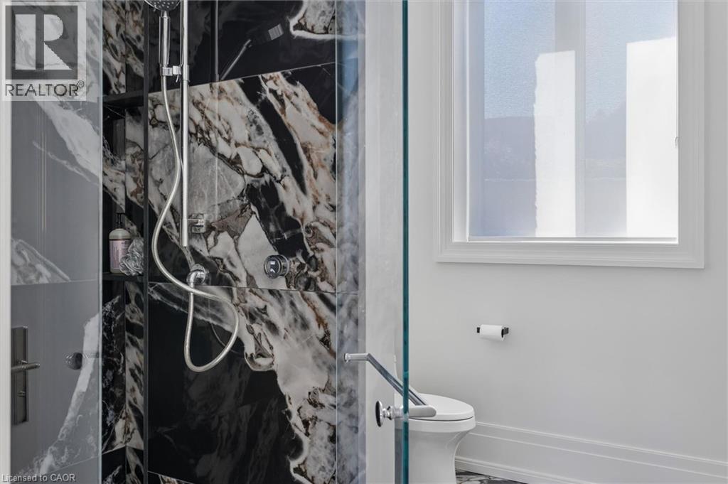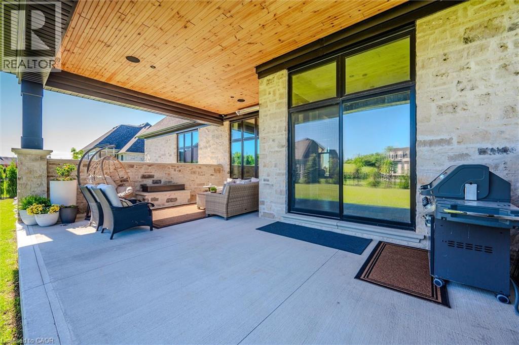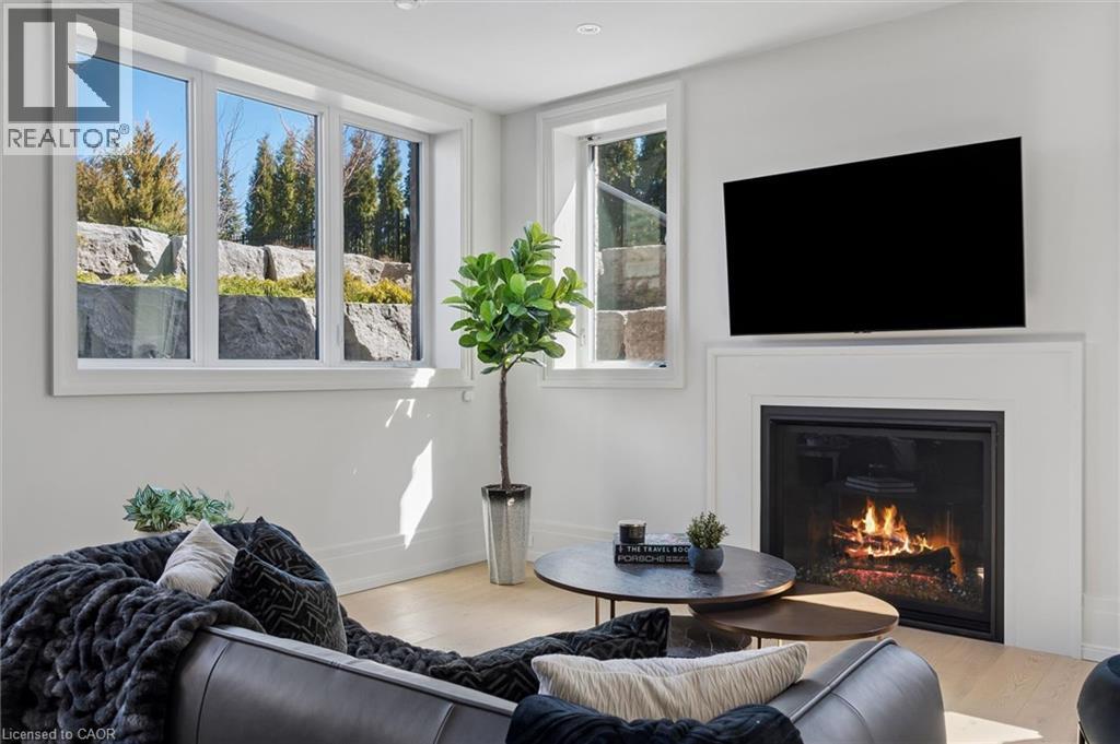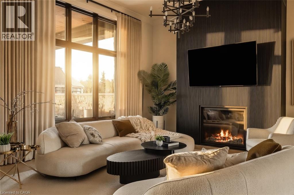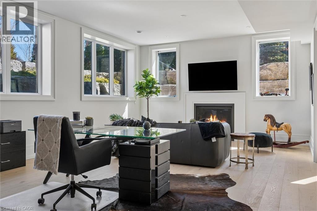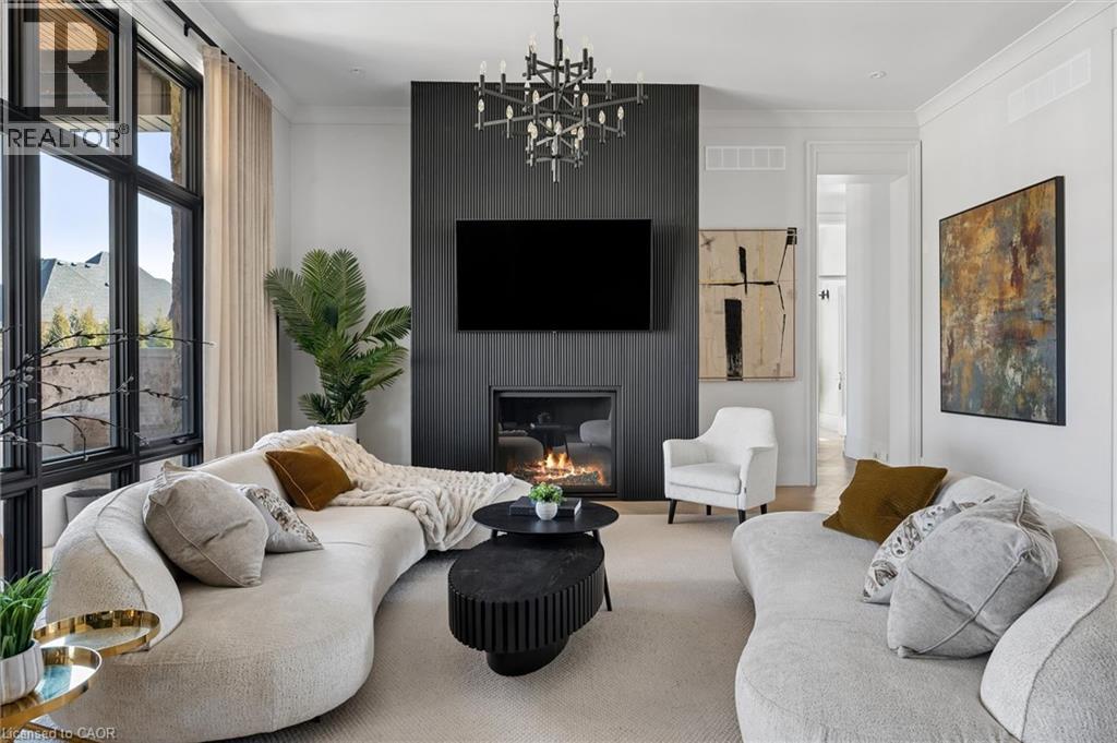 Set within the exclusive gated community of Heritage Lake Estates, this extraordinary custom-built natural stone bungalow offers refined luxury on a private half-acre lot just steps from the lake. Perfectly positioned only minutes from Highway 401 and close to schools and amenities, this home delivers both privacy and exceptional convenience. From the moment you enter, the home impresses with 12-foot ceilings, striking chevron hardwood flooring, dramatic custom lighting, and a stunning fireplace feature wall. Expansive floor-to-ceiling windows flood the home with natural light, creating an atmosphere that is both sophisticated and welcoming. With over 4,200 square feet of impeccably designed living space, the home offers 4 spacious bedrooms and 5 luxurious bathrooms, along with heated floors and premium finishes throughout. At the heart of the home is a show-stopping chef’s kitchen designed for grand entertaining, featuring built-in appliances, a walk-in pantry, and an impressive 20-foot granite island with seating for up to 15 guests. The private primary retreat offers a serene escape with a spa-inspired luxury ensuite and a custom walk-in closet with built-in cabinetry. The fully finished lower level continues the home’s exceptional design with nearly 10-foot ceilings, oversized windows, radiant heated hardwood floors, and a cozy gas fireplace, creating the perfect space for entertaining, relaxing, or hosting guests. Outdoors, enjoy the beautifully landscaped grounds, complete with irrigation, an oversized covered patio for year-round outdoor living, and an expansive three-car garage with additional driveway parking for 6–8 vehicles. Net-zero ready and fully smart-wired with fibre optics and natural gas, this forward-thinking home blends timeless craftsmanship with modern technology. A rare offering where architectural elegance, thoughtful design, and premium craftsmanship come together to create a truly exceptional home. (id:4555)