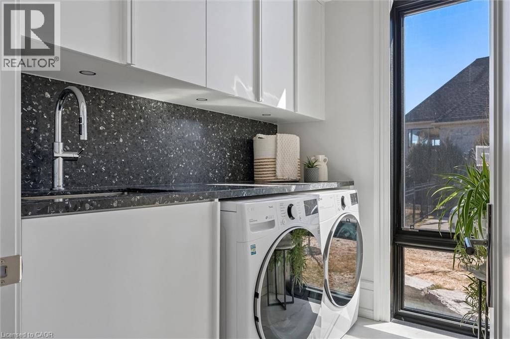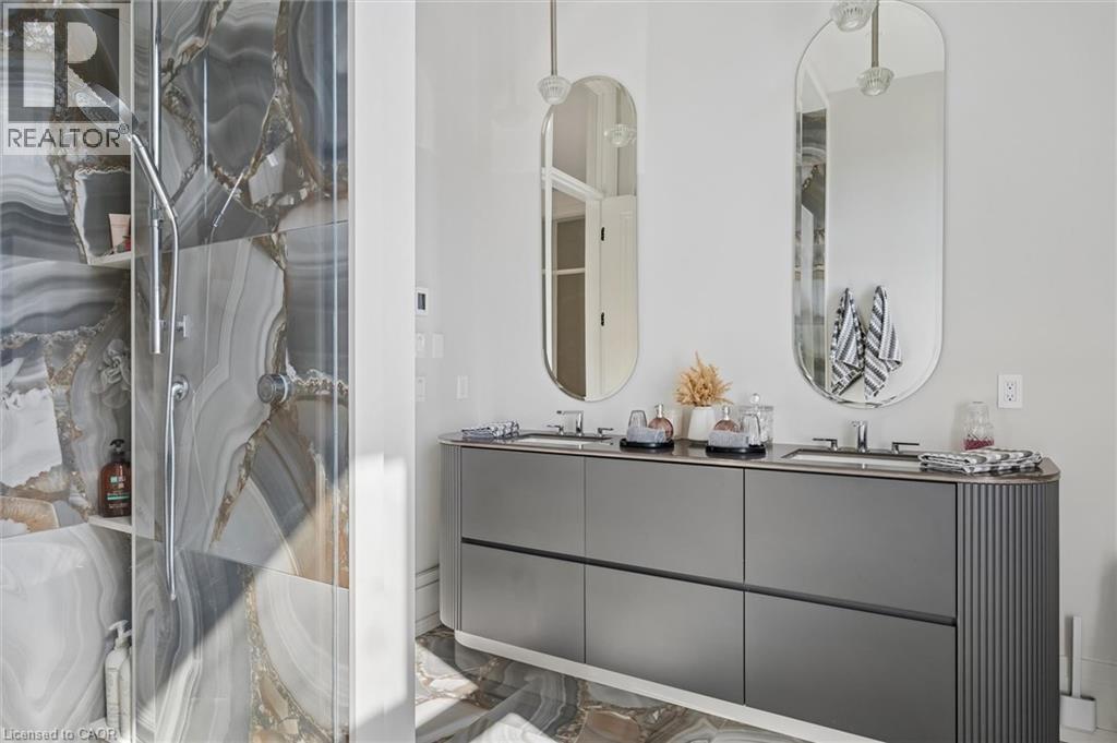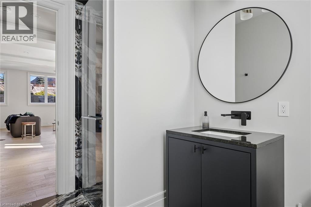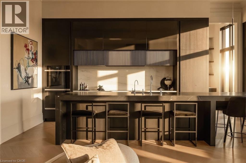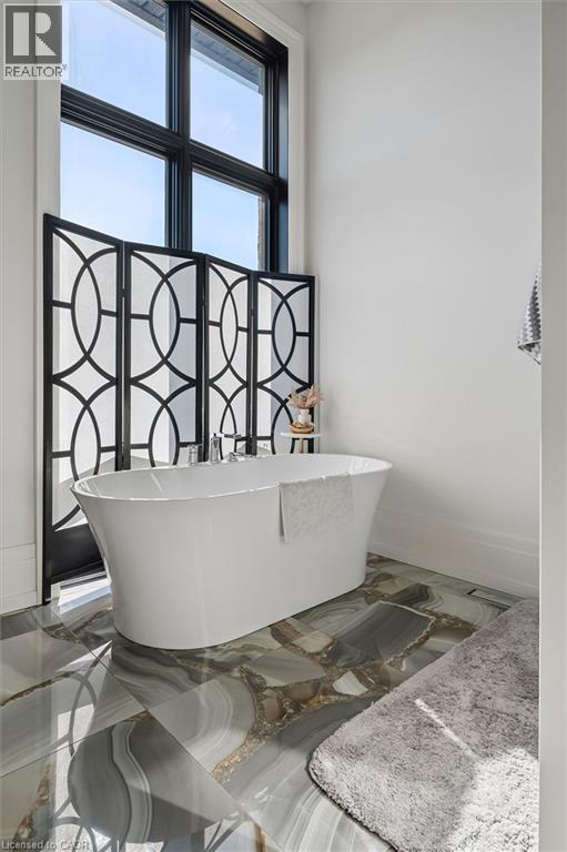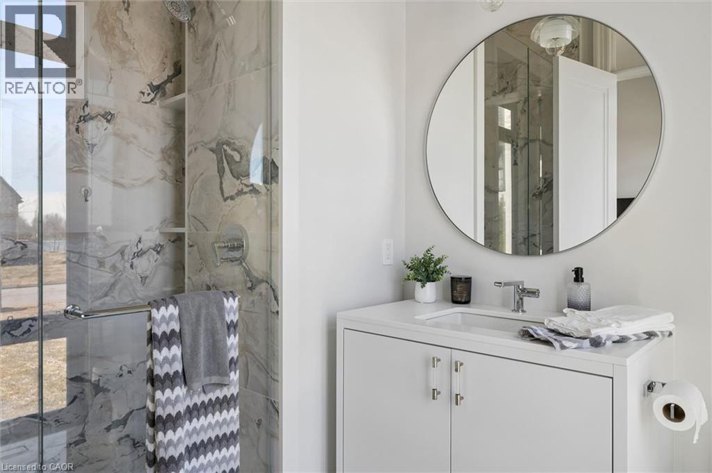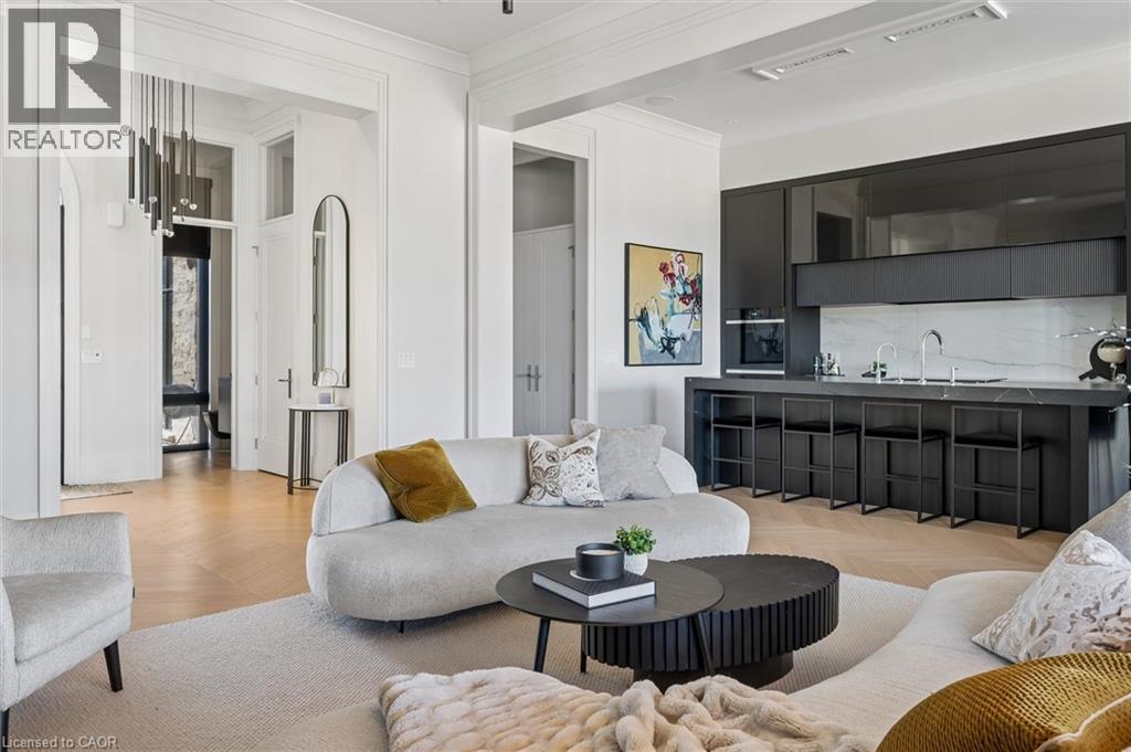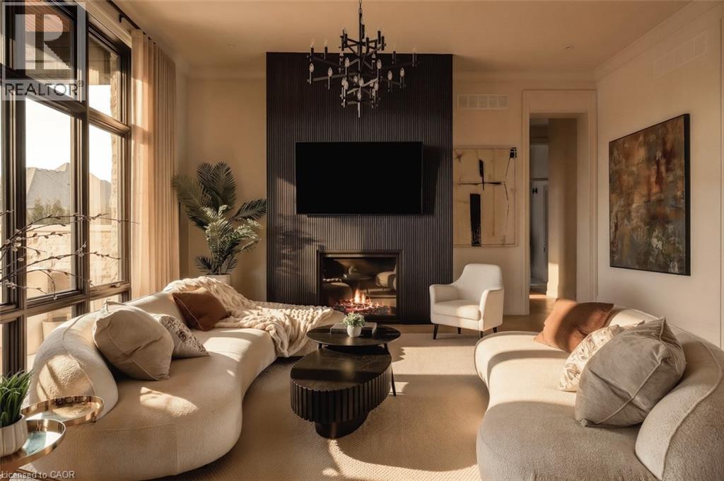 Set within the exclusive gated community of Heritage Lake Estates, this extraordinary custom-built natural stone bungalow offers refined luxury on a private half-acre lot just steps from the lake. Perfectly positioned only minutes from Highway 401 and close to schools and amenities, this home delivers both privacy and exceptional convenience. From the moment you enter, the home impresses with 12-foot ceilings, striking chevron hardwood flooring, dramatic custom lighting, and a stunning fireplace feature wall. Expansive floor-to-ceiling windows flood the home with natural light, creating an atmosphere that is both sophisticated and welcoming. With over 4,200 square feet of impeccably designed living space, the home offers 4 spacious bedrooms and 5 luxurious bathrooms, along with heated floors and premium finishes throughout. At the heart of the home is a show-stopping chef’s kitchen designed for grand entertaining, featuring built-in appliances, a walk-in pantry, and an impressive 20-foot granite island with seating for up to 15 guests. The private primary retreat offers a serene escape with a spa-inspired luxury ensuite and a custom walk-in closet with built-in cabinetry. The fully finished lower level continues the home’s exceptional design with nearly 10-foot ceilings, oversized windows, radiant heated hardwood floors, and a cozy gas fireplace, creating the perfect space for entertaining, relaxing, or hosting guests. Outdoors, enjoy the beautifully landscaped grounds, complete with irrigation, an oversized covered patio for year-round outdoor living, and an expansive three-car garage with additional driveway parking for 6–8 vehicles. Net-zero ready and fully smart-wired with fibre optics and natural gas, this forward-thinking home blends timeless craftsmanship with modern technology. A rare offering where architectural elegance, thoughtful design, and premium craftsmanship come together to create a truly exceptional home. (id:4555)