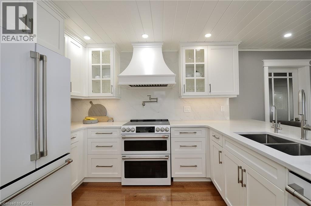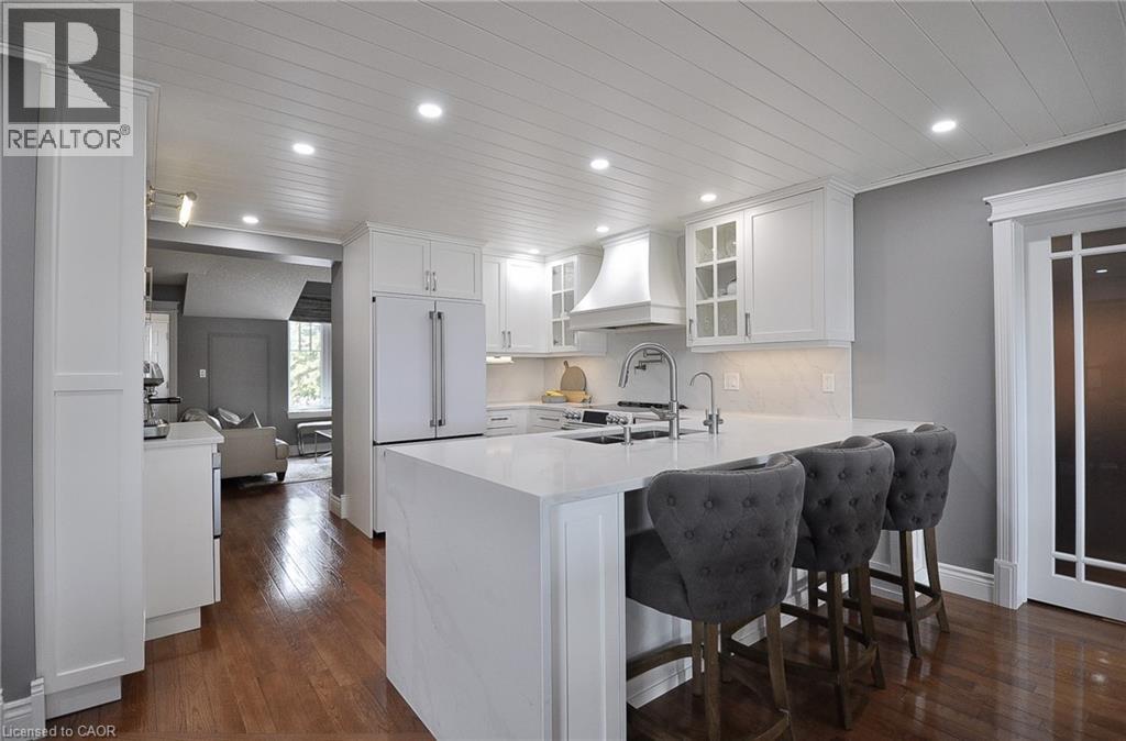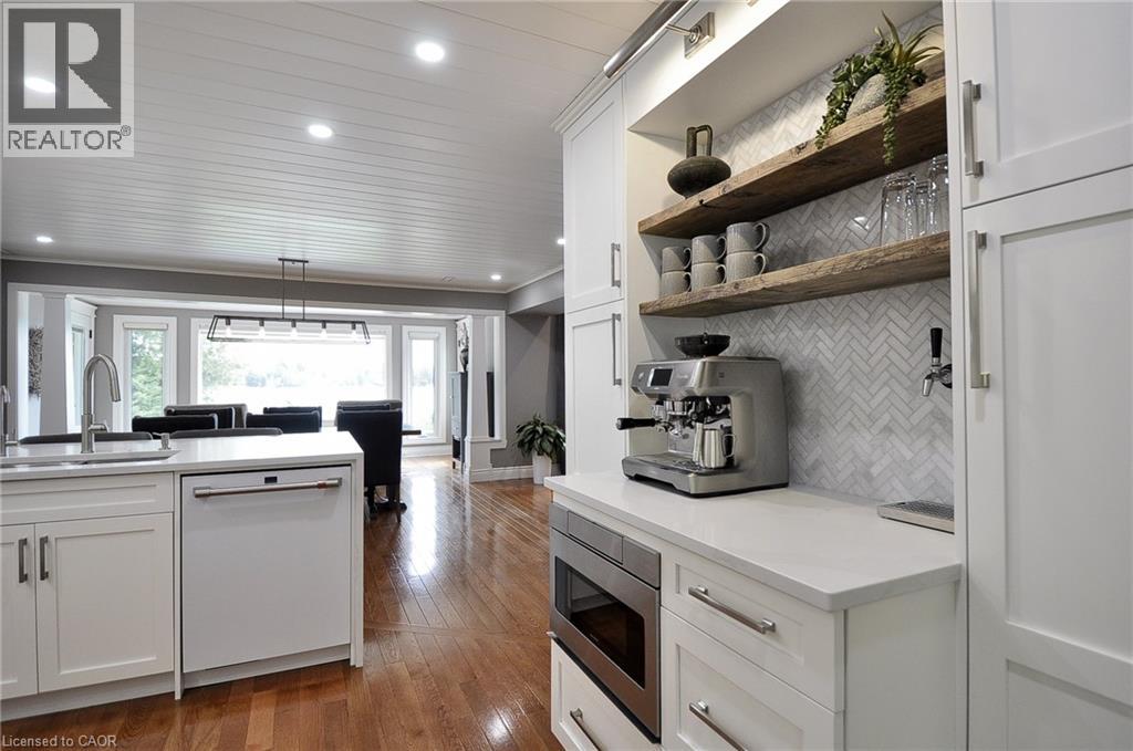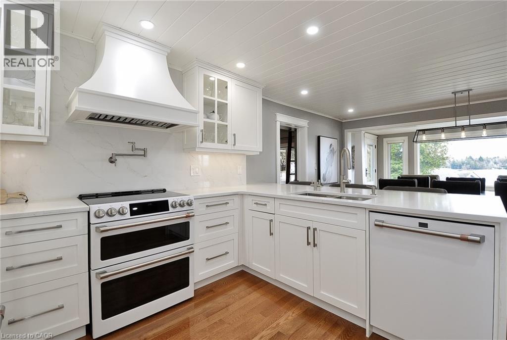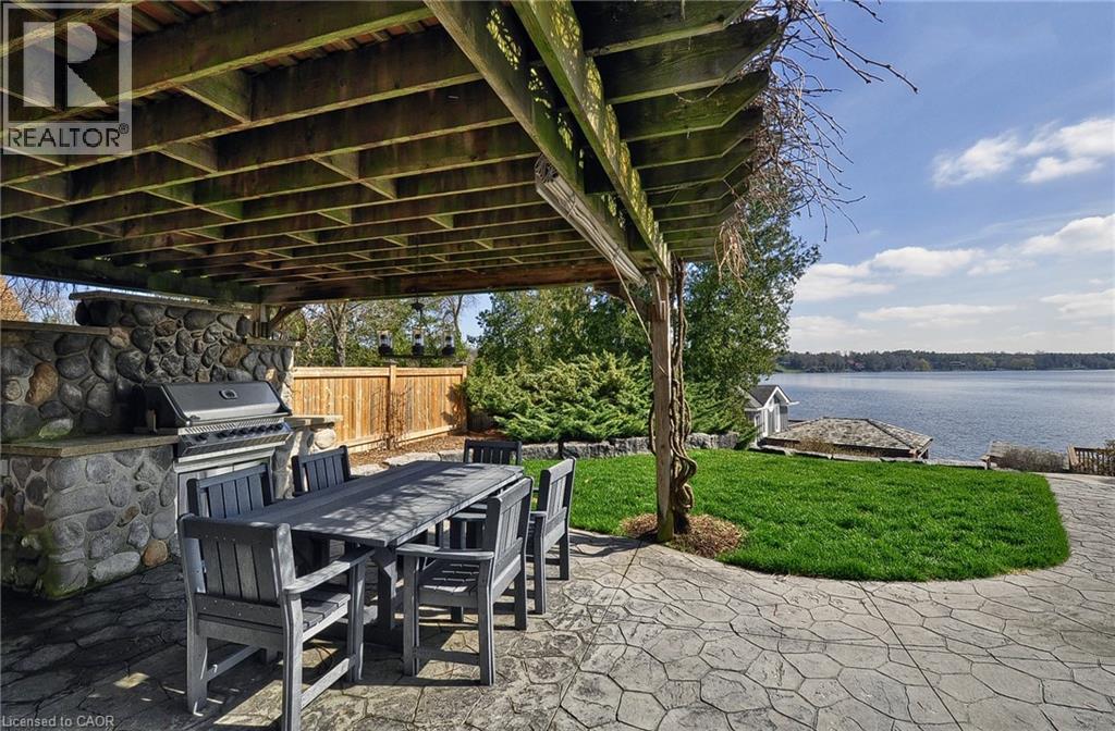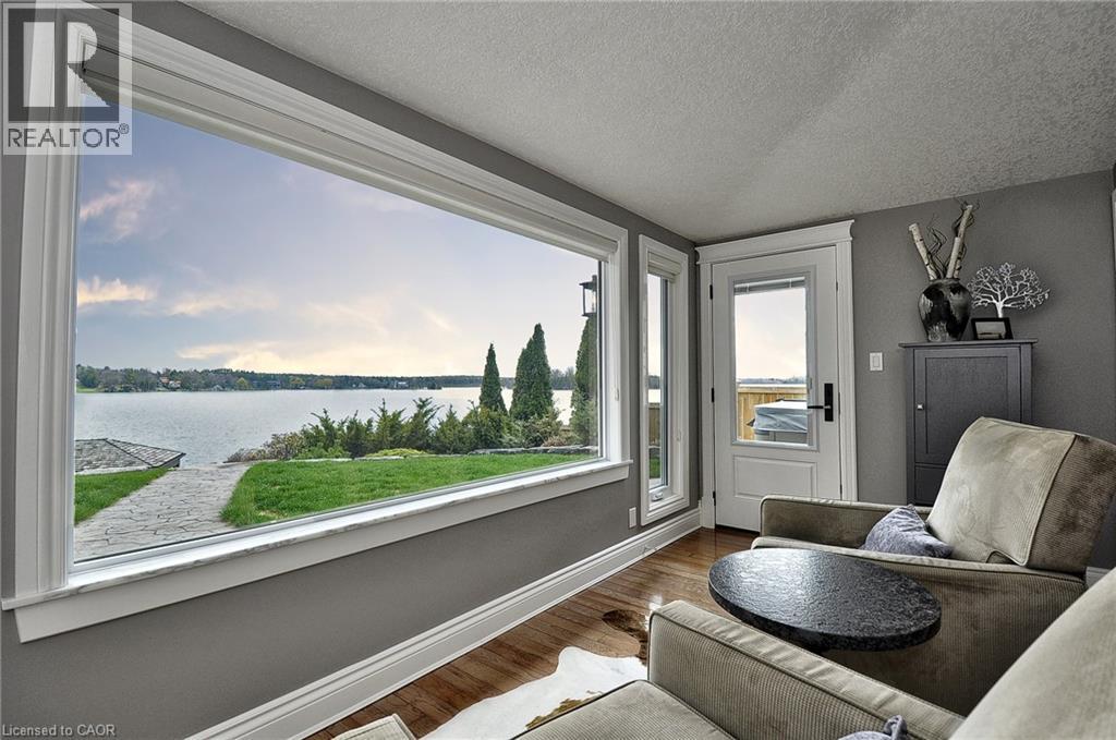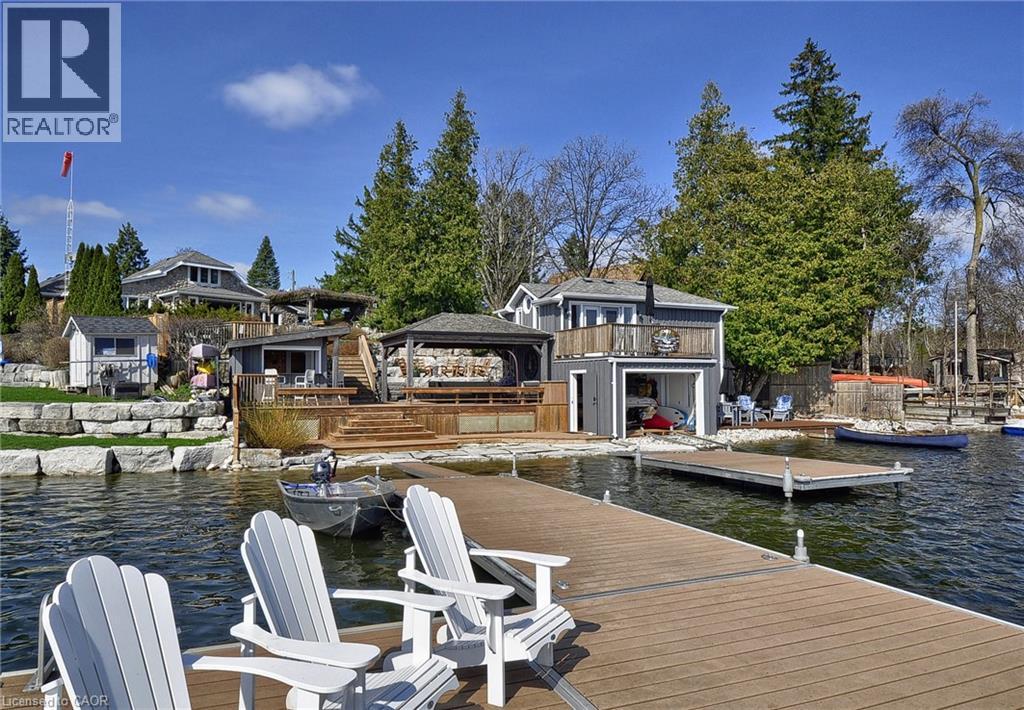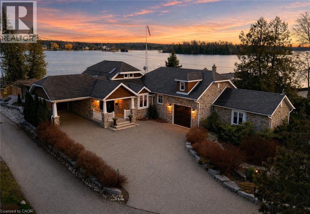 Set along the shores of Puslinch Lake, this exceptional waterfront home offers over 70 feet of owned shoreline and a truly rare lifestyle. Originally built in 1915, the home blends timeless stone exterior charm with a fully modernized interior featuring high-end finishes and thoughtfully designed living spaces. Inside, the home unfolds with a natural, easy flow designed for both everyday living and hosting. The kitchen connects seamlessly to the dining and living areas, creating a bright, welcoming central space enhanced by the home’s sun-filled southern exposure. Tucked to one side, the main floor primary bedroom features a 4-piece ensuite and its own laundry. A separate office offers flexibility, easily functioning as a guest room or additional bedroom. Upstairs, a quiet and private space captures some of the best views in the home. The generously sized bedroom is framed by a large picture window overlooking the lake, paired with its own 4-piece bathroom to create a peaceful retreat, ideal for guests. The fully finished basement extends the living space with an impressive recreation room, stylish wet bar, dedicated wine cellar and two-piece bathroom . Step outside and enjoy everything this lakeside retreat has to offer, stunning water views, hot tub, fire pit, mutli-level seating areas, pergola, outdoor kitchen, Tiki bar, the multi-tiered backyard is designed for unforgettable lakeside living. At the water’s edge, a two-storey boathouse includes a self-contained accessory apartment with a private deck. With expansive dock space, even accommodating a seaplane. This property is truly one-of-a-kind. Move in and enjoy a seamless blend of history, luxury, and breathtaking waterfront views. Every detail has been carefully curated to maximize comfort, function, and the beauty of lakeside living, creating an unmatched retreat just minutes from everyday amenities. (id:4555)