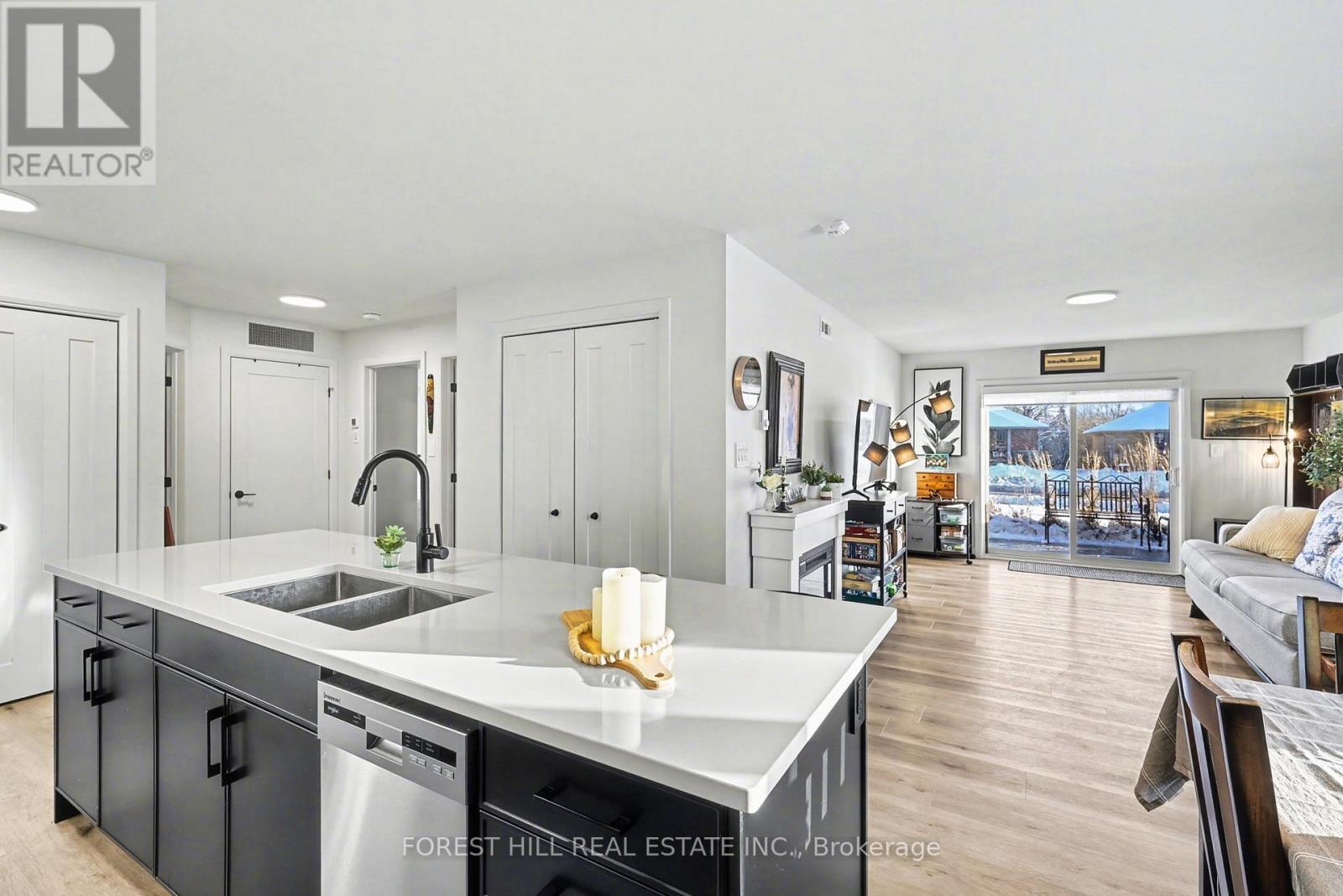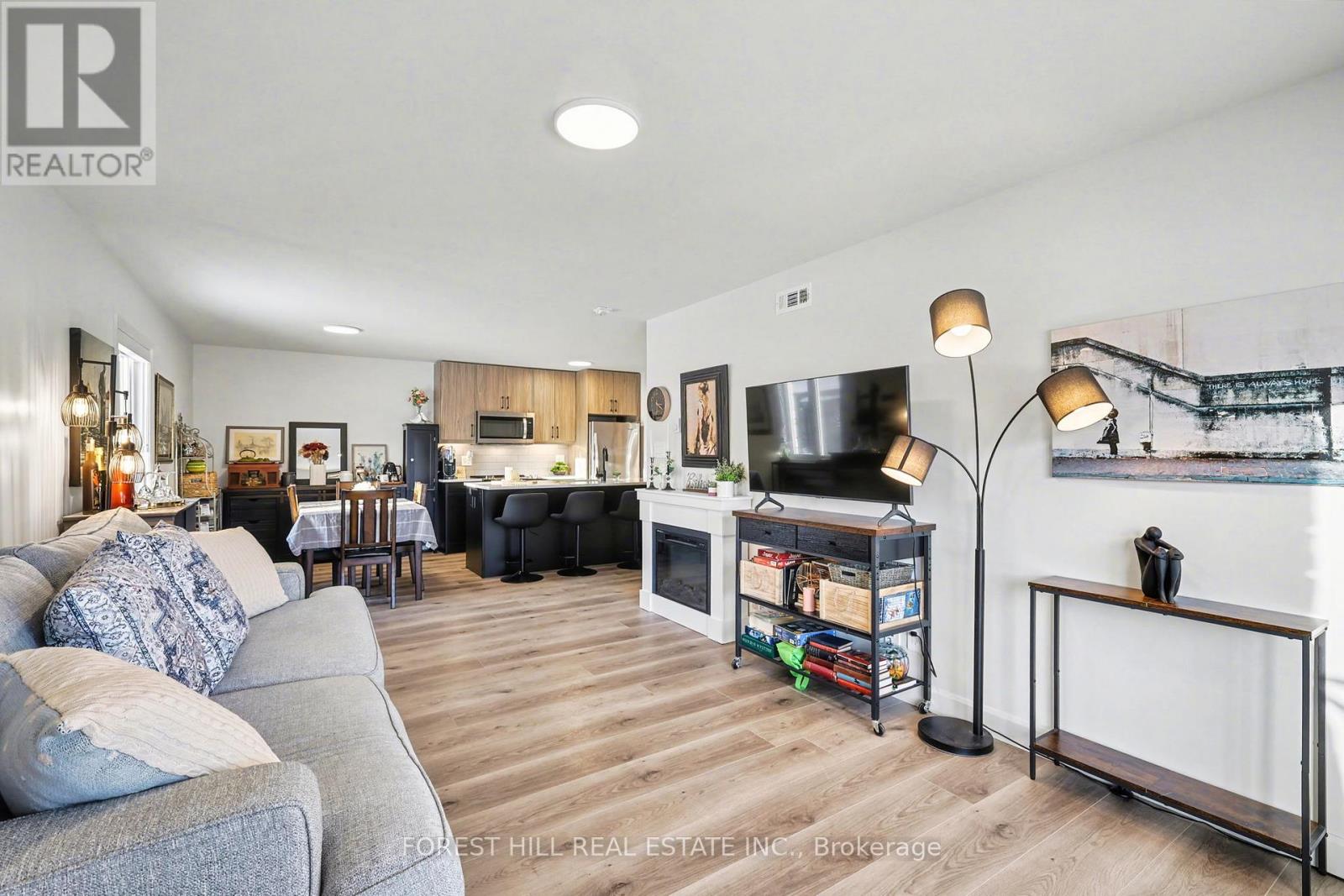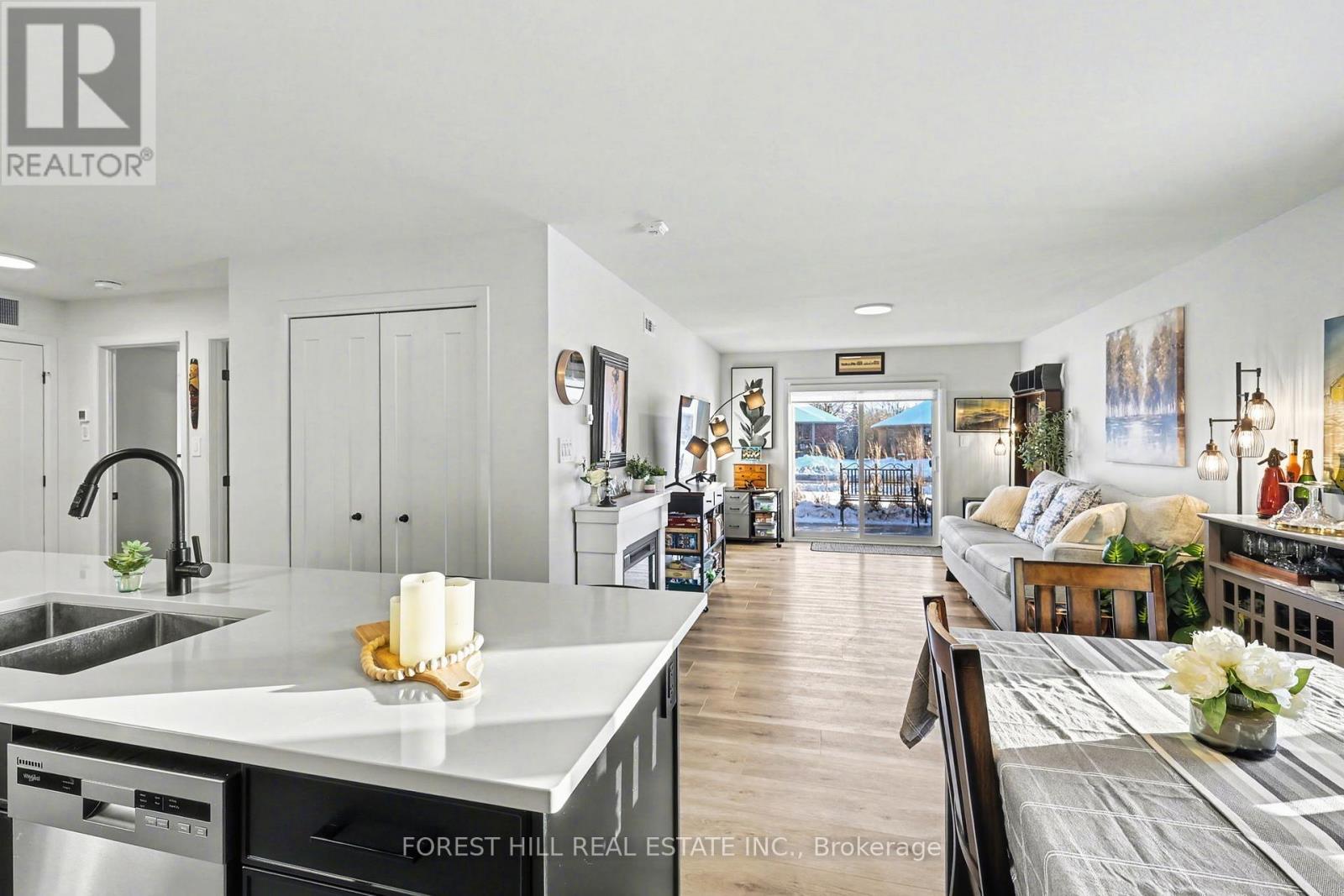 Enjoy effortless ground-floor living at Hillside Flats. This move-in-ready 908 sq. ft. two-bedroom corner unit offers exceptional convenience with no stairs or elevators required, perfect for comfortable living. Situated in one of Trenton's most desirable areas, this bright end unit features a thoughtfully designed layout with a sun-filled open-concept kitchen, dining, and living area, along with ample storage throughout. The unit includes a 3-piece bathroom with a step-in shower for added ease and accessibility. Additional highlights include an in-suite stackable washer and dryer located in the utility room and an 88 sq. ft. patio just off the living room, perfect for enjoying the outdoors. The oversized quartz kitchen island is ideal for entertaining, while a meeting room just down the hall is available for private events. This unit also comes with a locker conveniently located on the same floor, making it easy to store extra belongings. Walking distance to shopping and dining, this ground-floor unit delivers comfort and convenience, ideal for those seeking effortless single-level living. (id:4555)