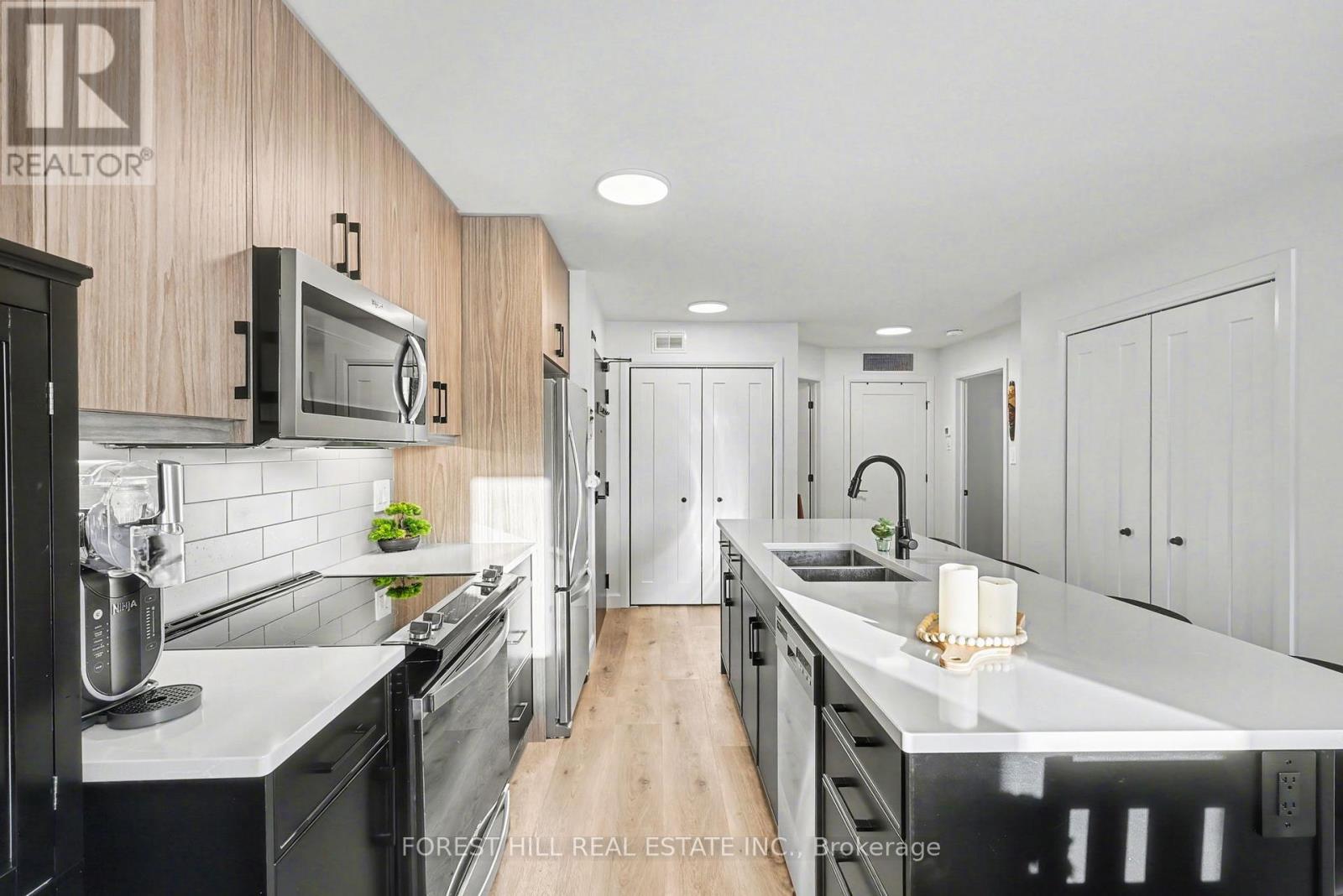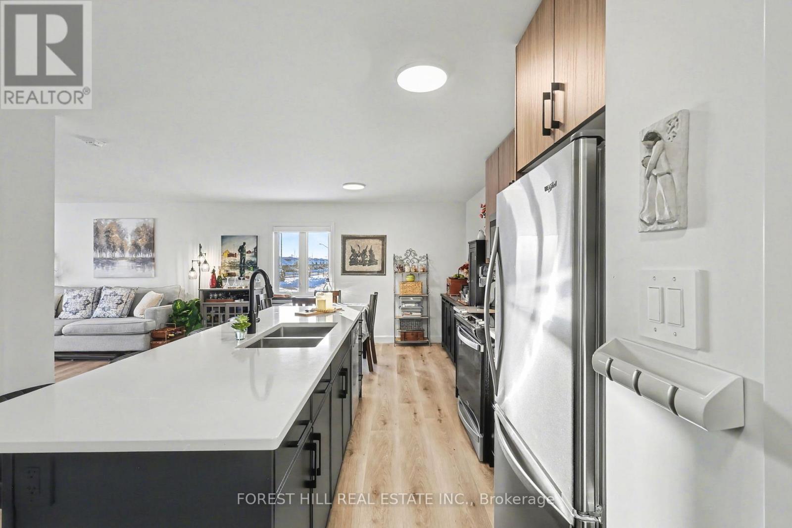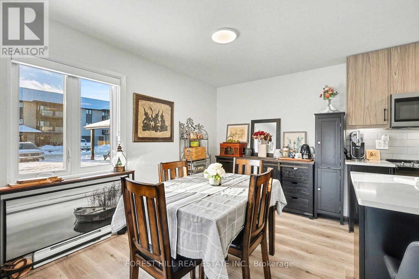 Enjoy effortless ground-floor living at Hillside Flats. This move-in-ready 908 sq. ft. two-bedroom corner unit offers exceptional convenience with no stairs or elevators required, perfect for comfortable living. Situated in one of Trenton's most desirable areas, this bright end unit features a thoughtfully designed layout with a sun-filled open-concept kitchen, dining, and living area, along with ample storage throughout. The unit includes a 3-piece bathroom with a step-in shower for added ease and accessibility. Additional highlights include an in-suite stackable washer and dryer located in the utility room and an 88 sq. ft. patio just off the living room, perfect for enjoying the outdoors. The oversized quartz kitchen island is ideal for entertaining, while a meeting room just down the hall is available for private events. This unit also comes with a locker conveniently located on the same floor, making it easy to store extra belongings. Walking distance to shopping and dining, this ground-floor unit delivers comfort and convenience, ideal for those seeking effortless single-level living. (id:4555)