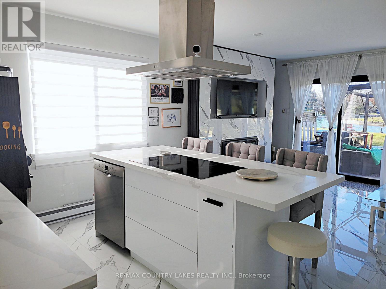 Waterfront End Unit Bungalow! This stunning end-unit bungalow checks all the boxes for carefree waterfront living. Enjoy one-level living with an open-concept design, fully updated throughout and featuring 3 bedrooms, 2 bathrooms, and a convenient office nook.Whether you're seeking a year-round home or the perfect cottage retreat, this property offers it all. Every detail has been thoughtfully upgraded-from the custom kitchen with stainless steel appliances to the beautifully added third bedroom and high-end finishes throughout.Step outside to your 12x24 deck and embrace the waterfront lifestyle. Travel the world from your own boat dock as part of the renowned Trent-Severn Waterway System. Take advantage of two private beaches, a marina, nearby restaurants, and a vibrant community centre-something for everyone to enjoy! (id:4555)