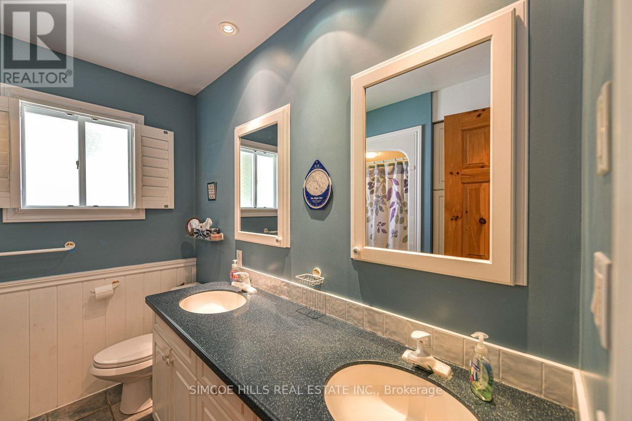 Lake Simcoe Waterfront Home--64 ft frontage! Features of this 1800SF home incl: open concept kitchen/dining/living rm, granite countertops, hardwood flooring, walk out to covered porch overlooking the water, spacious main flr bed., main flr laundry, large family/games rm plus attach double garage w/inside entry. Private setting, close to marina, parks, shopping +on school route. This move in ready home includes all furnishings too--easy year round living on the water! (id:4555)