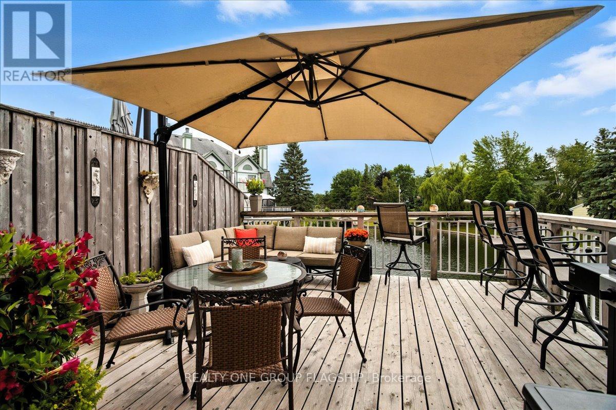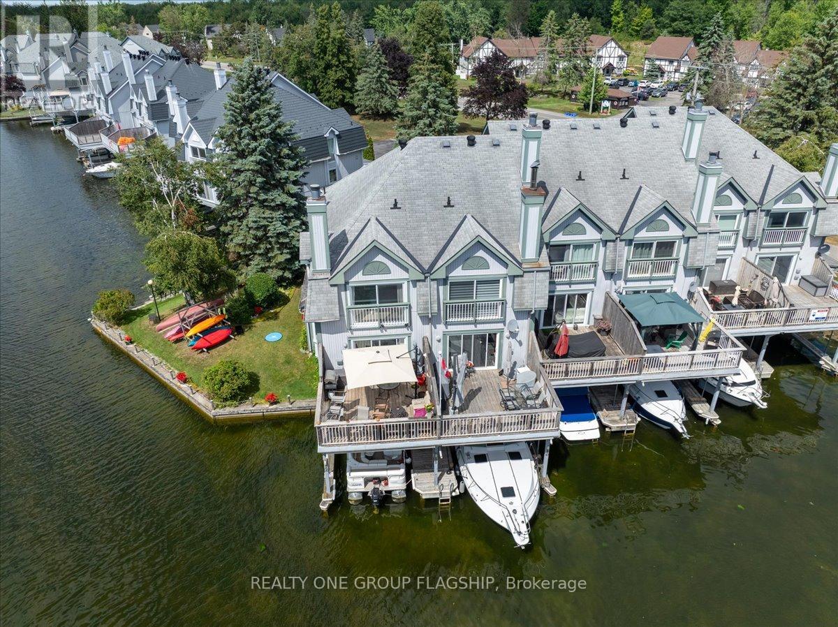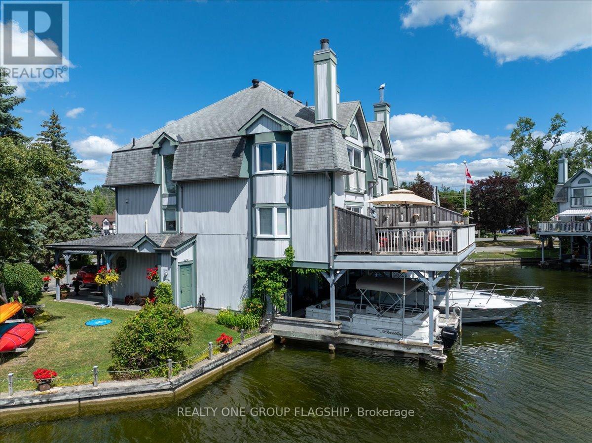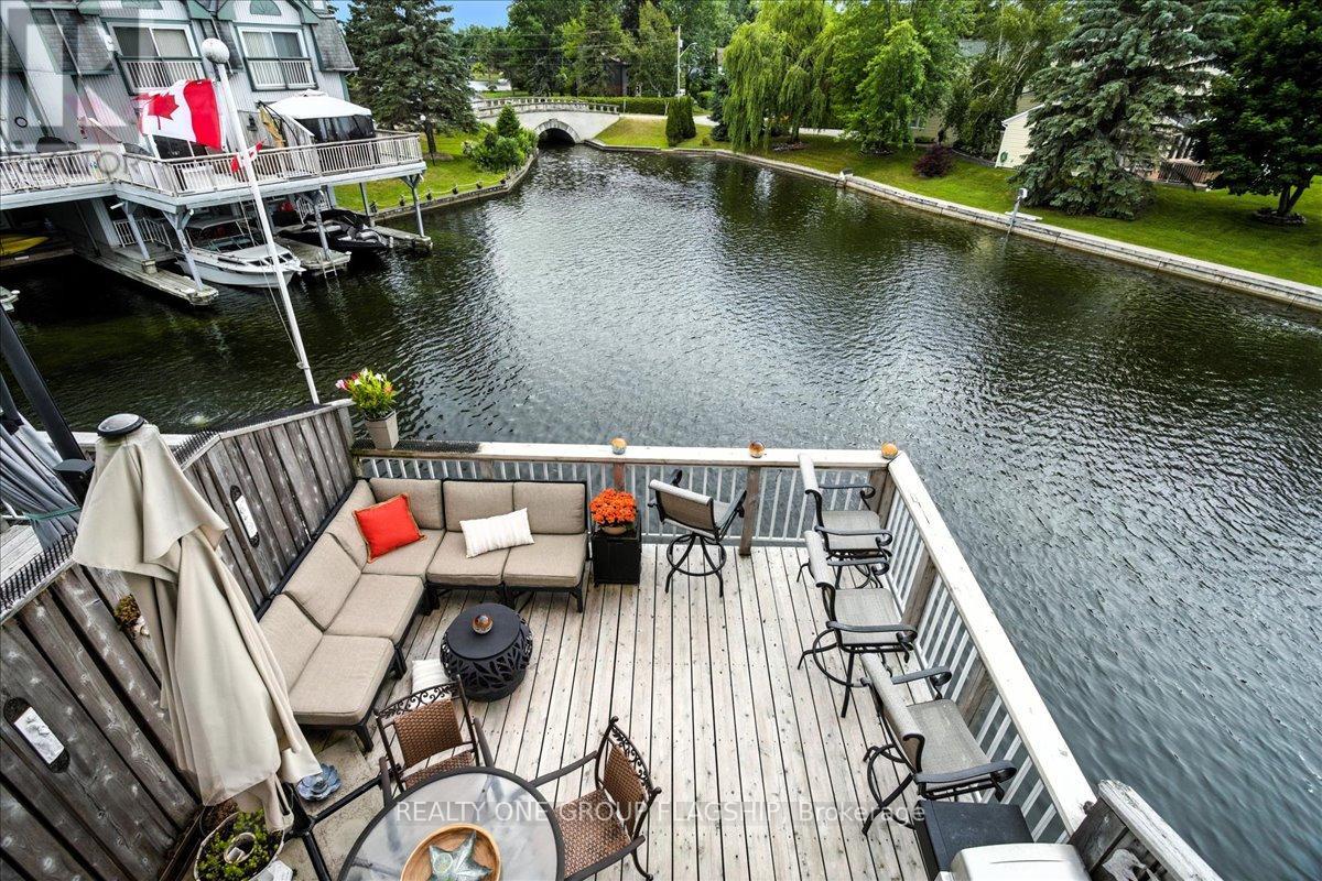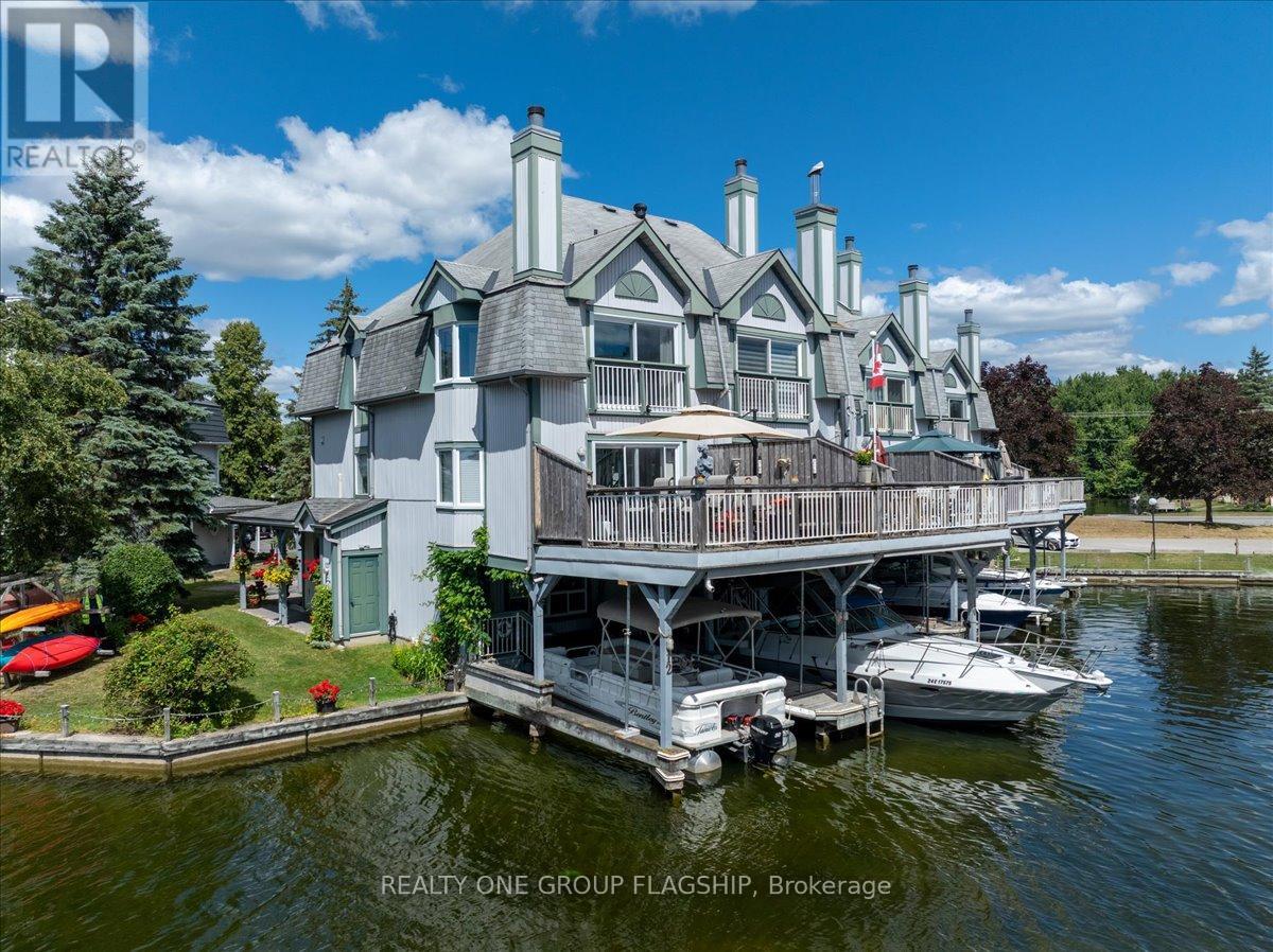 Welcome to one of Lagoon City's most desired townhomes THE ONE. This special end-unit retreat offers unparalleled panoramic views from sunrise to sunset. With full southern exposure and a prized canal-edge position, this exceptional home is filled with natural light, fresh breezes, well-circulated water flow, and an extraordinary waterfront lifestyle. Tucked beside a beautifully maintained side yard and enhanced by its ultra-private setting, this home also offers extra space for watercraft parking on the opposite side of your personal , covered boat slip. A true boaters dream, this townhouse opens directly onto a scenic canalsystem that leads to Lake Simcoe, and from there, to the expansive Trent-Severn Waterway. Inside, you'll find a thoughtful layout across three levels, featuring 3 bedrooms, 4 bathrooms, and a bright, airy bonus room that walks out directly to your dock. The living and dining areas are sunlit and spacious, framed by oversized windows that showcase calming water views and ever-changing skies. Step out onto your large private deck, perfect for entertaining or simply soaking in the peaceful setting. The primary suite is a retreat of its own, with a sun-filled bay window, sliding doors to a Juliet balcony, and sweeping views of a picturesque bridge and the canal below. A walk-in closet leads to a spa-like ensuite, complete with jet tub and bidet for elevated comfort. Notable extras include a private carport, ample storage, and access to all the amenities the community has to offer: marina, tennis and pickleball courts, two sandy beaches, community center, and more, all within walking distance. Less than 25 minutes to Orillia and Casino Rama, and just over an hour from Toronto, this is effortless four-season living with the soul of a getaway and the comfort of home. (id:4555)