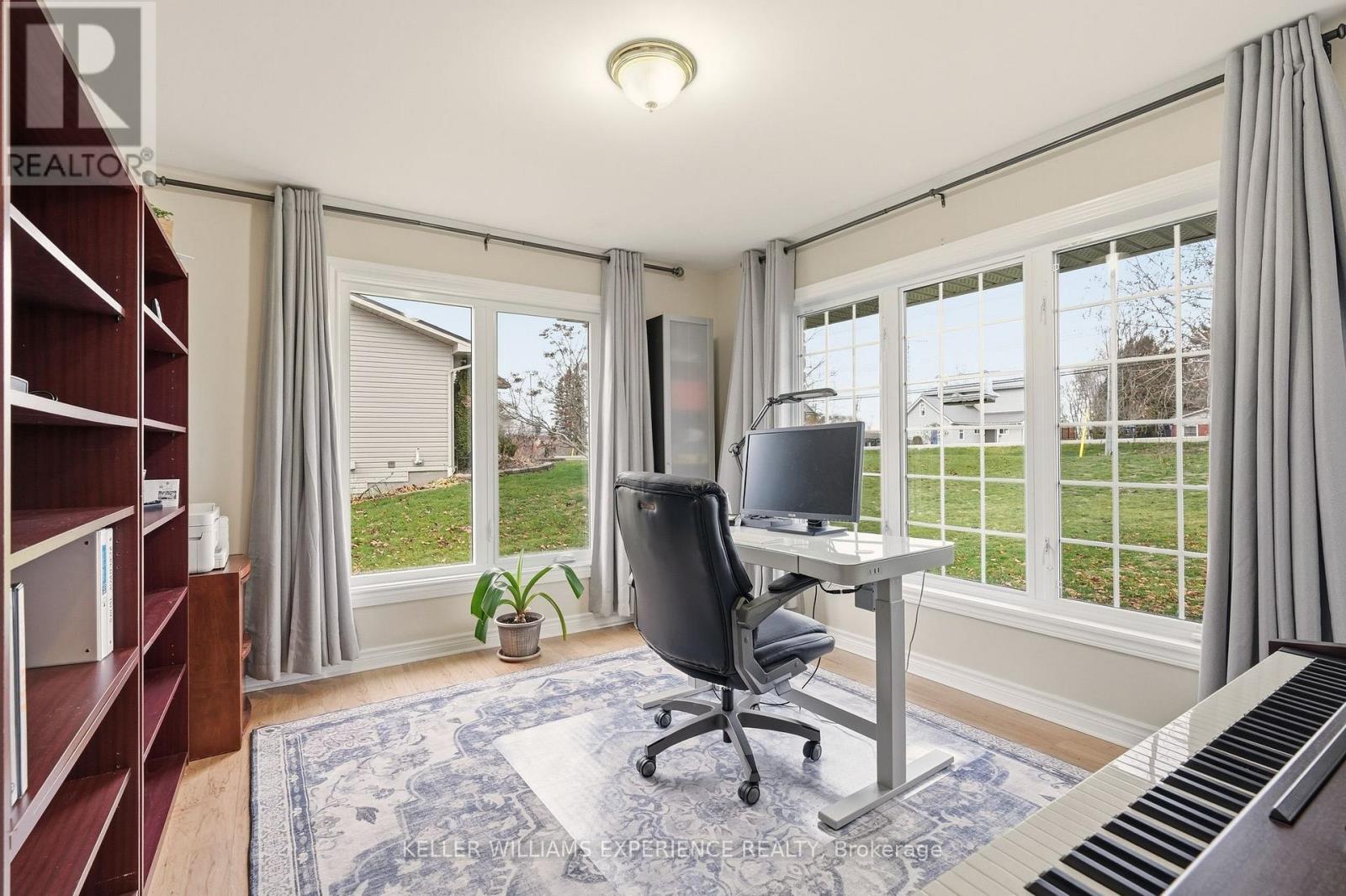 This beautifully designed bungalow blends modern efficiency with natural serenity. Elevated on a gentle knoll & set on a 0.61-acre lot backing onto private woodland, this home offers exceptional space, comfort & thoughtful craftsmanship. Inside, wide hallways, bird's-eye hickory hardwood floors, a sun-drenched living room with a soaring vaulted ceiling & four spacious bedrooms set the tone for quality living. A front office provides the perfect workspace for professionals, a home-based business, or a 3rd bedroom on the main level. The open kitchen features abundant cabinetry & pantry storage, which seamlessly flows into a dining space that leads out to a large deck, ideal for relaxing or entertaining, overlooking the peaceful, manicured yard. The main level also includes 2 large bedrooms that flood with natural light. The spacious primary suite offers a walk-in closet & 3-pc ensuite with step in shower. A 4-pc main bathroom, convenient laundry room & inside access from the oversized double car garage complete this level of the home. The fully finished walkout basement offers outstanding multigenerational living or rental potential! Complete with its own kitchen, bright & spacious living area with private entrance, 2 large bedrooms, a 4-pc bath & in-suite laundry. Choose to keep this space for yourself & you'll have almost 3500 sq ft of finished living space. Valuable upgrades include a strengthened aluminum-shingled roof with a 50-year lifespan, a Hydro One solar contract with an estimated $45,000 remaining return, a rubber-paved driveway & a new water heater. The large backyard shed with hydro provides abundant workspace & storage. The partially fenced yard offers the perfect spot for pets to roam. Freshly painted, meticulously maintained & surrounded by friendly neighbours, this home is truly move-in ready. Experience peaceful living, energy savings & the comfort of a welcoming community - all just minutes from Lake Simcoe's shoreline in beautiful Ramara. (id:4555)