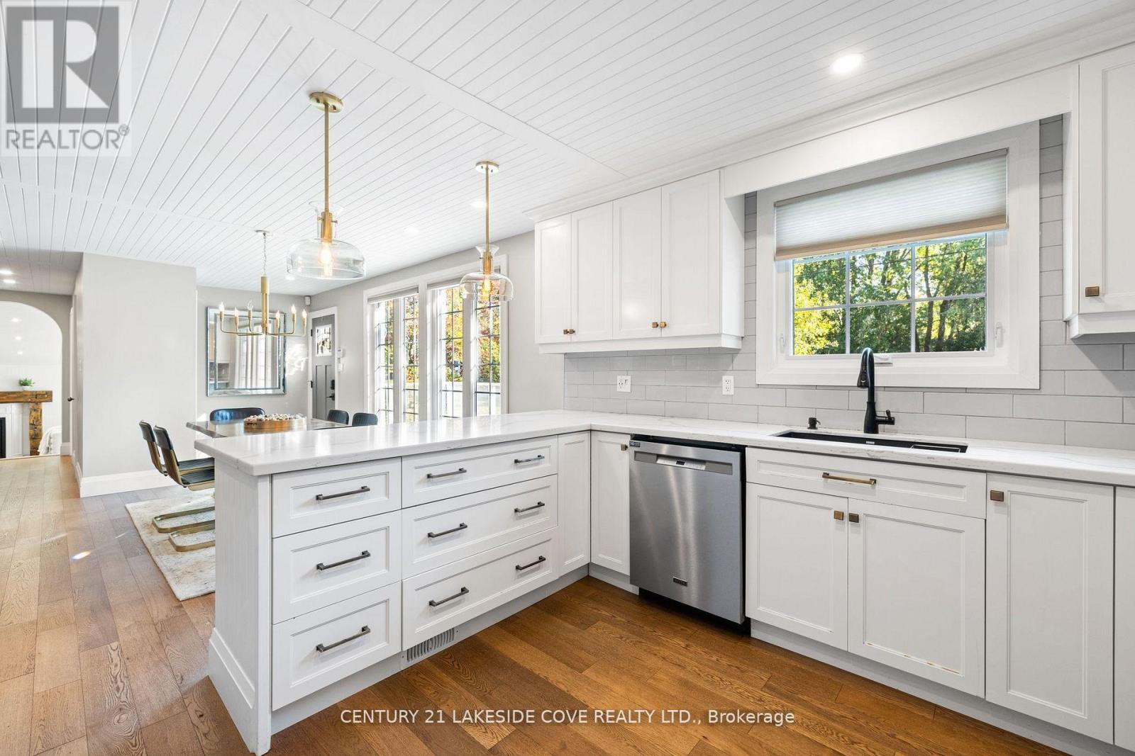 This Exquisite Waterfront Bungalow is Nestled on Nearly Half an Acre of Beautifully Landscaped Grounds in the Highly Coveted Lagoon City Community. With Direct Access to the Breathtaking Lake Simcoe and the Scenic Trent-Severn Waterway, You can Effortlessly Dock Your Boat Right in Your Backyard and Relish a Private Beach Mere Steps Away. The Home Masterfully Combines Luxury and Comfort, Featuring Top-Tier Finishes that Elevate Every Corner. The Kitchen Boasts Stunning quartz Countertops, V-Groove Ceilings, While the Living Room Captivates with its Custom Archway and Rich Hardwood Floors that Flow Seamlessly Throughout. Spacious Family Room and Bedrooms Invite You to Step onto a Large Deck, Providing the Perfect Setting for BBQs, Entertaining Guests, or Simply Unwinding in the Serene Ambiance. Recent Enhancements Include a Beautifully Crafted Designer Sauna, a Fully Renovated Bathroom Outfitted with a Commercial-Grade Steam Shower, a New Dishwasher, and a State-of-the-Art Air Conditioning Unit for Your Comfort. Outdoors, You'll Find a Charming Custom Dock Adorned with a Pergola, a Delightful Cabana Featuring a Fireplace, and a Covered Outdoor Shower, Each Element Designed for Year-Round Enjoyment and Relaxation. This is Not just a Home; its Your Personal Waterfront Paradise. (id:4555)