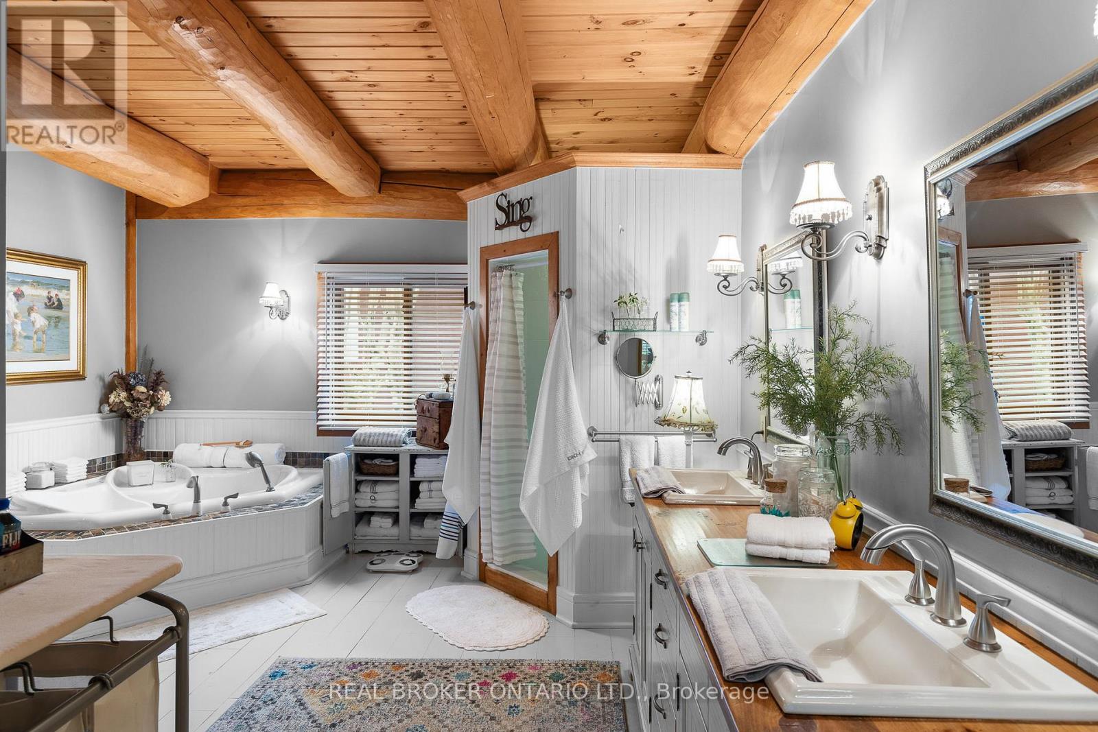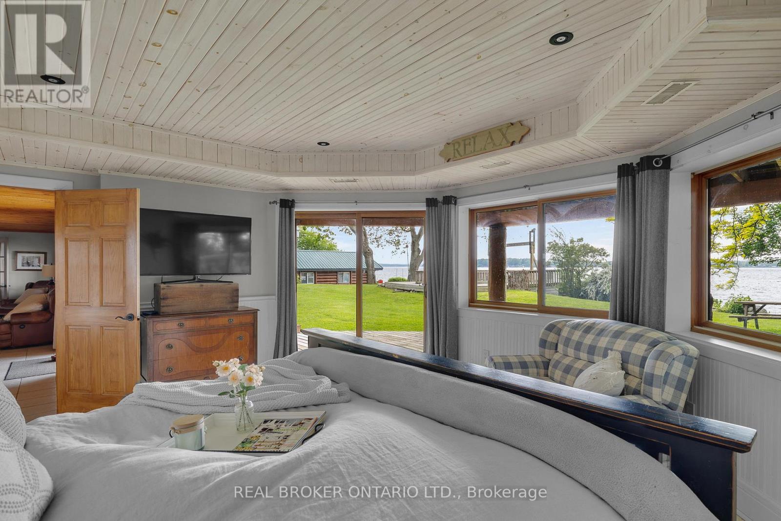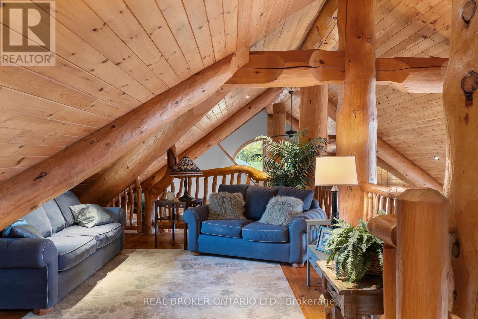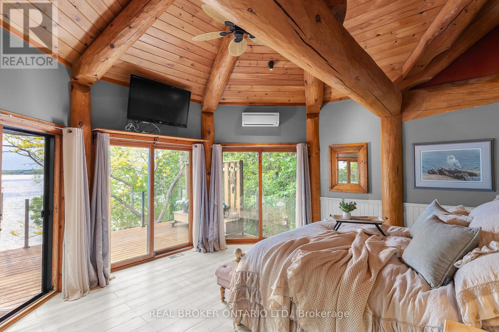 Welcome to 'Four Winds', one of Orillia's most exceptional waterfront properties located on Lake Simcoe. Situated on a rare 206 feet of private shoreline, this 2005-built round log home by Moonstone Timberframe with almost 5000 square feet of finished living space, offers timeless craftsmanship, remarkable design, and panoramic lake views from nearly every room. West-facing exposure delivers unforgettable sunsets, while the setting near the narrows connecting Lake Simcoe and Lake Couchiching offers incredible access to the Trent Severn Waterway and year-round enjoyment. Inside, a 30-ft vaulted great room showcases true log construction and stunning stonework around the gas fireplace. The chefs kitchen is a showpiece with an oversized island, high-end Elmira Heritage appliances, and wraparound views of the lake. The main floor primary suite features a 5-piece ensuite, walk-in closet, in-suite laundry, and private access to the expansive glass-railed deck overlooking the lake. Upstairs, a spacious open loft currently functions as a lounge and home office, originally designed to accommodate 2 additional bedrooms and a full bathroom. The fully finished walkout basement includes in-floor heating throughout, an entertainers bar, media room, two large guest bedrooms, full bathroom with laundry hookup, and access to a screened-in porch and covered patio. At the waters edge, a 458 sq ft finished boathouse bunkie with waterfront deck offers additional guest space. The 1,289 sq ft heated garage/workshop easily stores up to a 38-ft boat plus 2 vehicles. On the water, enjoy a 60ft cantilever dock, large observation deck, boat rail system and additional floating dock. Just 10 minutes to Orillia, under an hour to Muskoka, and only an hour from the GTA, this is lakeside living at its absolute finest. See agent website for info, additional photos and floor plans. (id:4555)