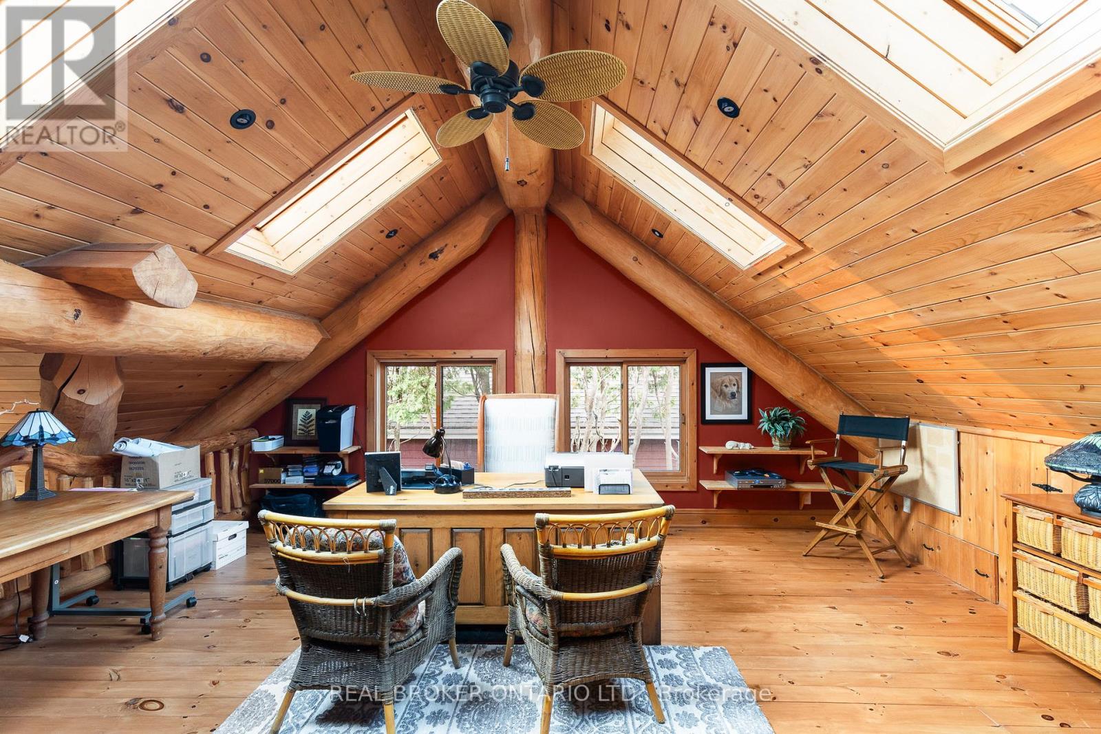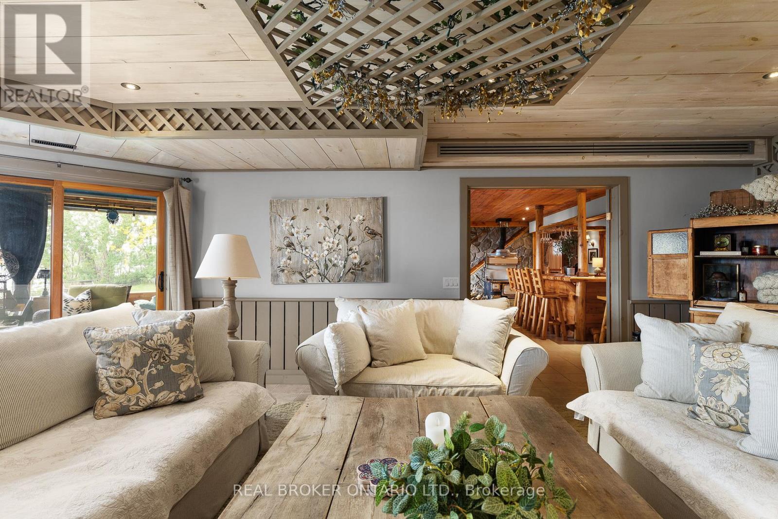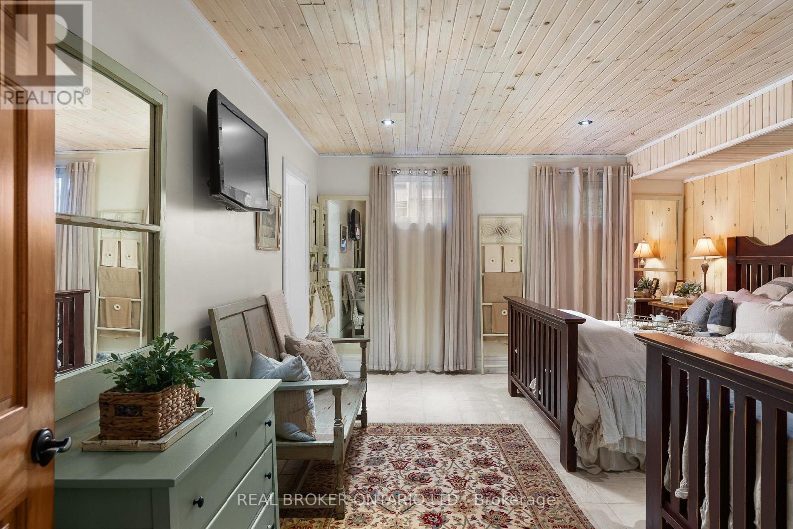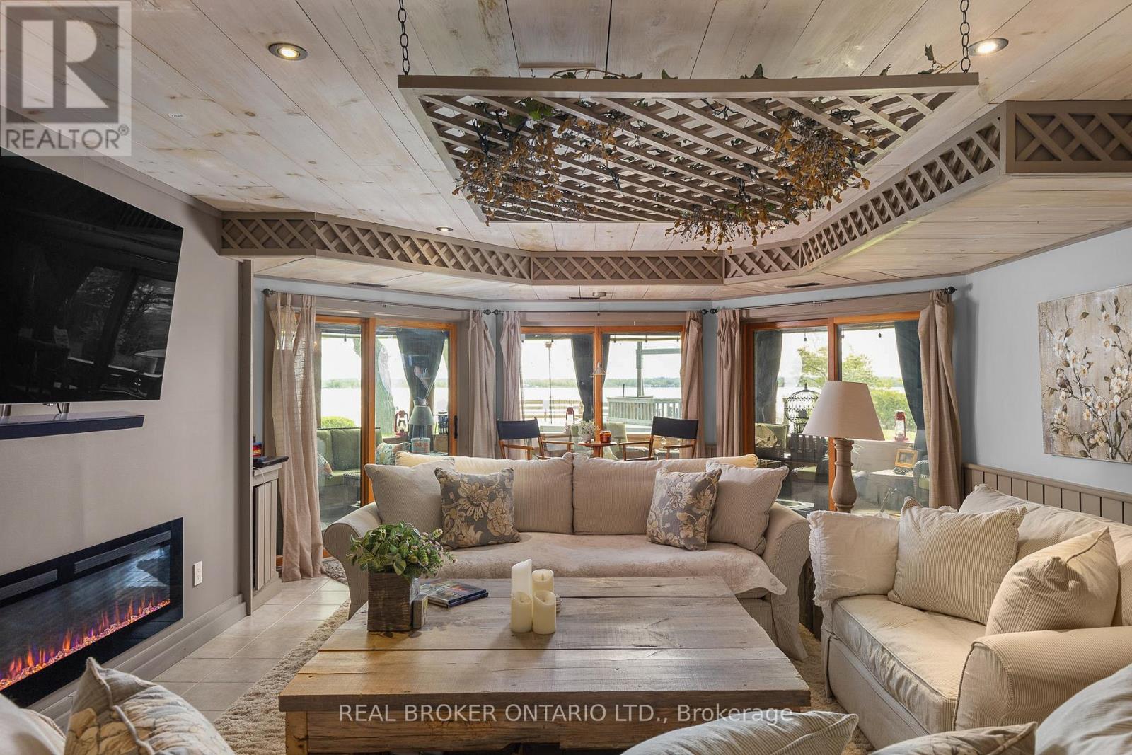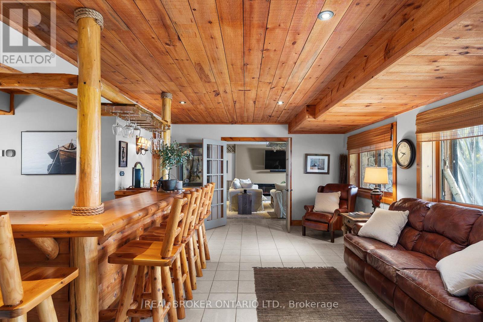 Welcome to 'Four Winds', one of Orillia's most exceptional waterfront properties located on Lake Simcoe. Situated on a rare 206 feet of private shoreline, this 2005-built round log home by Moonstone Timberframe with almost 5000 square feet of finished living space, offers timeless craftsmanship, remarkable design, and panoramic lake views from nearly every room. West-facing exposure delivers unforgettable sunsets, while the setting near the narrows connecting Lake Simcoe and Lake Couchiching offers incredible access to the Trent Severn Waterway and year-round enjoyment. Inside, a 30-ft vaulted great room showcases true log construction and stunning stonework around the gas fireplace. The chefs kitchen is a showpiece with an oversized island, high-end Elmira Heritage appliances, and wraparound views of the lake. The main floor primary suite features a 5-piece ensuite, walk-in closet, in-suite laundry, and private access to the expansive glass-railed deck overlooking the lake. Upstairs, a spacious open loft currently functions as a lounge and home office, originally designed to accommodate 2 additional bedrooms and a full bathroom. The fully finished walkout basement includes in-floor heating throughout, an entertainers bar, media room, two large guest bedrooms, full bathroom with laundry hookup, and access to a screened-in porch and covered patio. At the waters edge, a 458 sq ft finished boathouse bunkie with waterfront deck offers additional guest space. The 1,289 sq ft heated garage/workshop easily stores up to a 38-ft boat plus 2 vehicles. On the water, enjoy a 60ft cantilever dock, large observation deck, boat rail system and additional floating dock. Just 10 minutes to Orillia, under an hour to Muskoka, and only an hour from the GTA, this is lakeside living at its absolute finest. See agent website for info, additional photos and floor plans. (id:4555)
