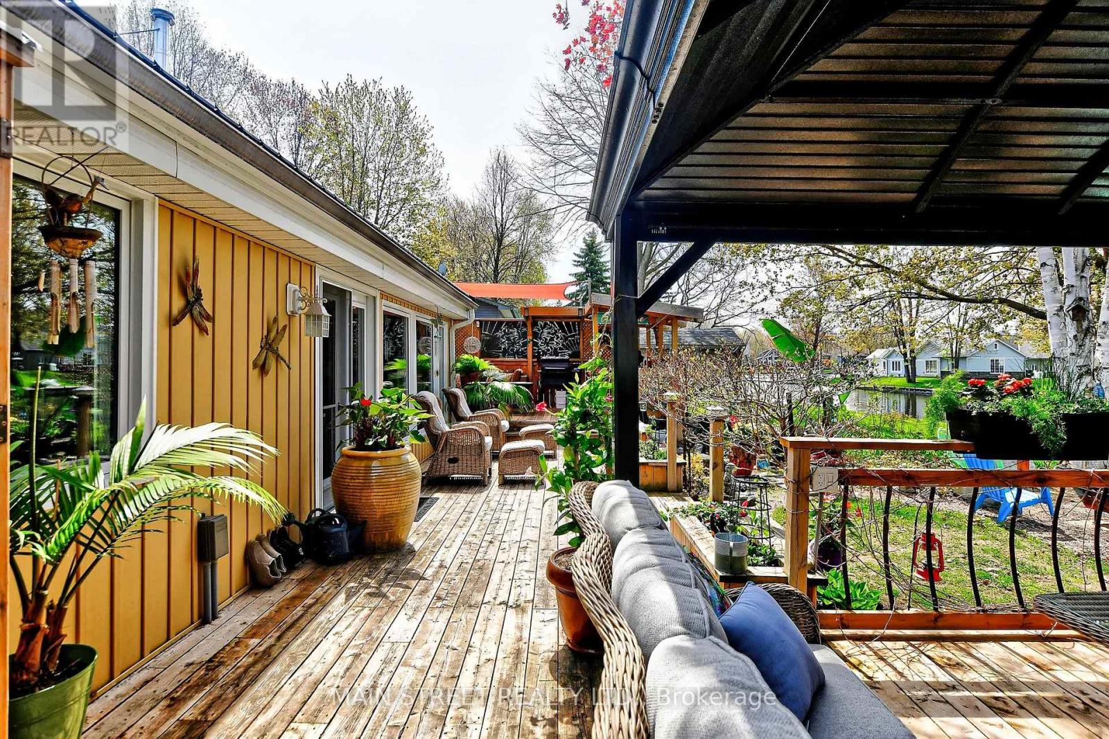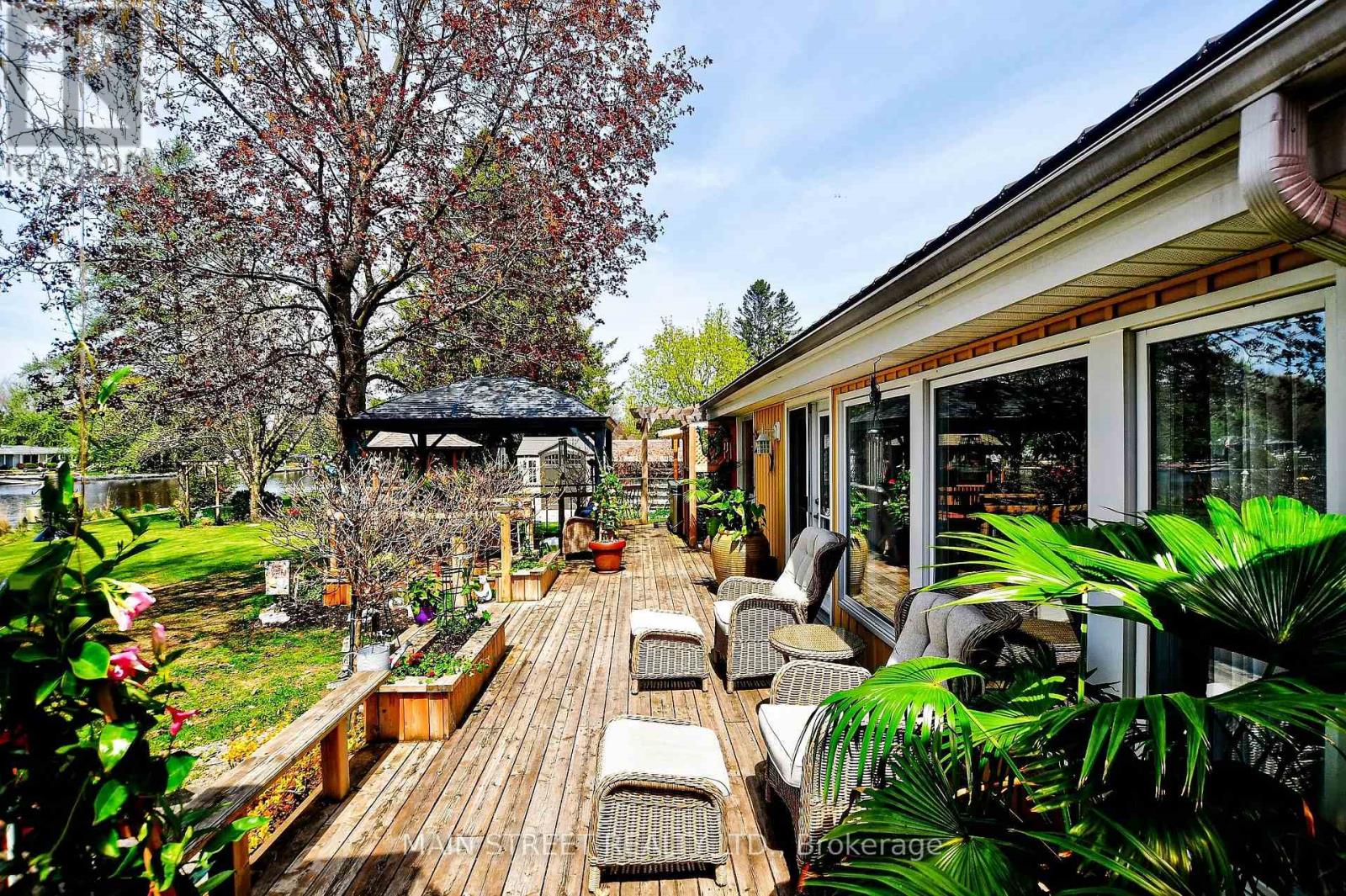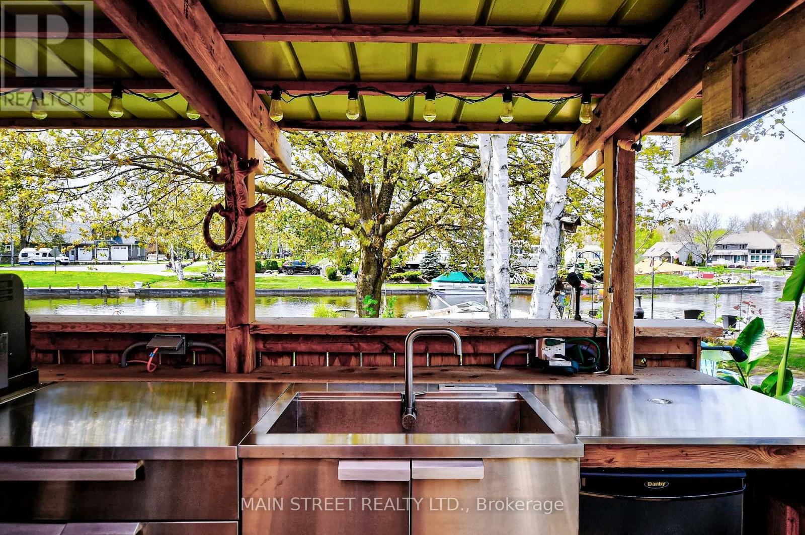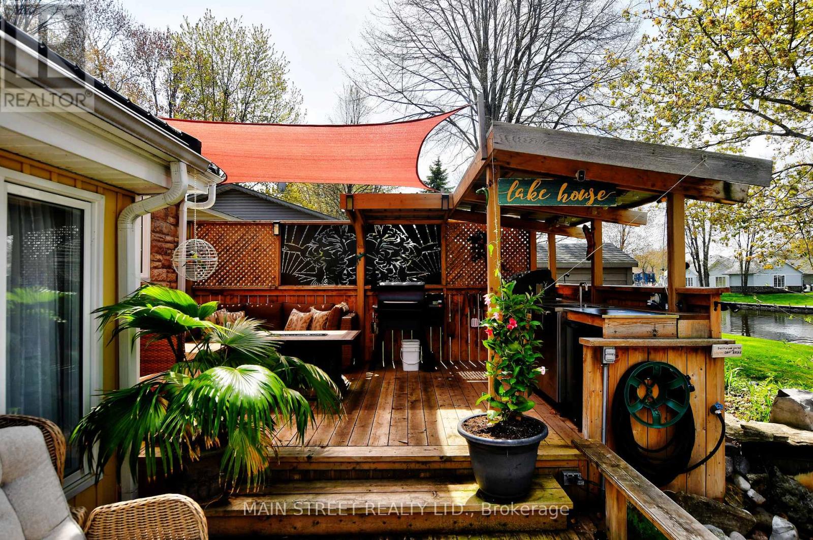 Welcome to lakeside living at its finest in Lagoon City on Lake Simcoe - where luxury, comfort, and lifestyle come together. Designed for everyday living and exceptional entertaining, this beautifully finished waterfront home showcases a custom gourmet kitchen with a large centre island and stone countertops, flowing into bright open-concept living and dining areas with vaulted ceilings, oversized windows, and a cozy wood-burning stove for year-round warmth. Step outside to a truly standout waterfront setting. Multiple decks create seamless indoor-outdoor flow, anchored by a full custom outdoor kitchen, covered hot tub, wet bar, tranquil water feature, and two screened gazebos - offering the perfect balance of privacy and entertaining space. Surrounded by lush gardens, mature trees, and a peaceful pond, this waterfront setting feels like a true oasis, alive with birds, butterflies, and natural beauty throughout the seasons. Whether hosting summer gatherings or enjoying quiet evenings by the water, this home delivers a vibrant yet relaxing lifestyle. With 140 feet of direct canal frontage, a private dock, and a deep-water boat slip accommodating larger vessels, enjoy direct access to Lake Simcoe and the Trent-Severn Waterway - ideal for boating, cruising, and exploring. Located in the waterfront community of Lagoon City, residents enjoy private beaches, nearby public beaches, marinas, and four-season recreation, including boating, swimming, fishing, and snowmobiling. Extensively upgraded throughout, the home features a high-grade steel roof, updated windows and doors, modern flooring, mechanical systems, and professional landscaping - offering true turnkey living with nothing overlooked. Just minutes to Orillia, including Orillia Soldiers' Memorial Hospital, shopping, dining, and waterfront parks, and approximately one hour to Newmarket and the GTA.A rare opportunity to own a fully updated waterfront home in one of Ontario's most sought-after boating communities. (id:4555)